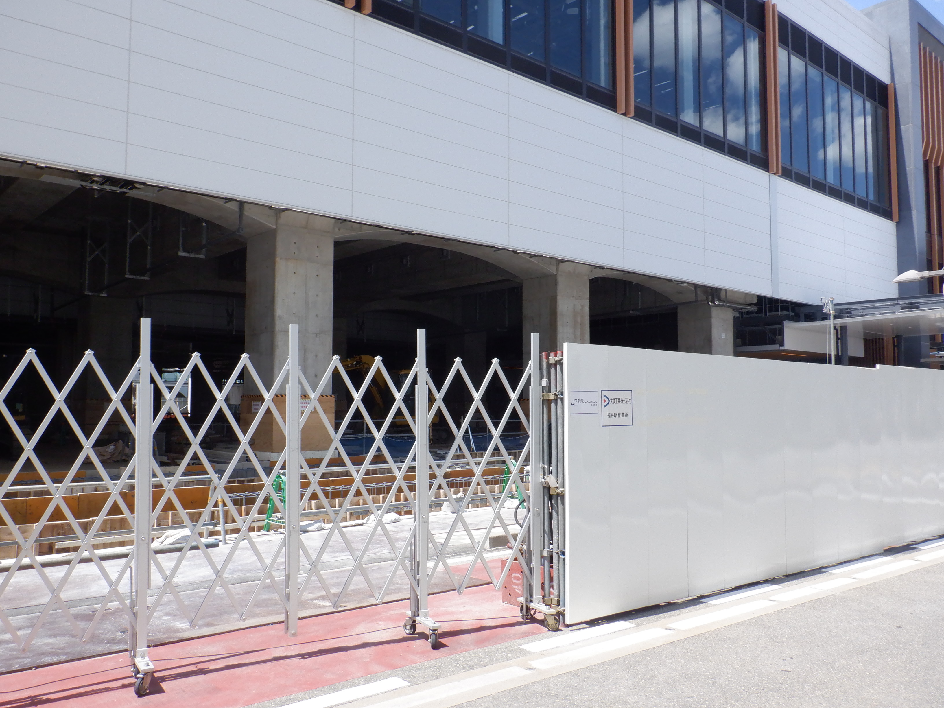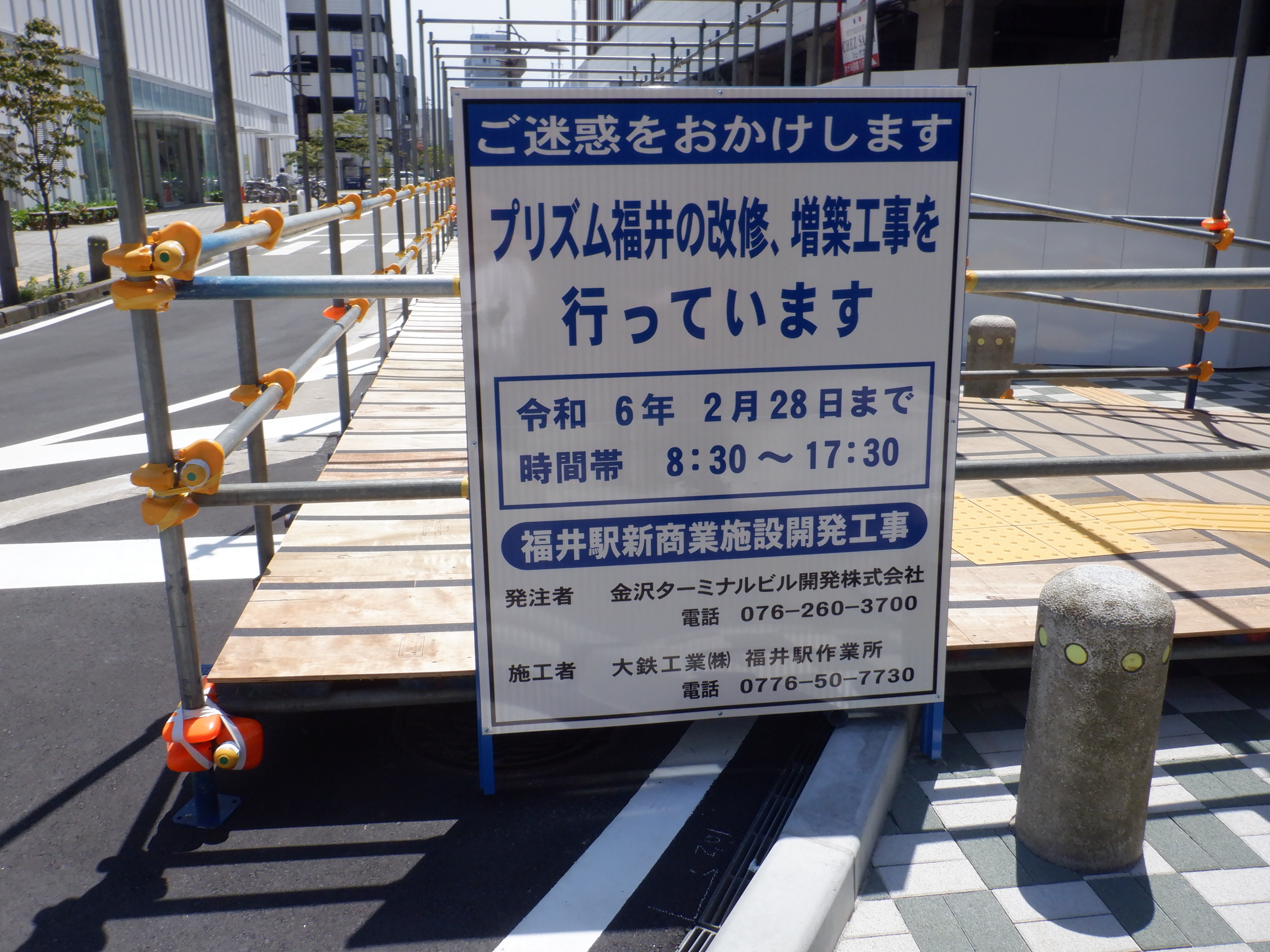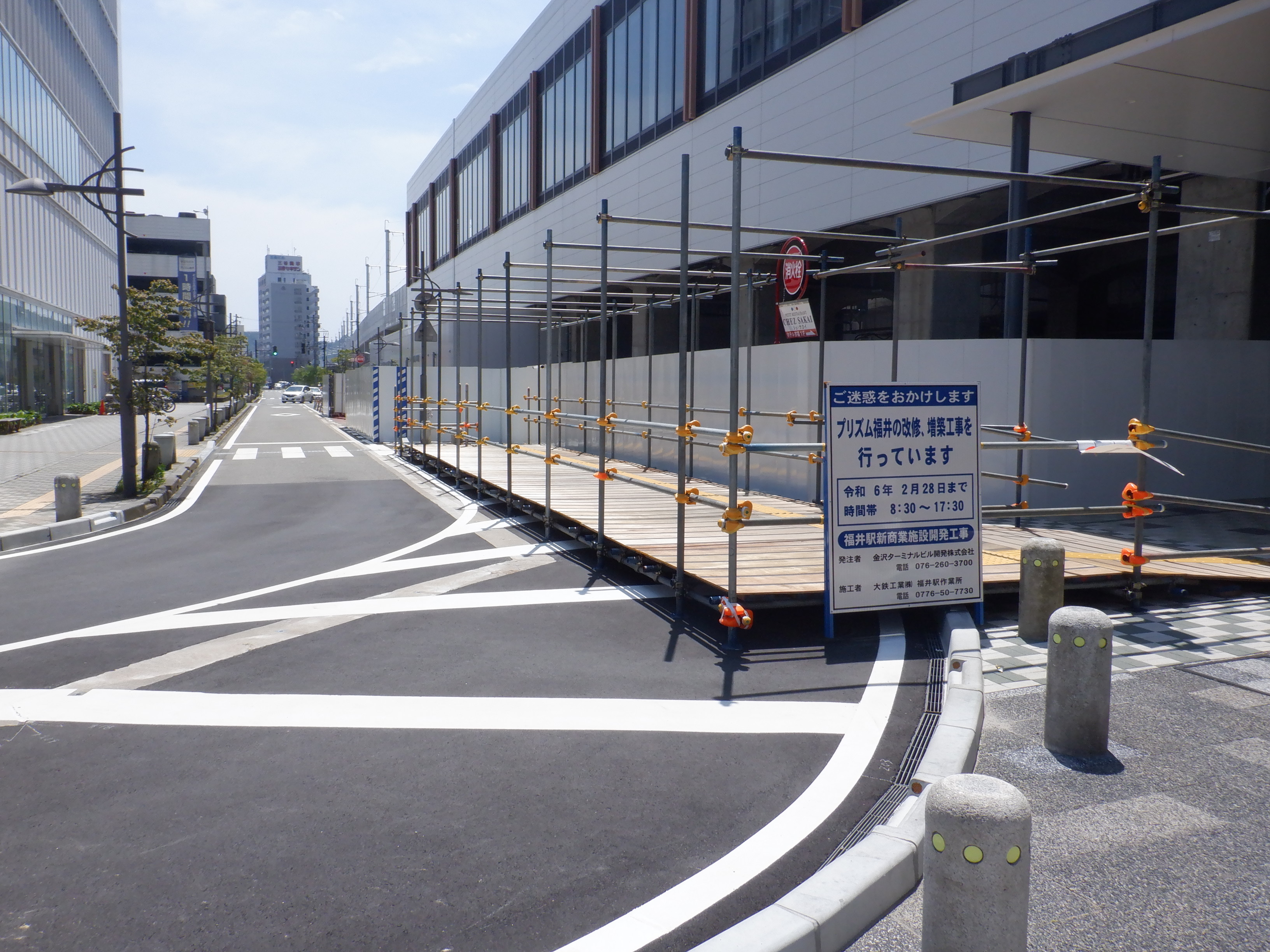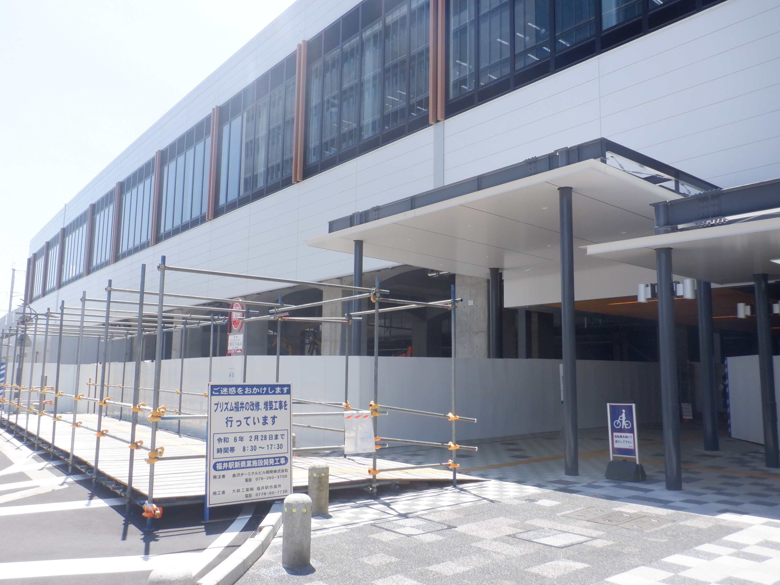 プリズム福井の取壊が始まっていました。アオッサの前には仮設の通路ができていました。えちぜん鉄道福井駅の前は一旦舗装されました。