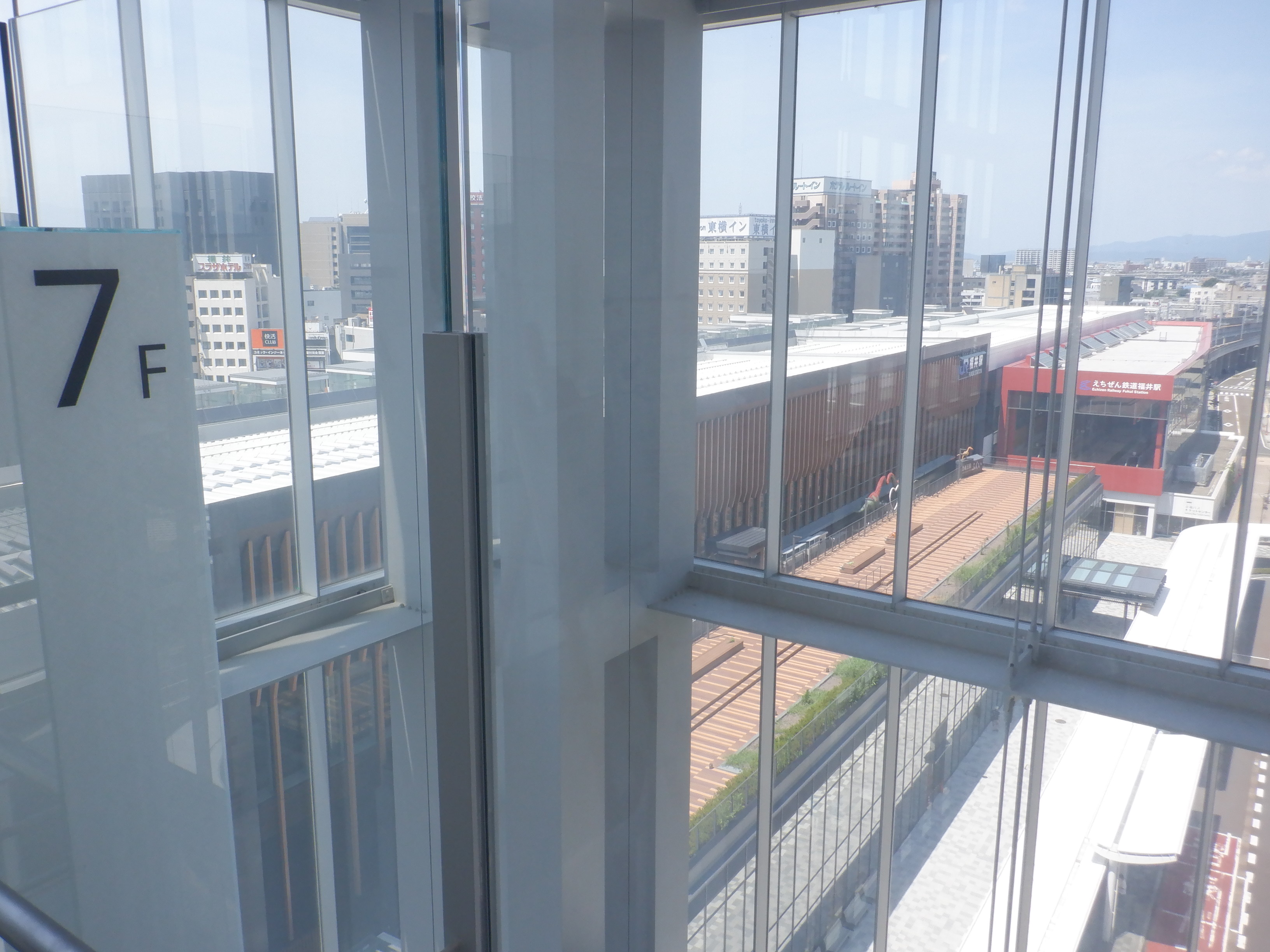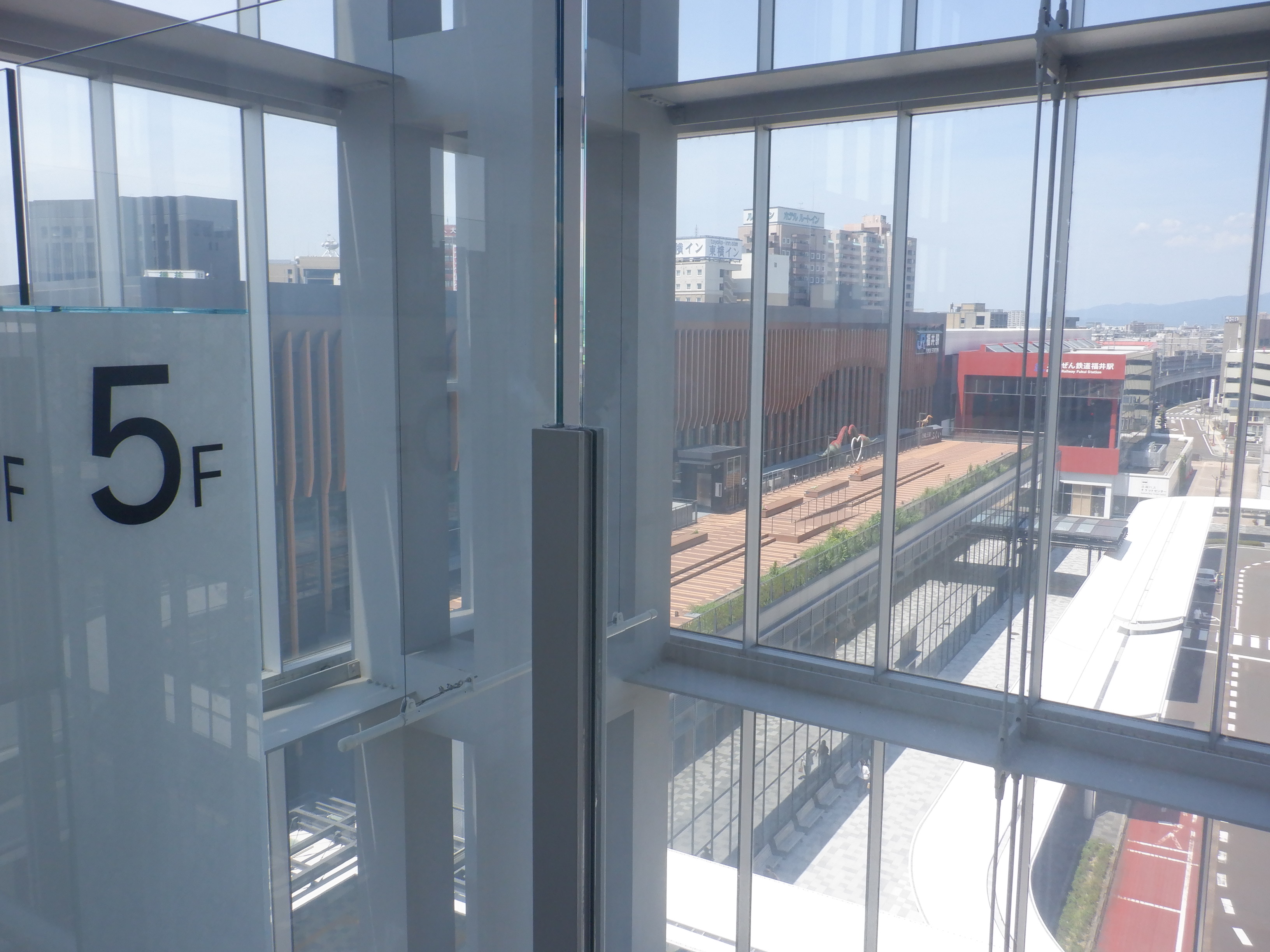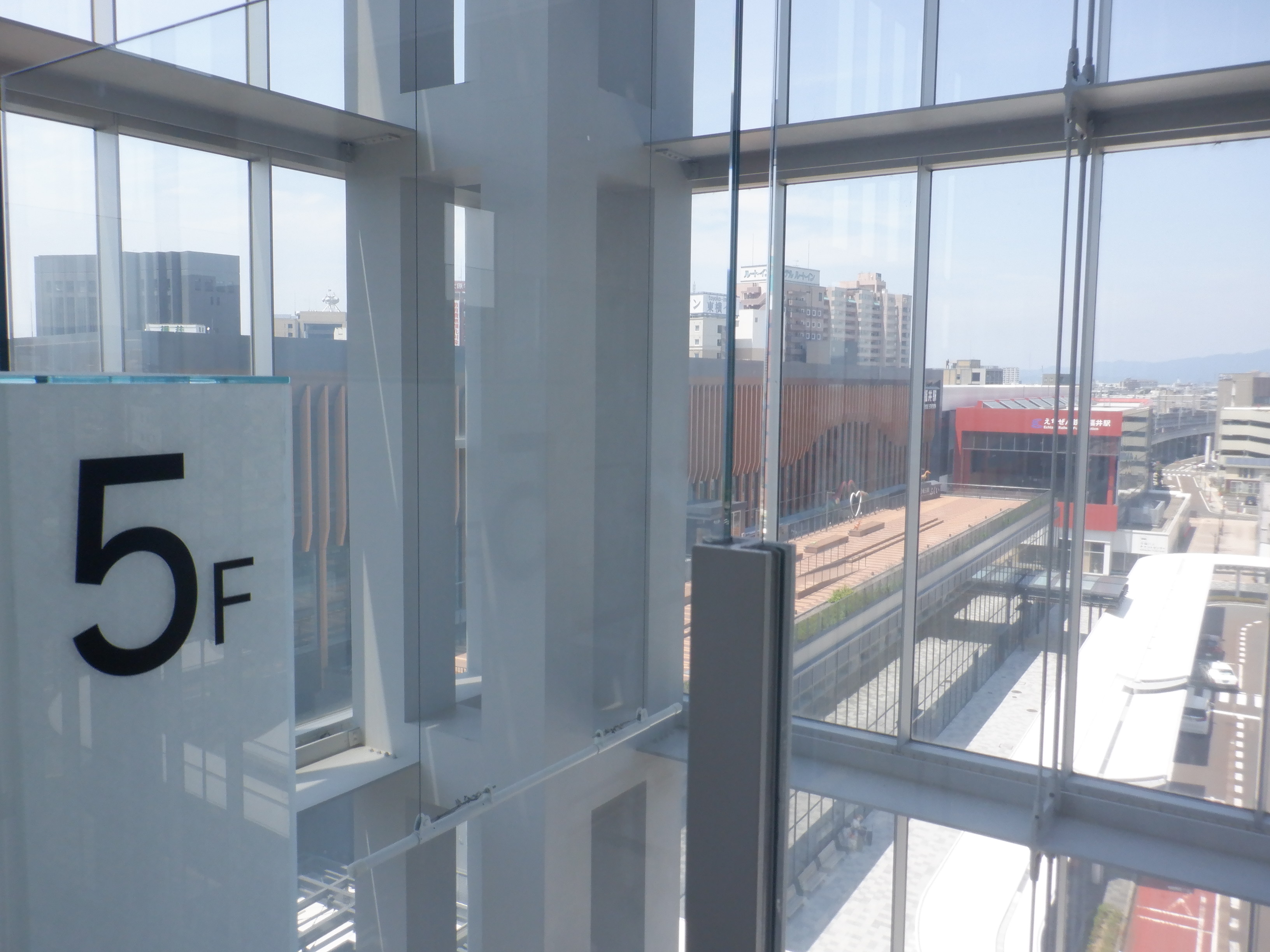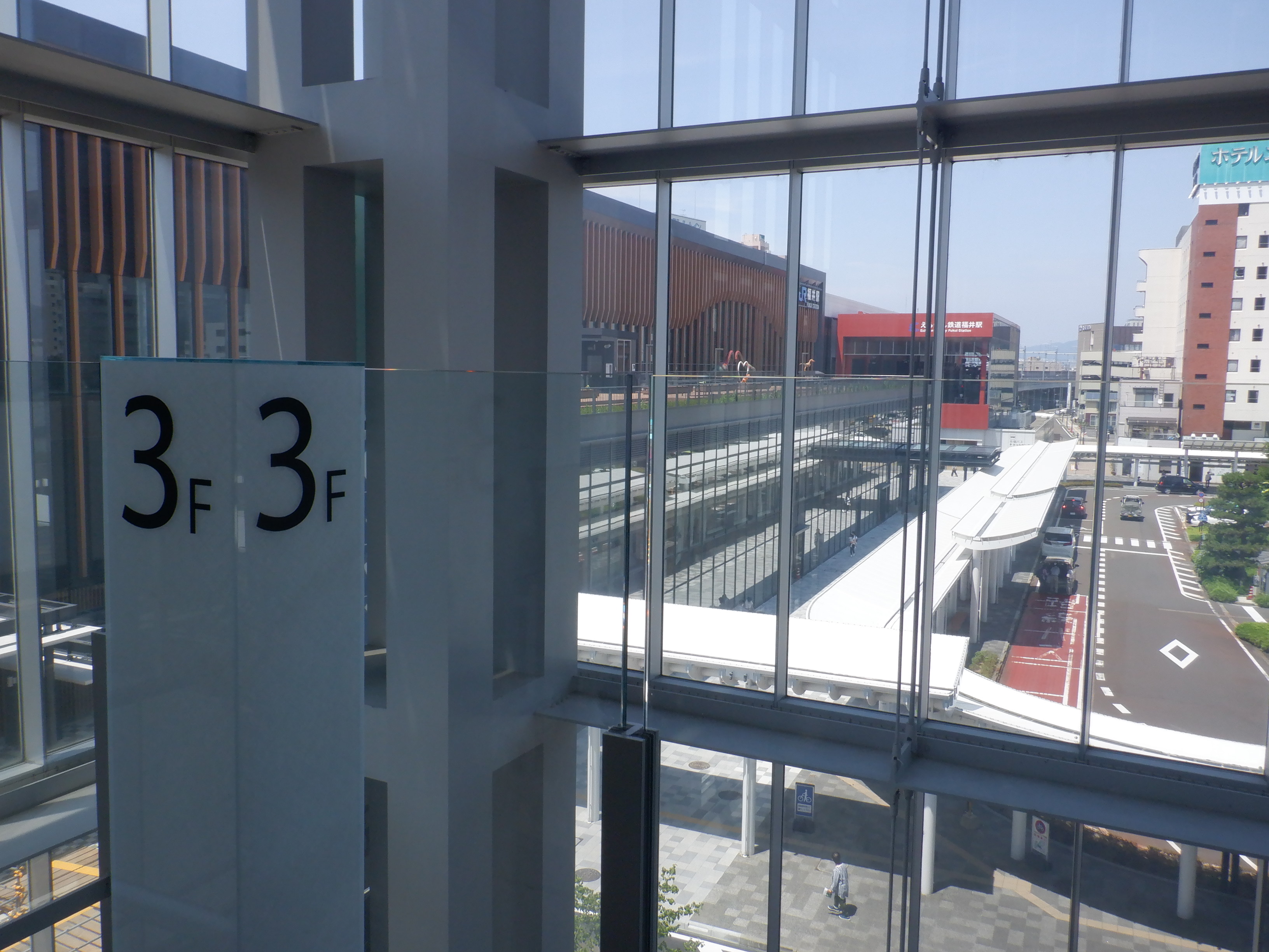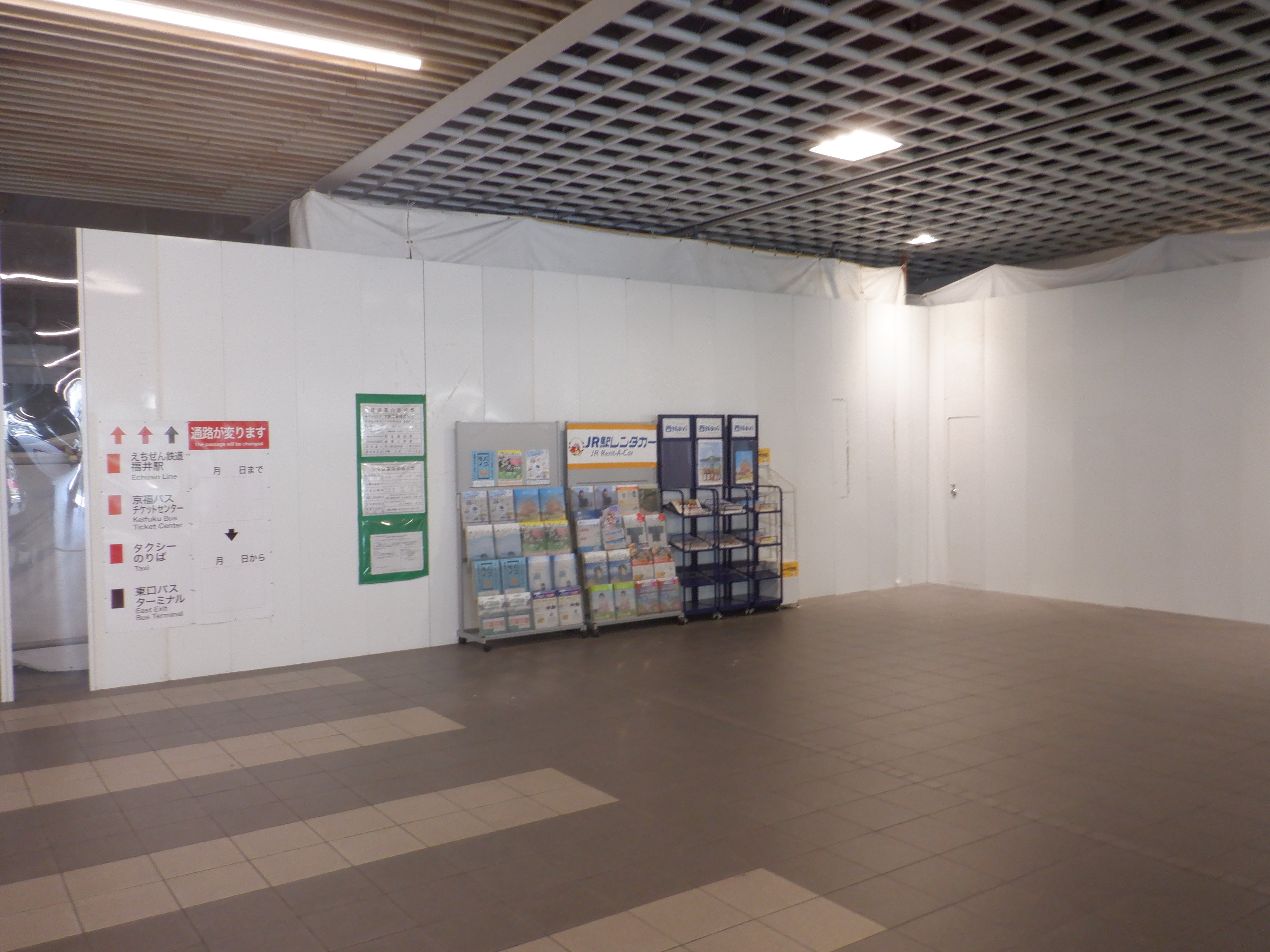 アオッサからハピリンへの通路。プリズム福井を一旦取り壊しますが、まだプリズム福井の名残があります。