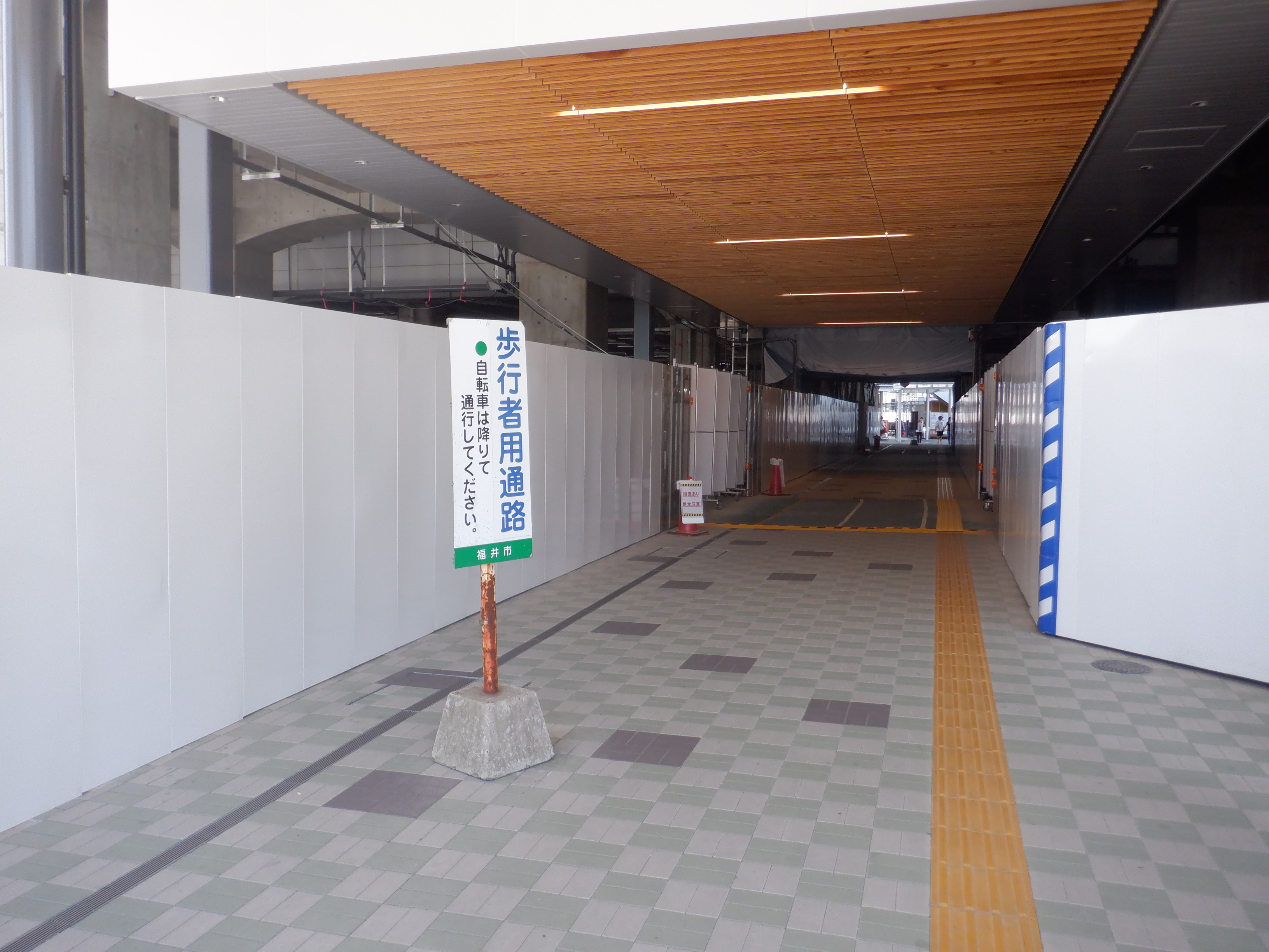 拡張施設とえちぜん鉄道福井駅の間の通路。新幹線易者に接した部分は舗装されました。
