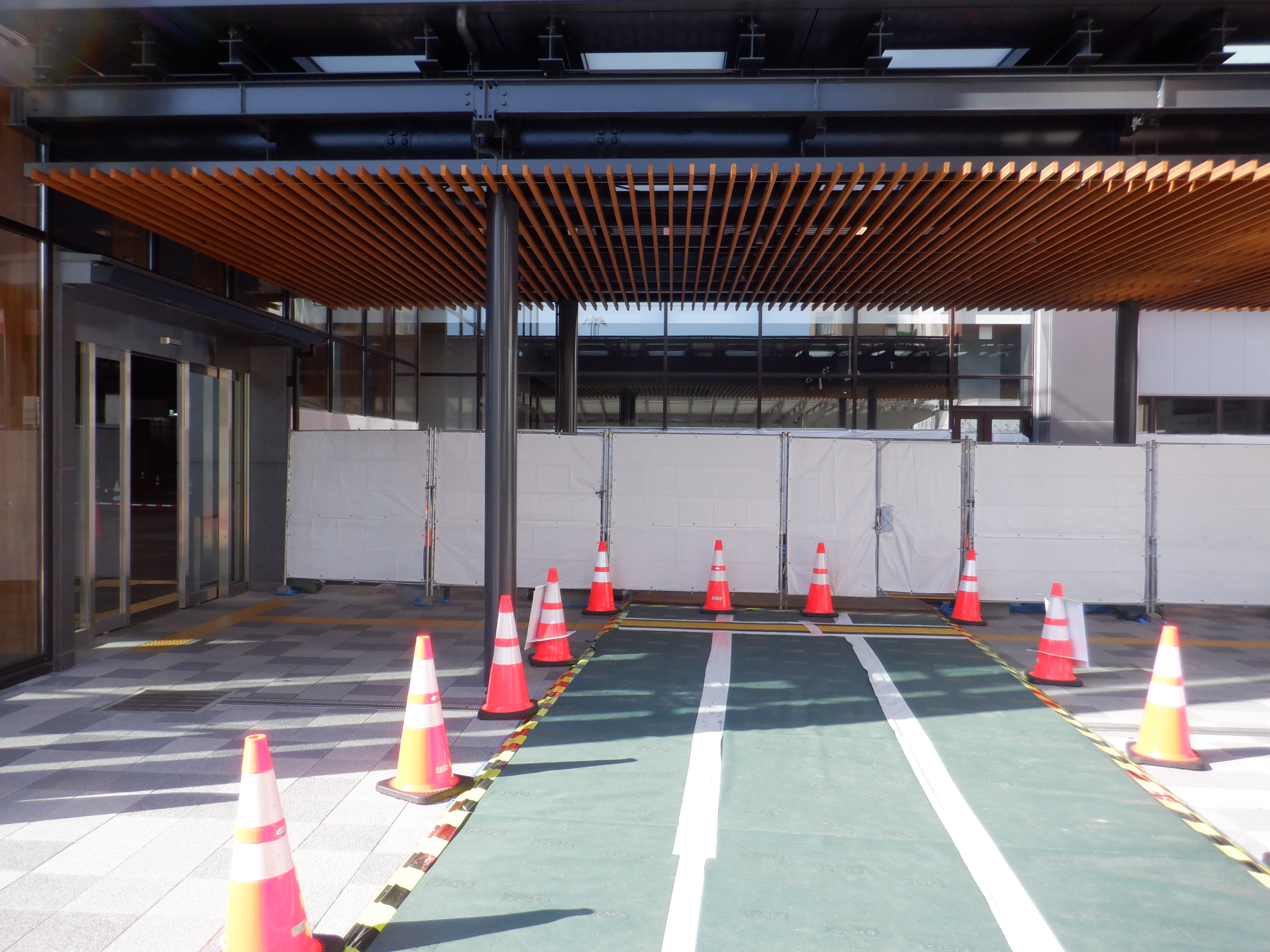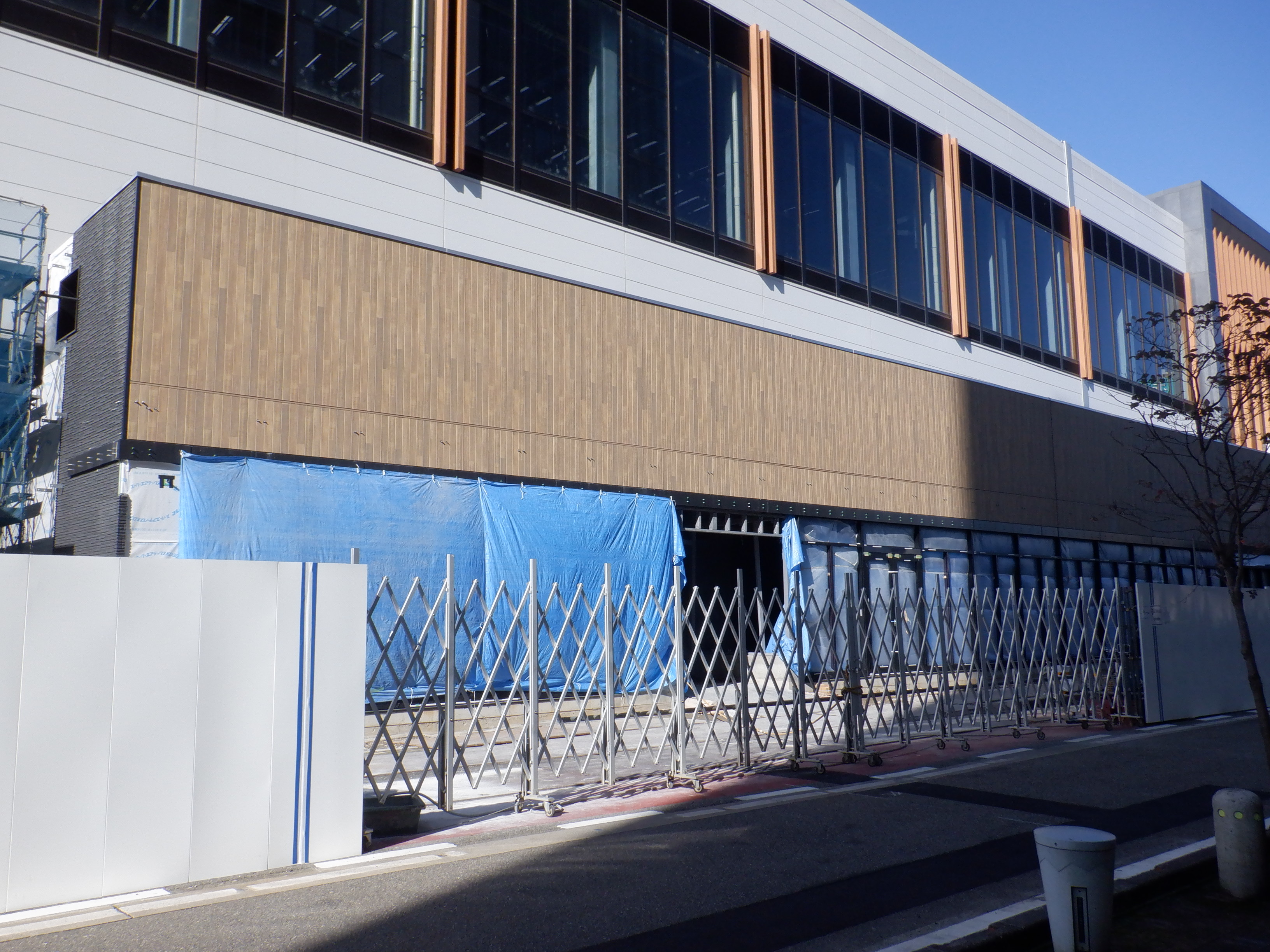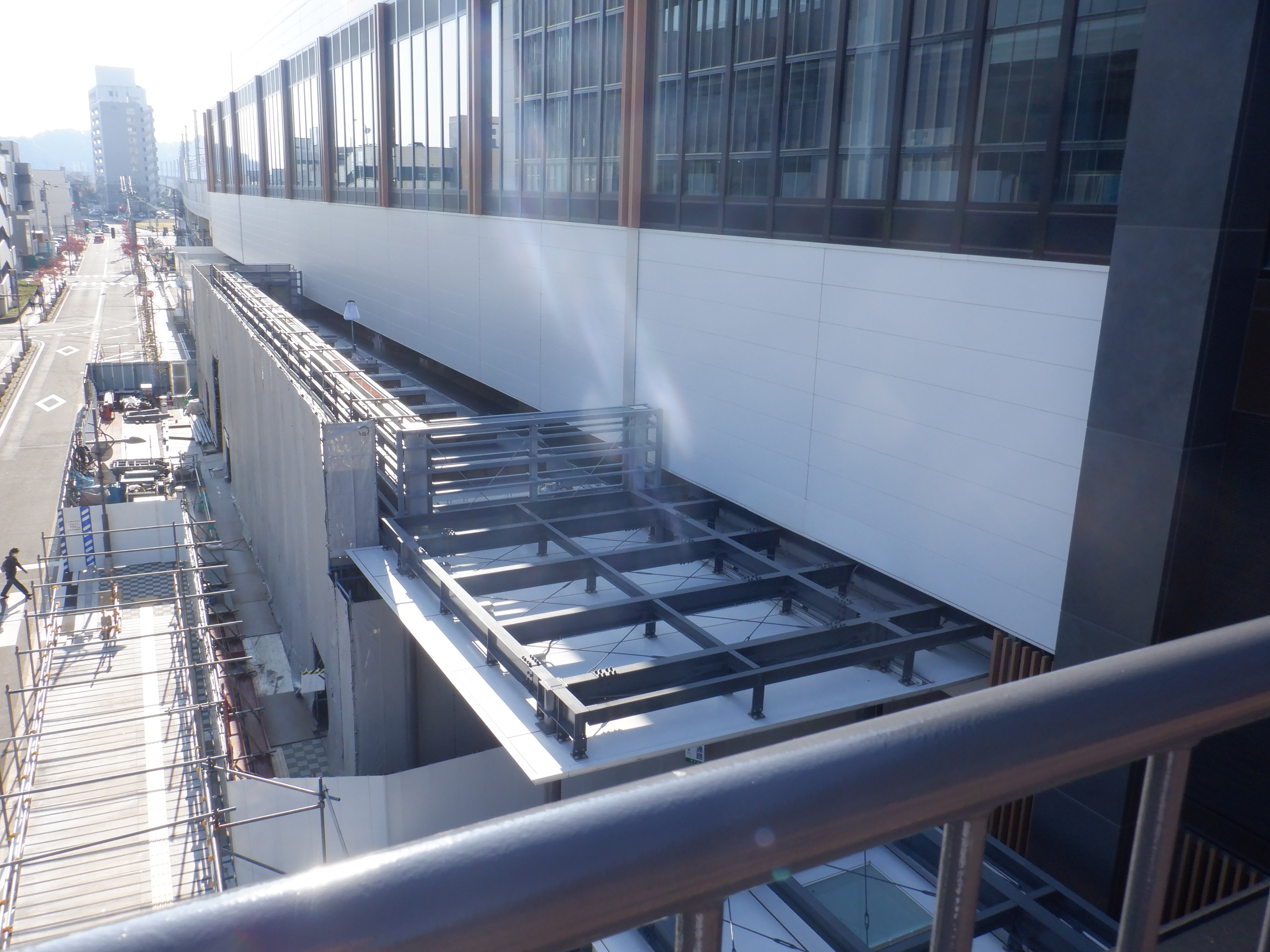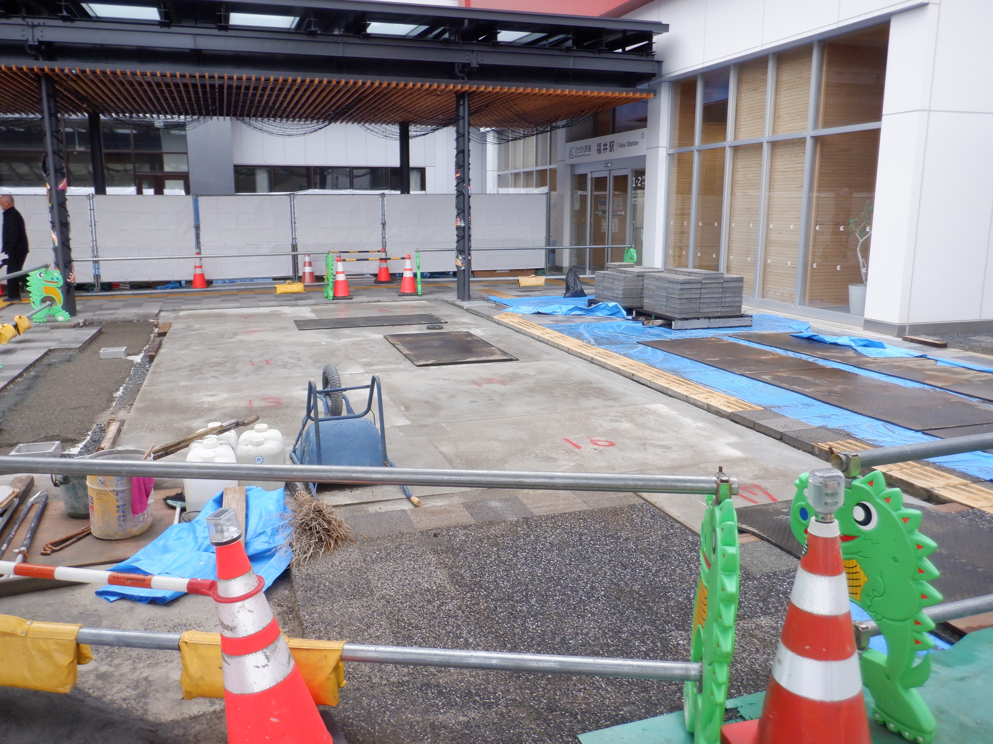 アオッサの前付近から拡張施設の様子。融雪パネルの建設のようです。