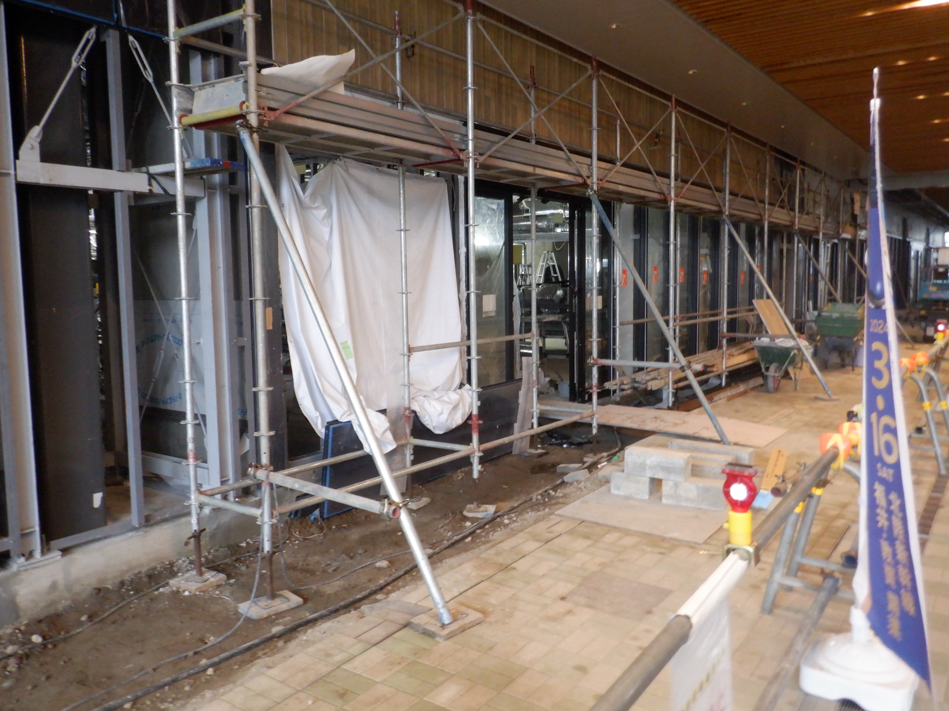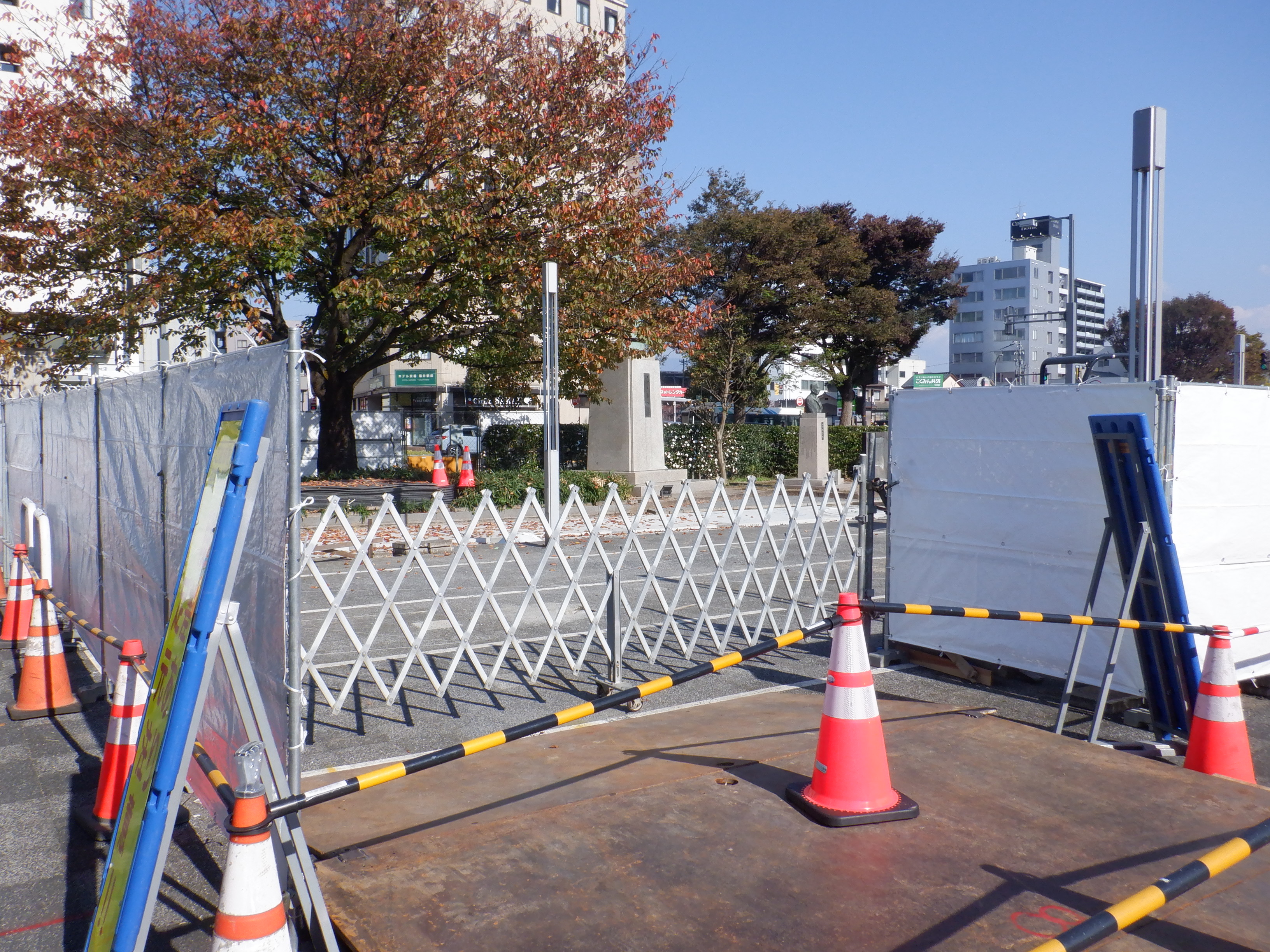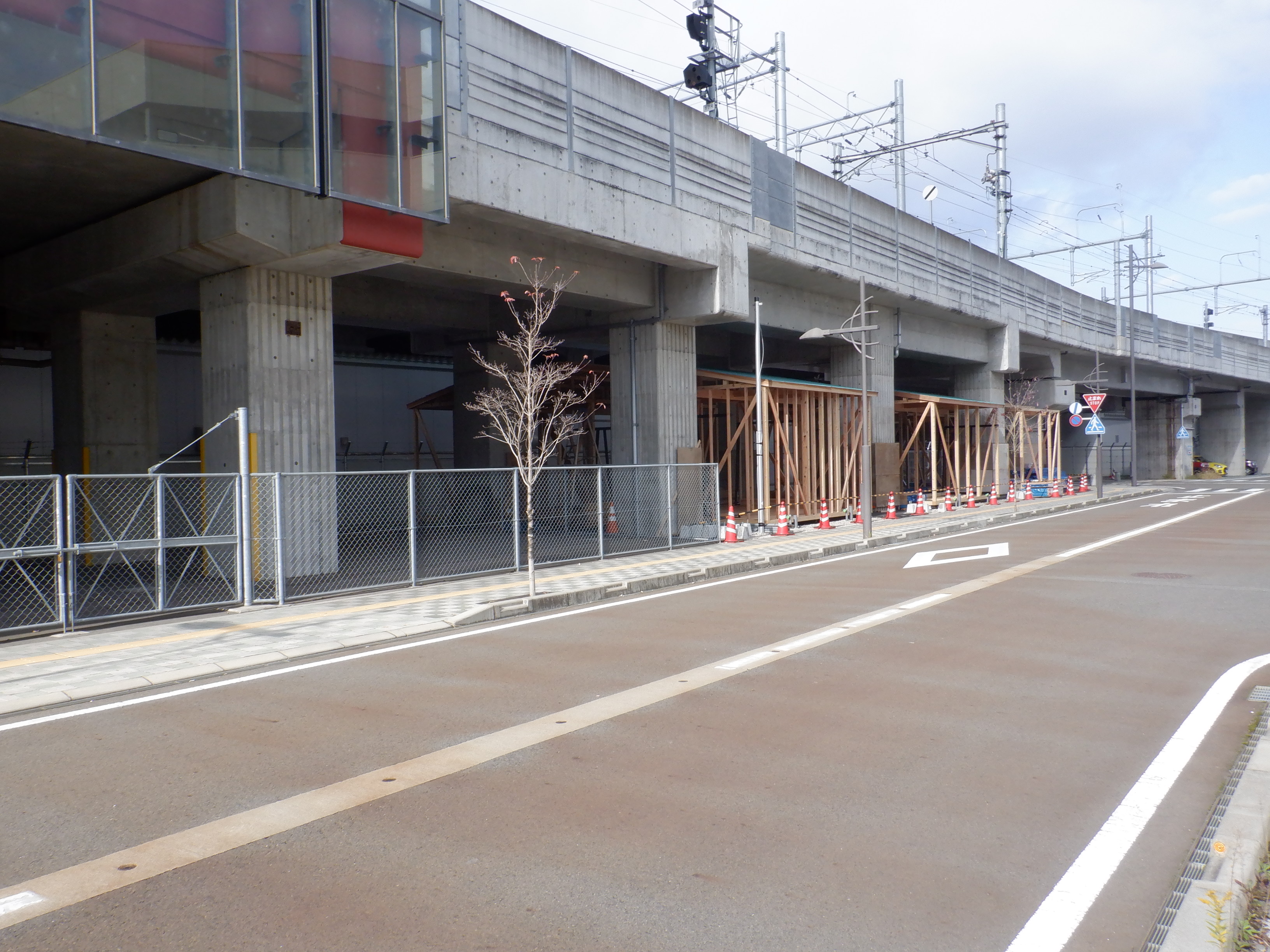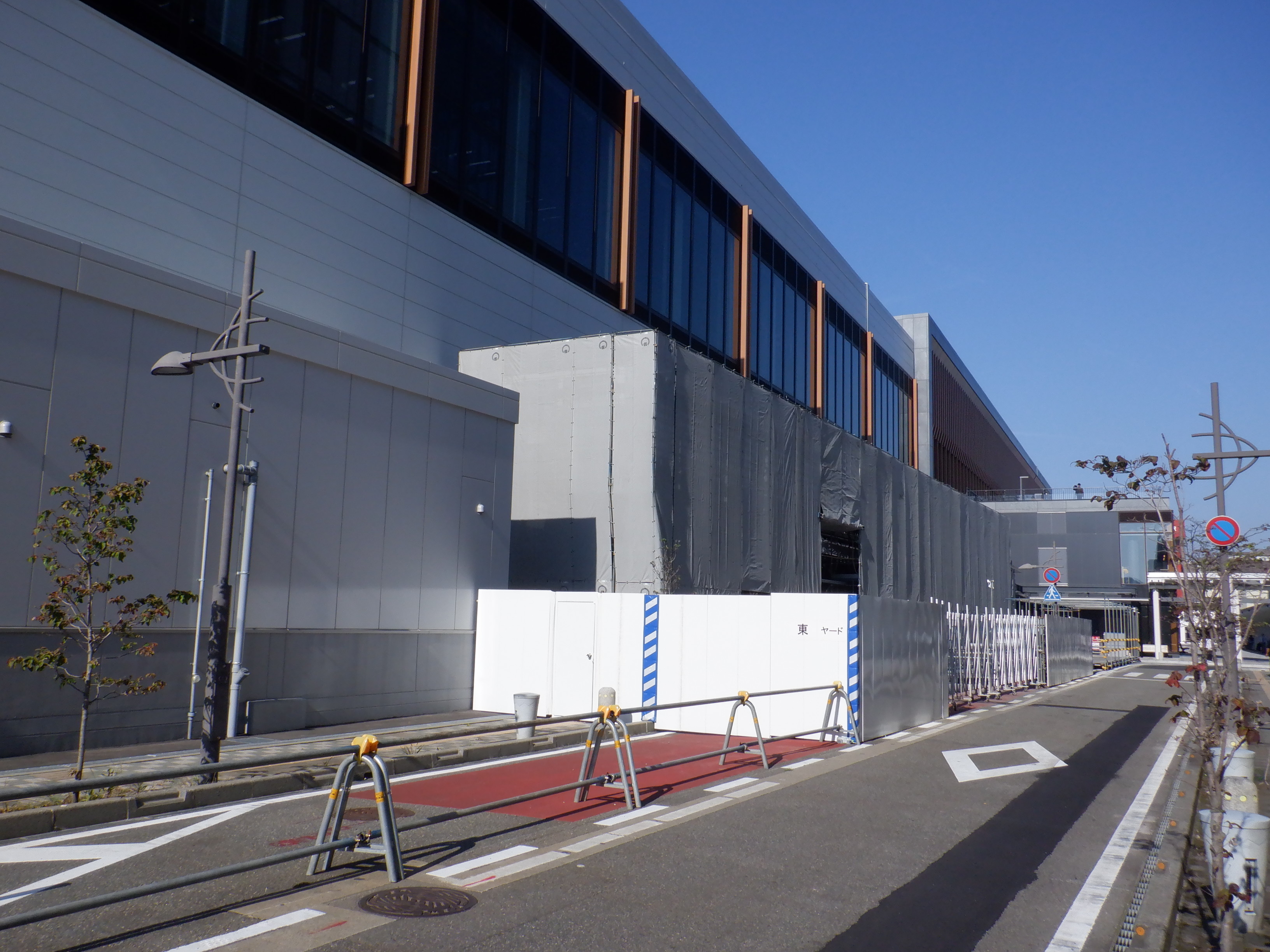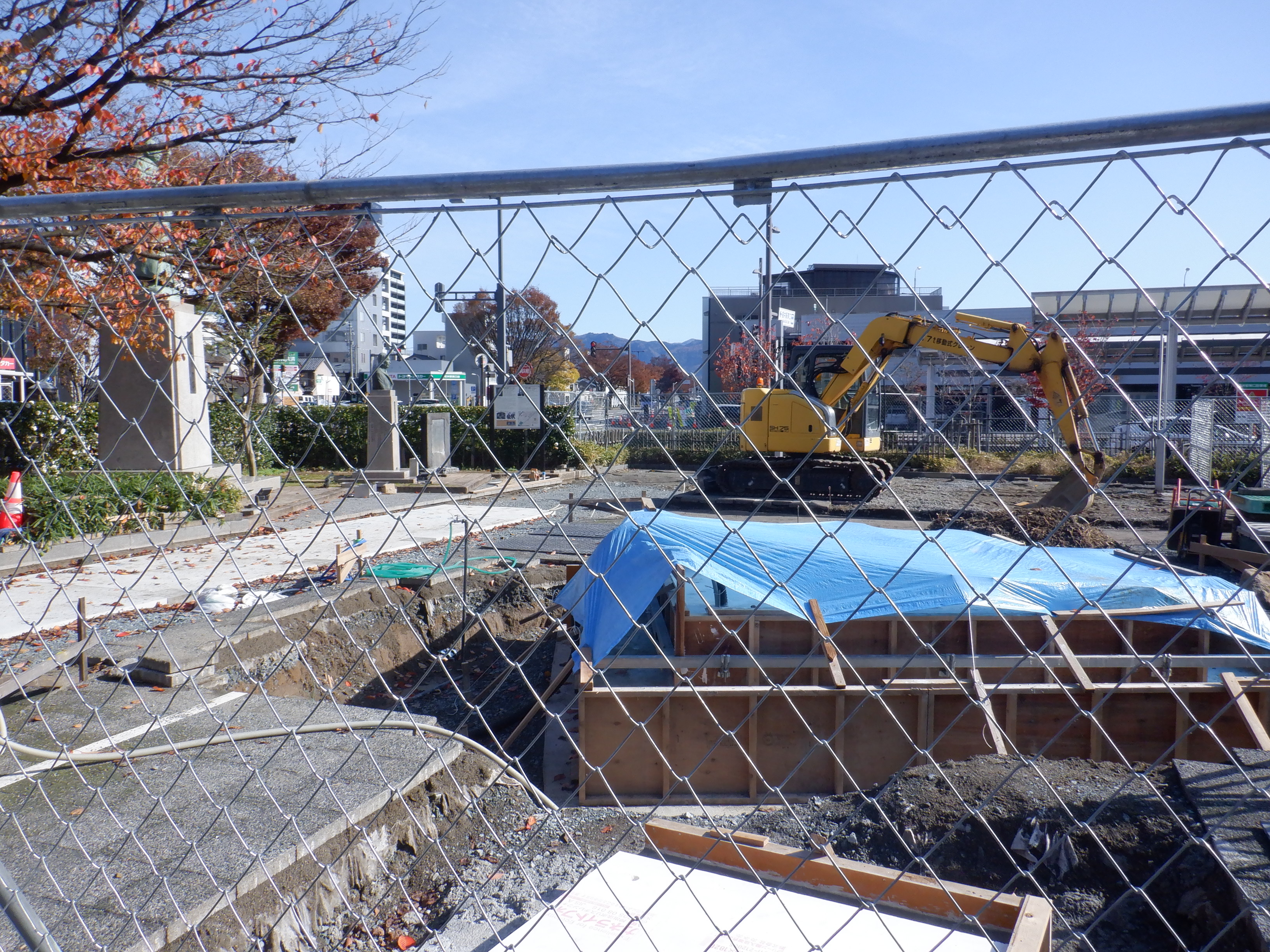 アオッサの前付近から拡張施設の様子。融雪パネルの建設のようです。