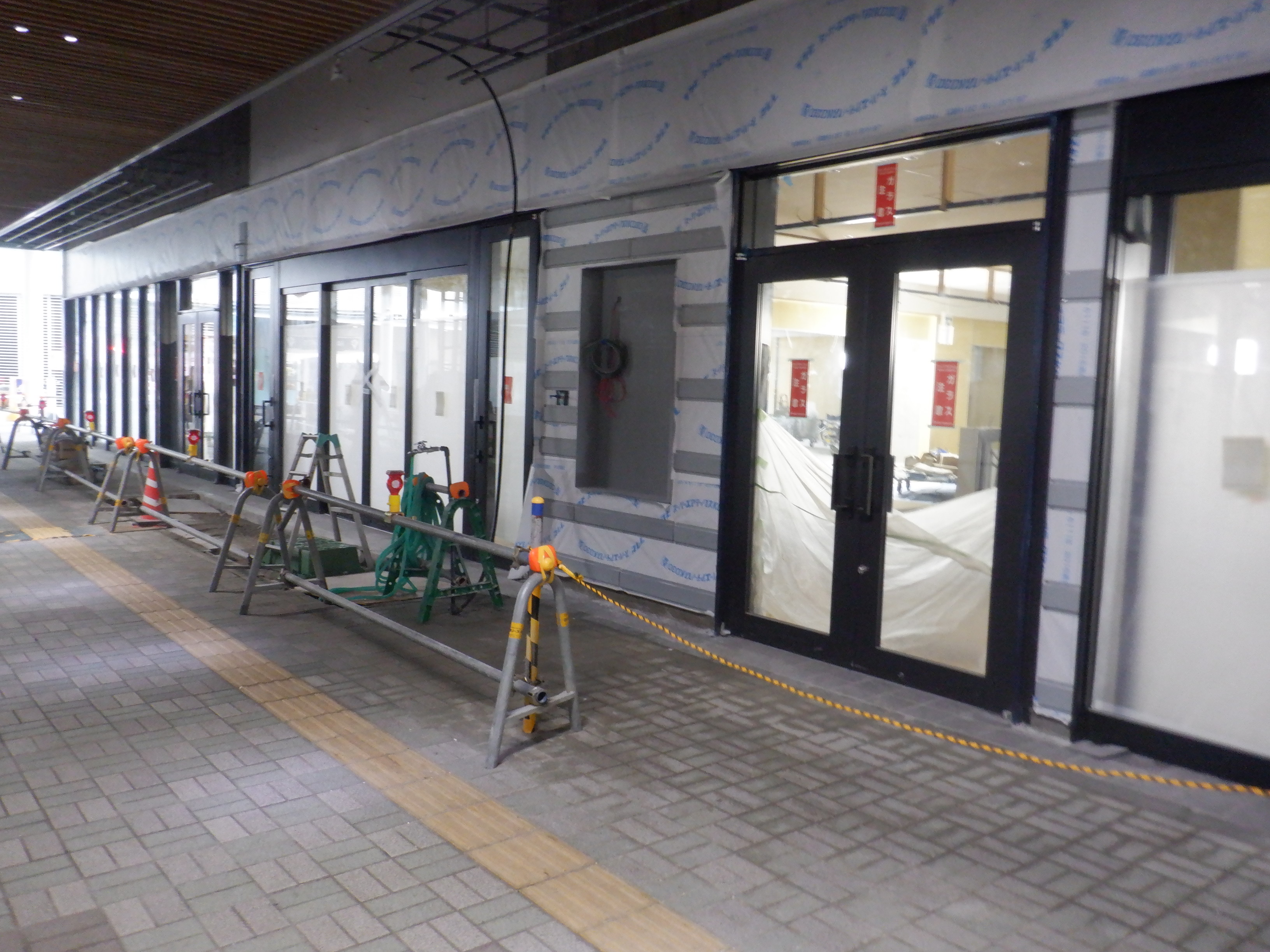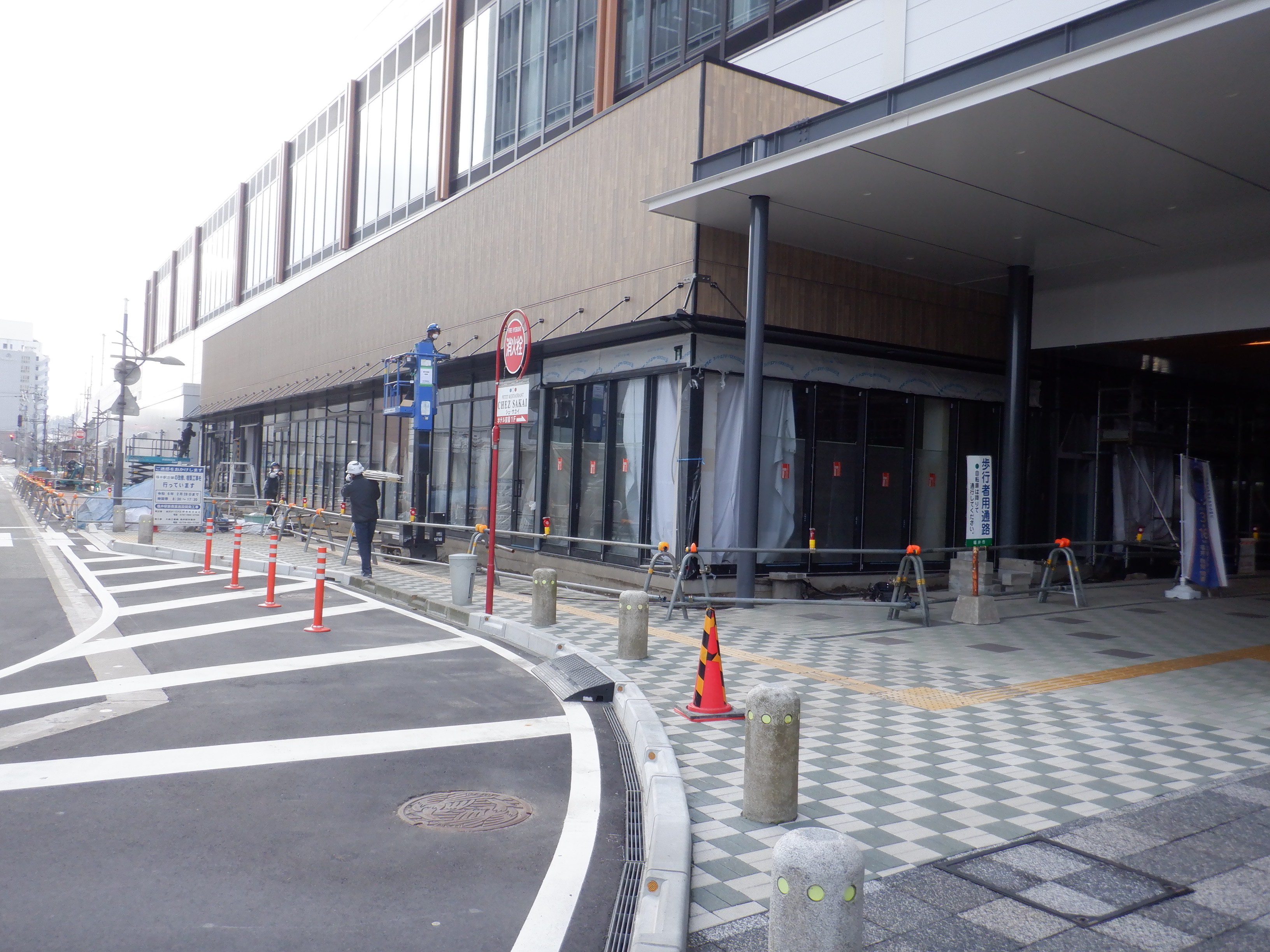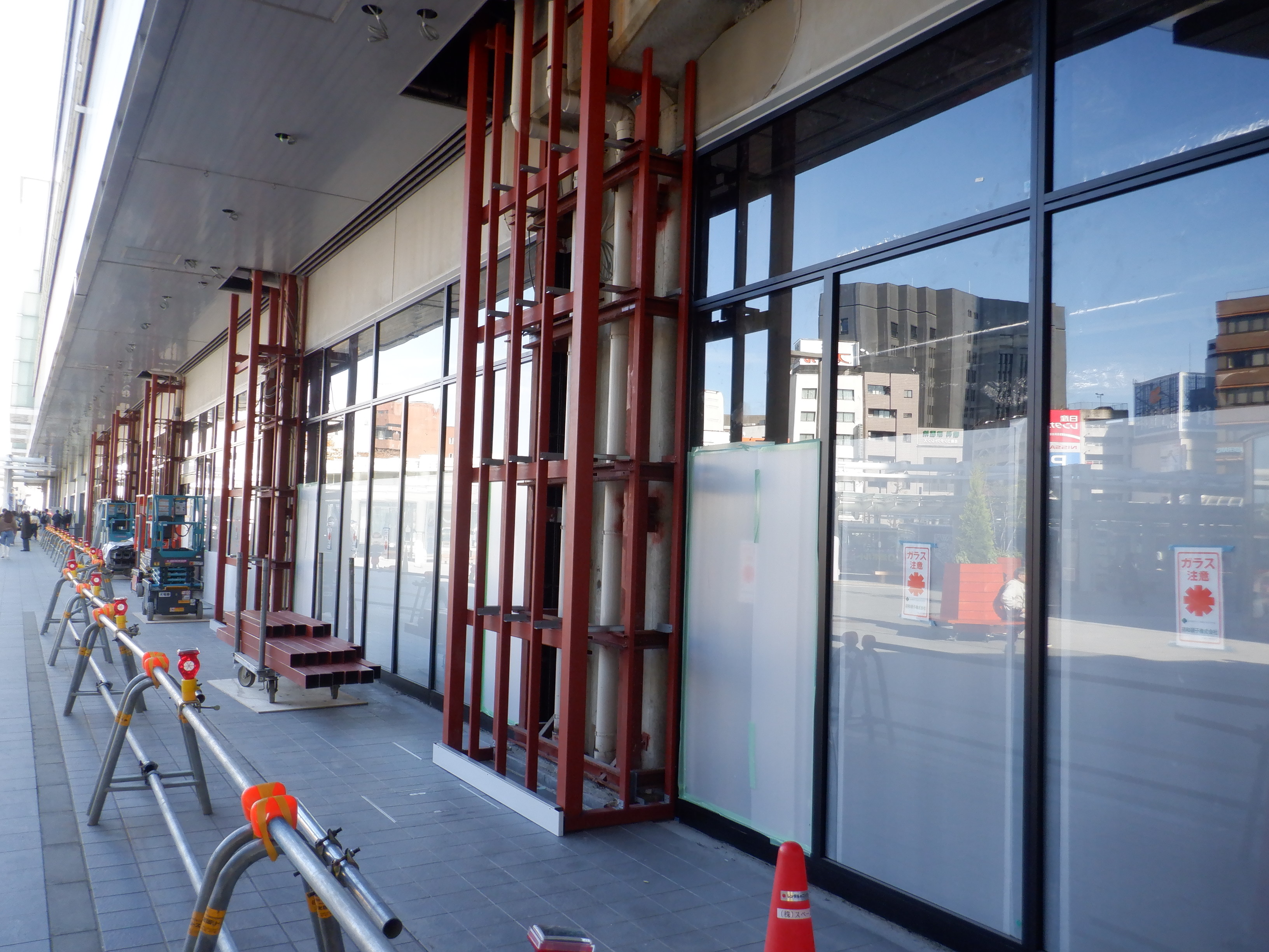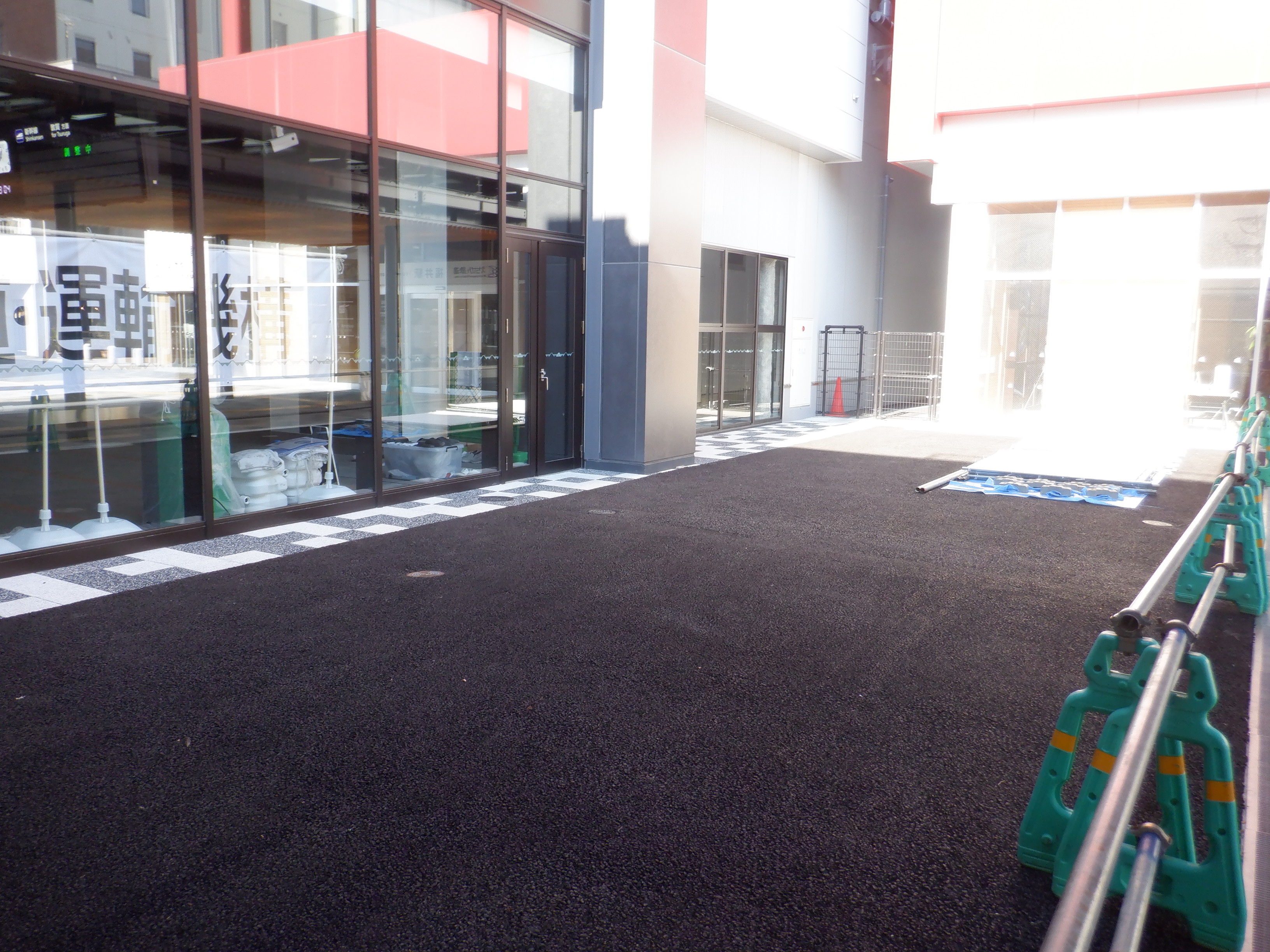 アオッサの前付近から拡張施設の様子。融雪パネルの建設のようです。