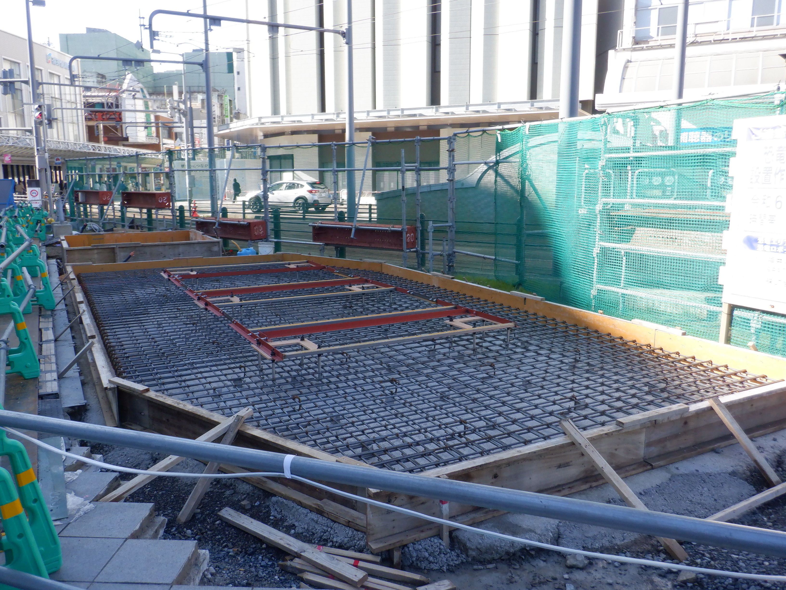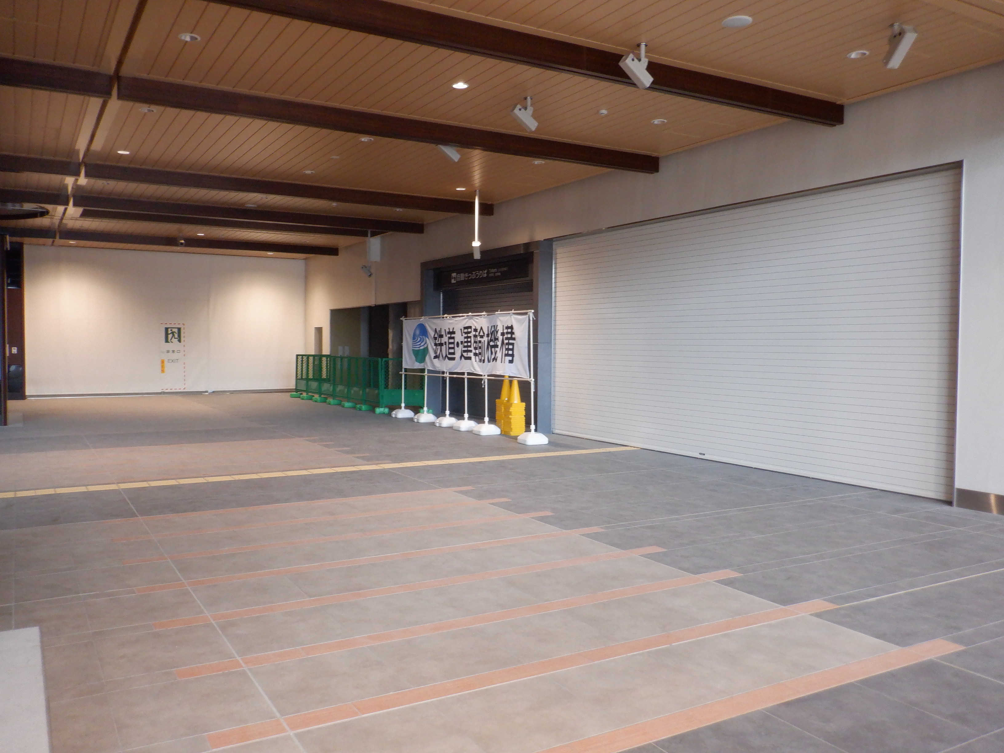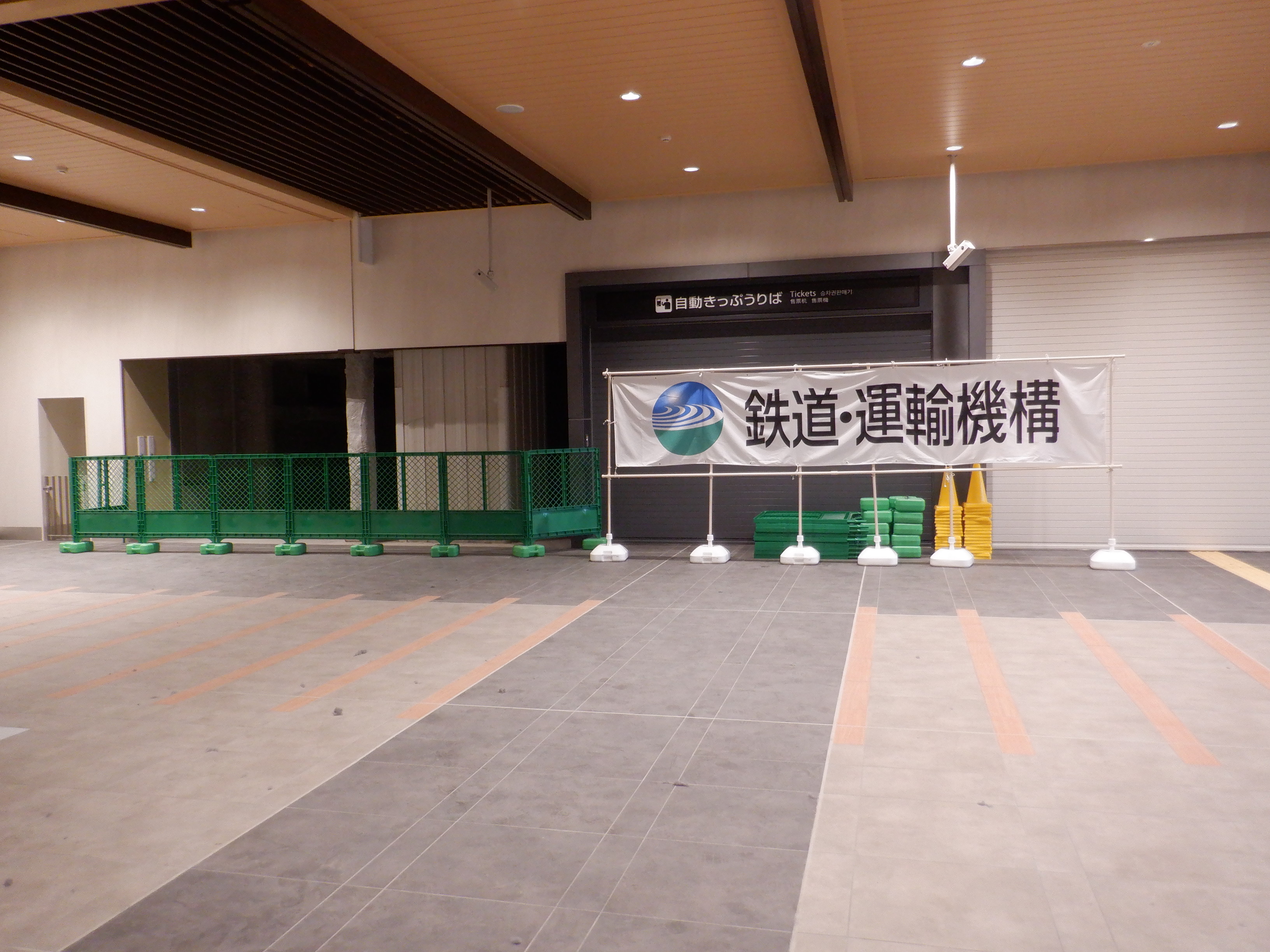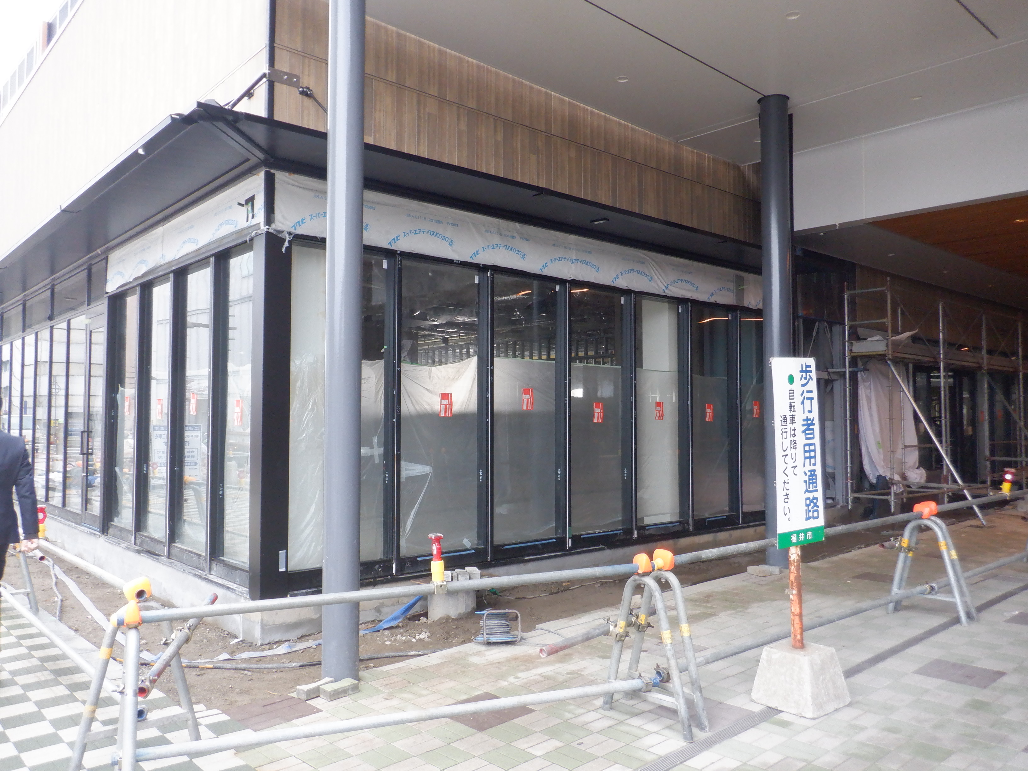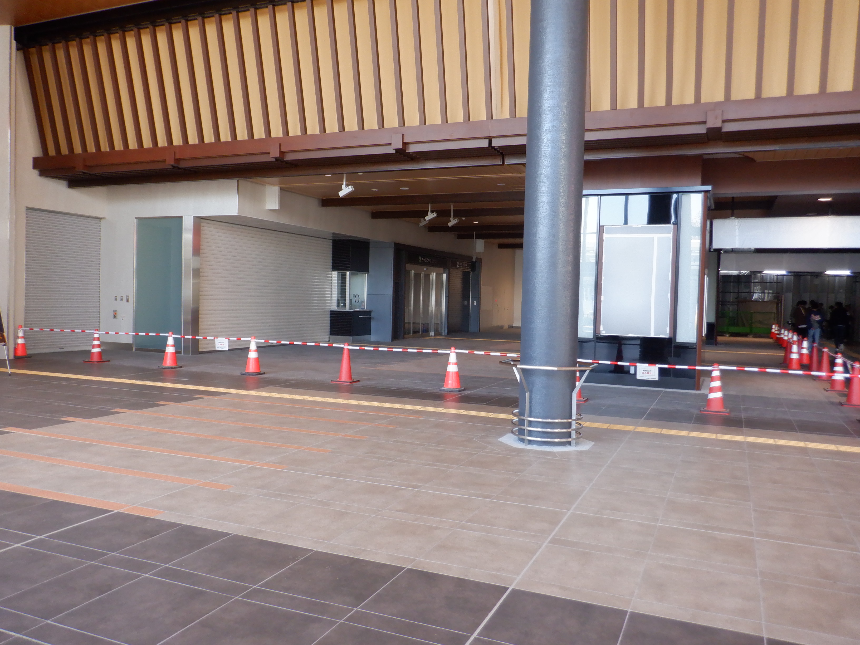 アオッサの前付近から拡張施設の様子。融雪パネルの建設のようです。