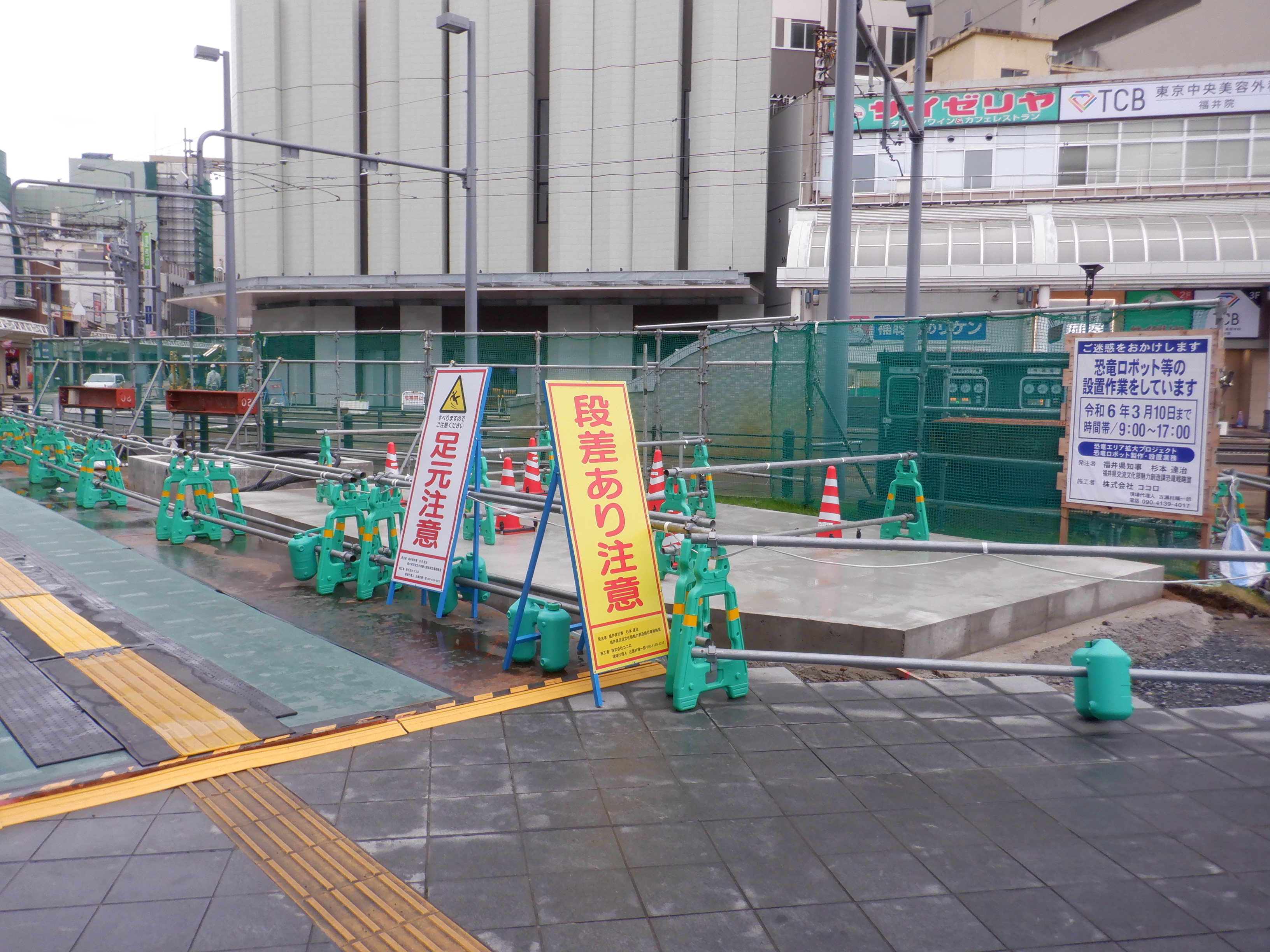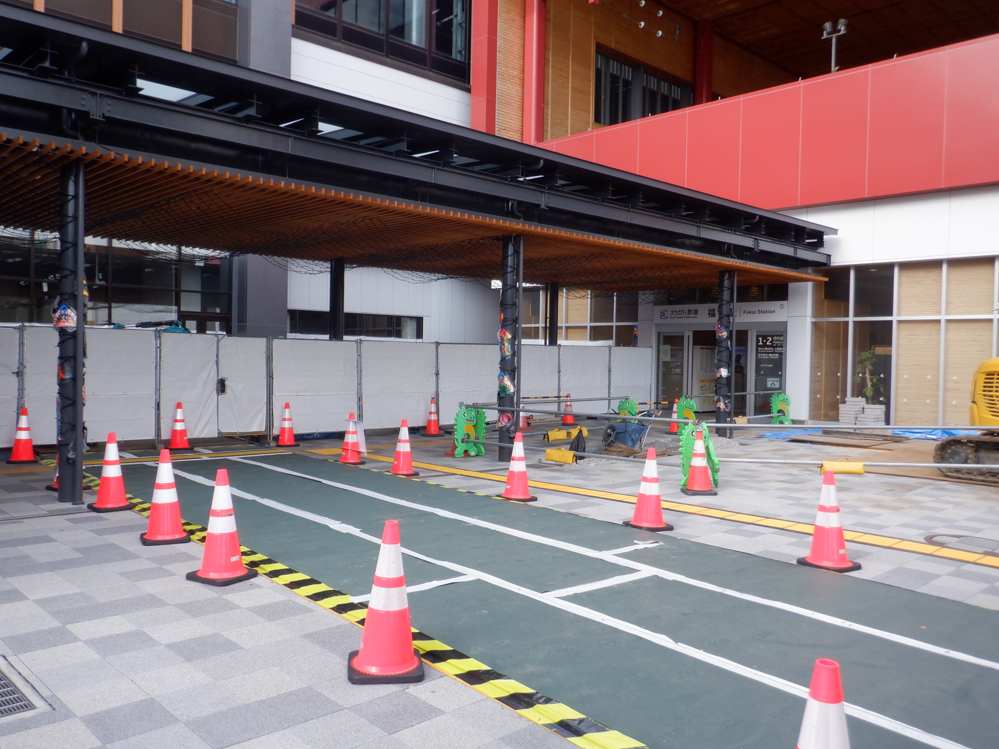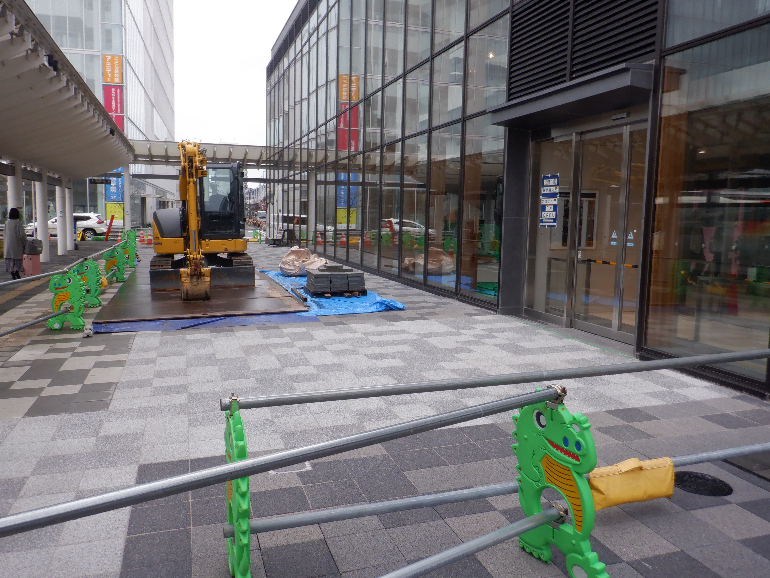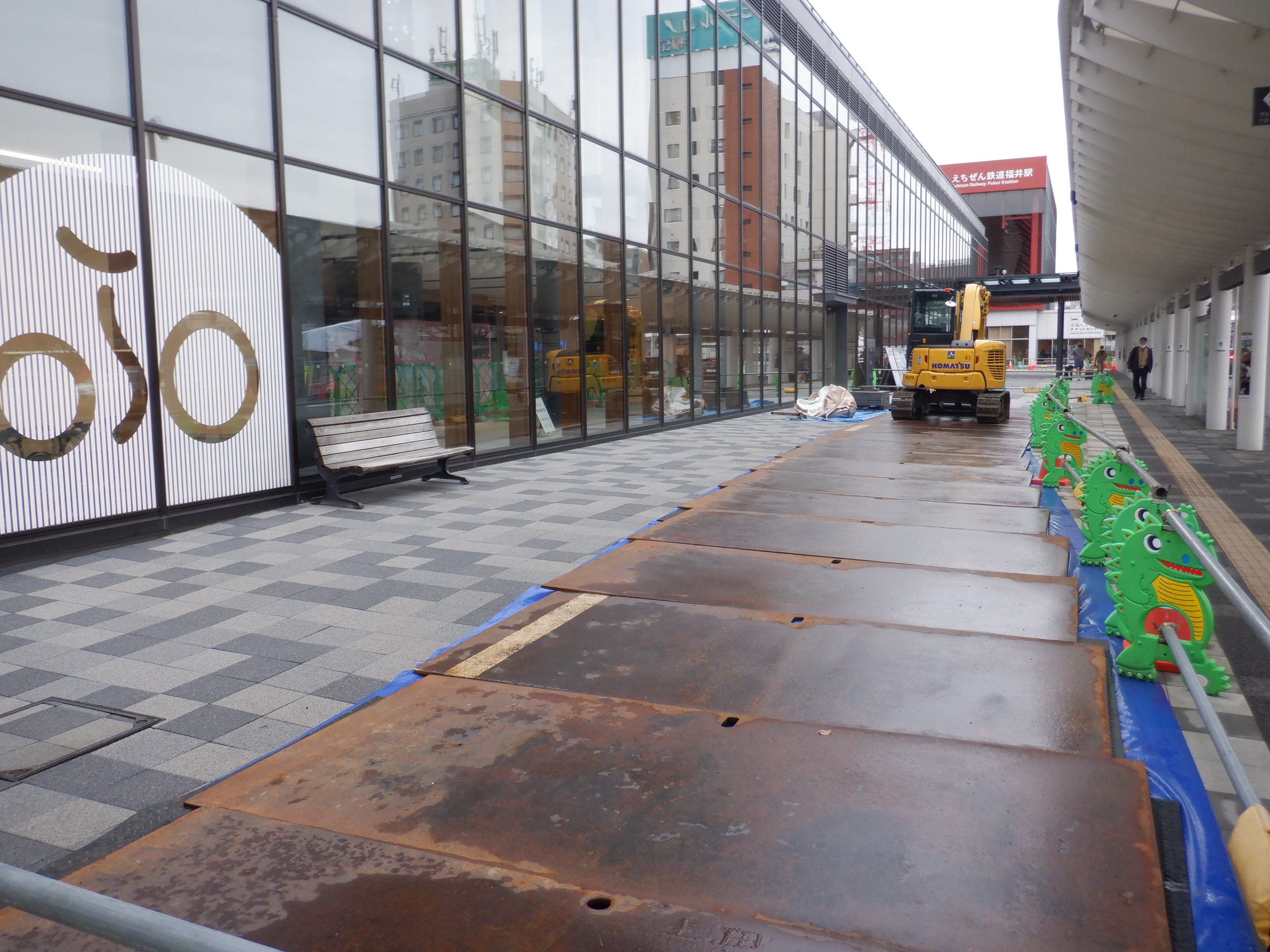 拡張施設とえちぜん鉄道福井駅との間の舗装をしていたところは新たな工事が始まりました。