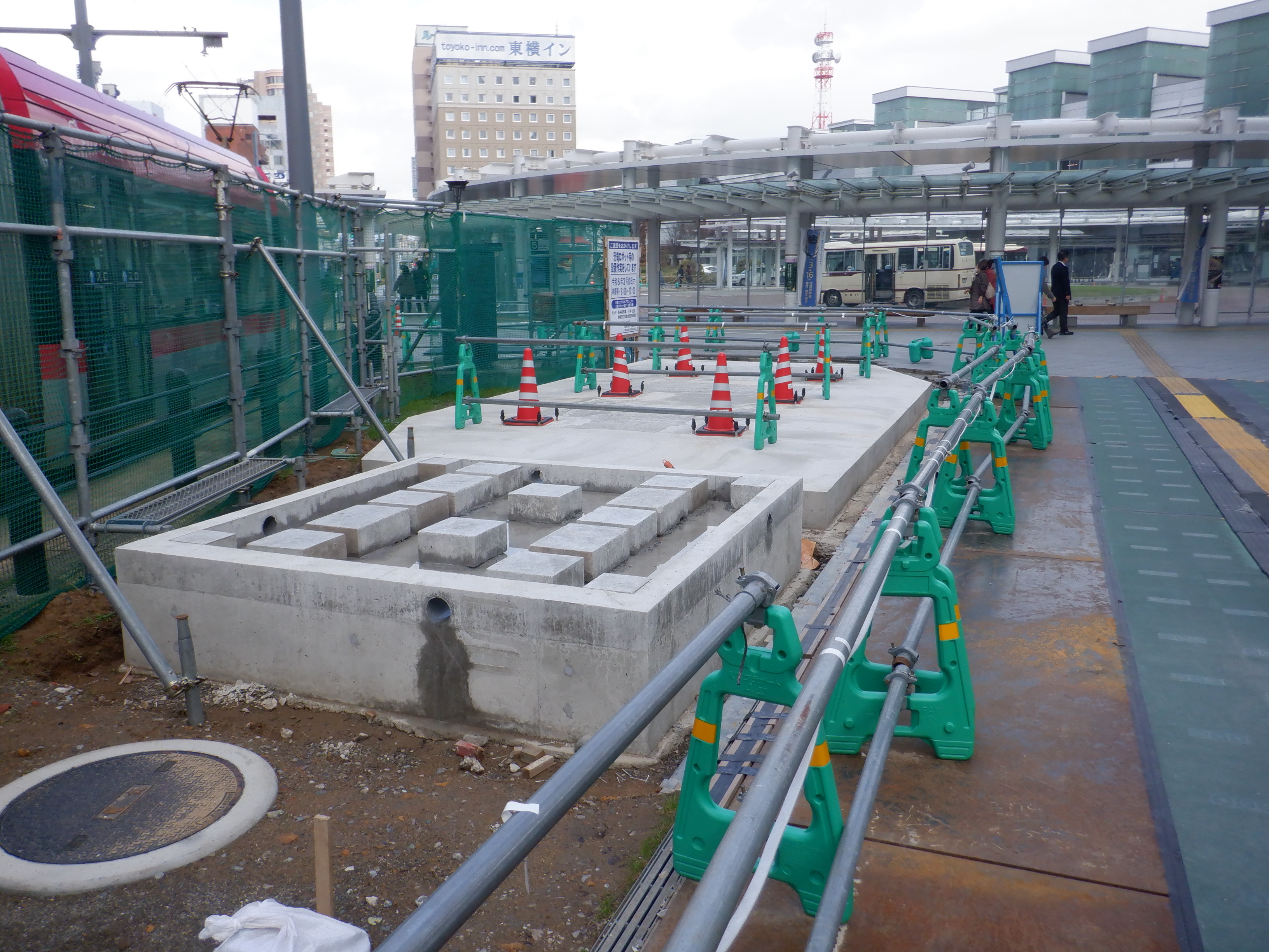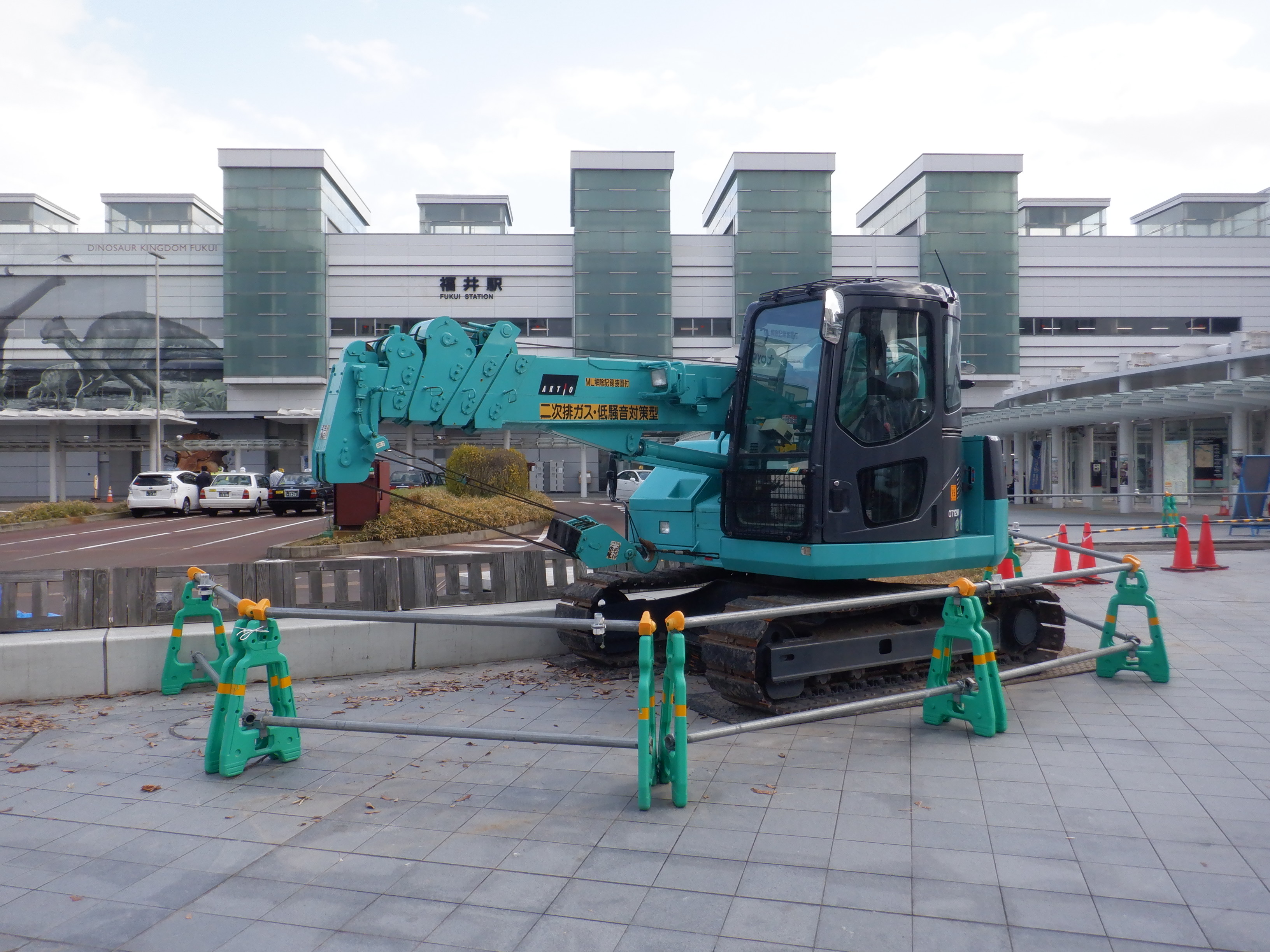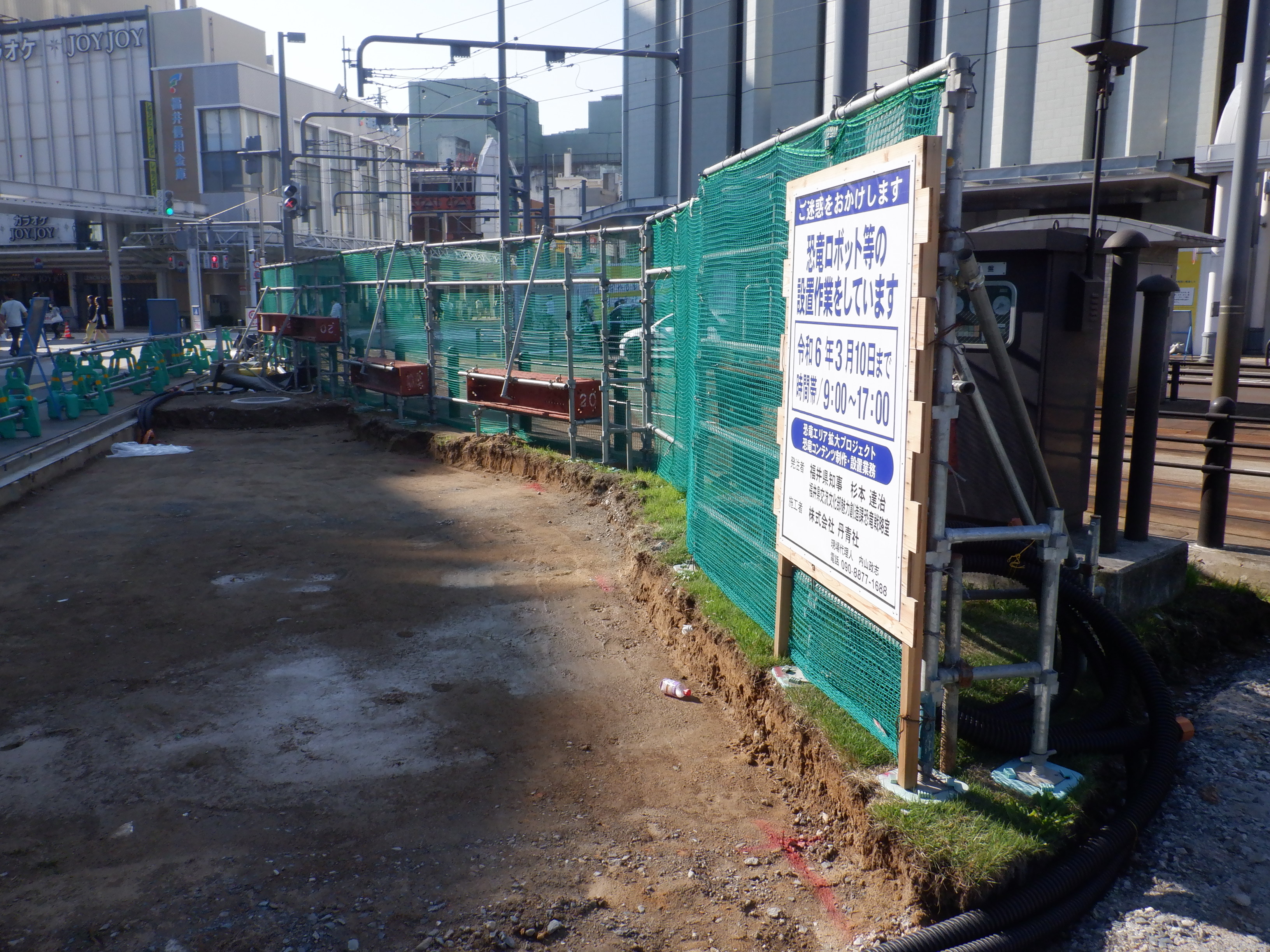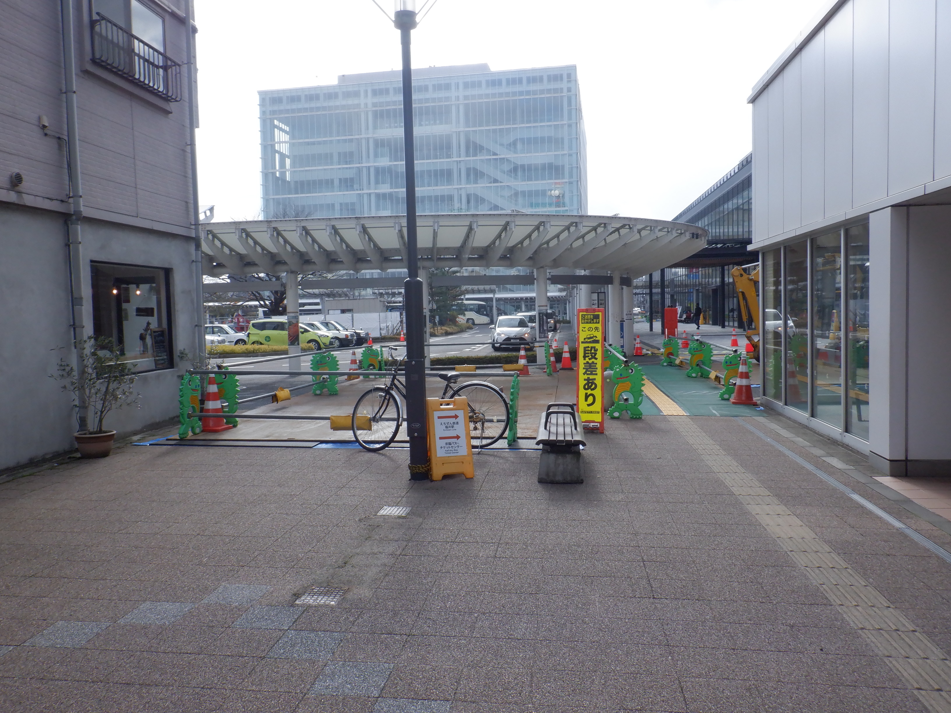 拡張施設とえちぜん鉄道福井駅との間の舗装をしていたところは新たな工事が始まりました。