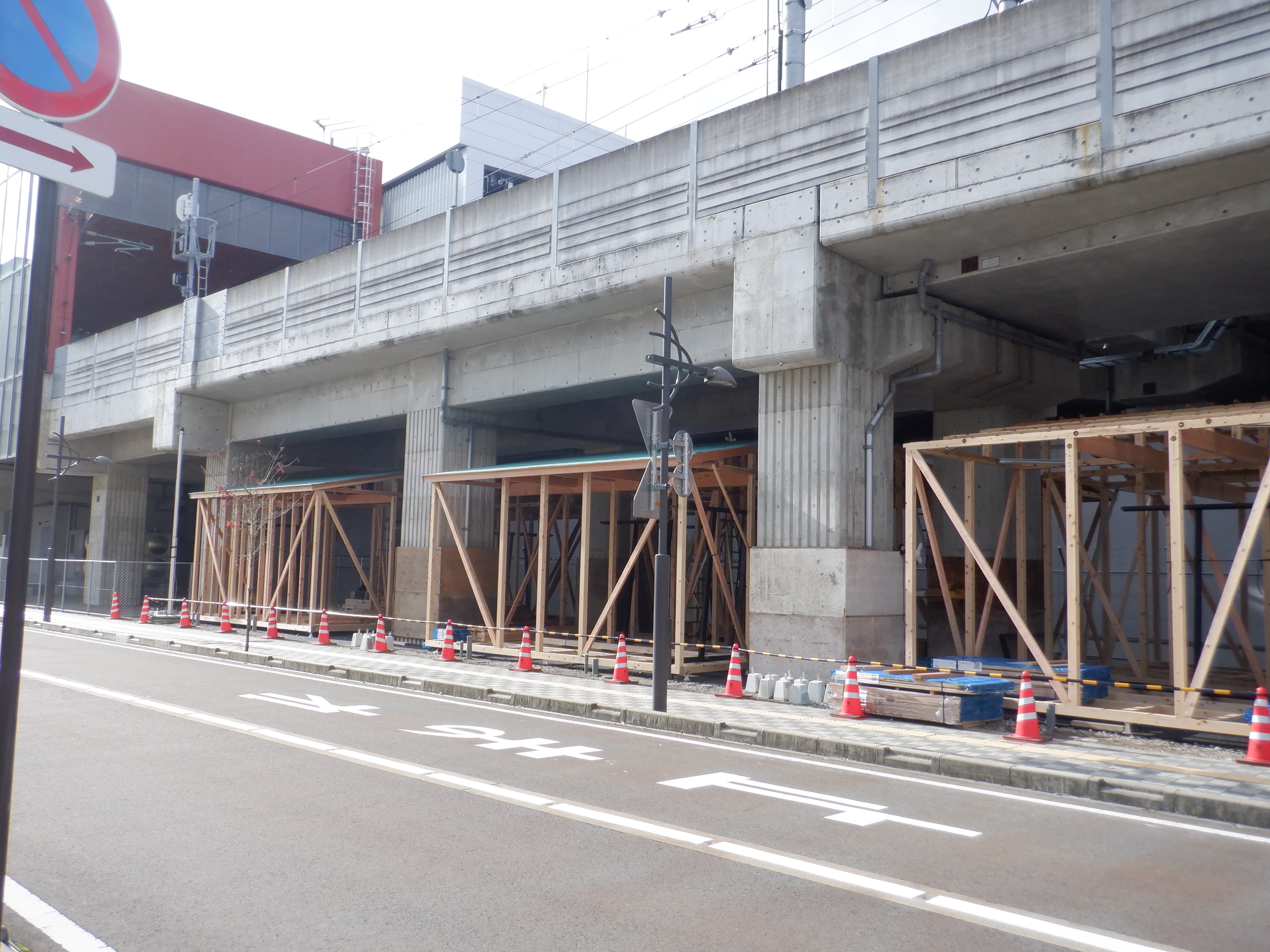 えちぜん鉄道高架下、新福井駅側に屋台村の建設が始まりました。