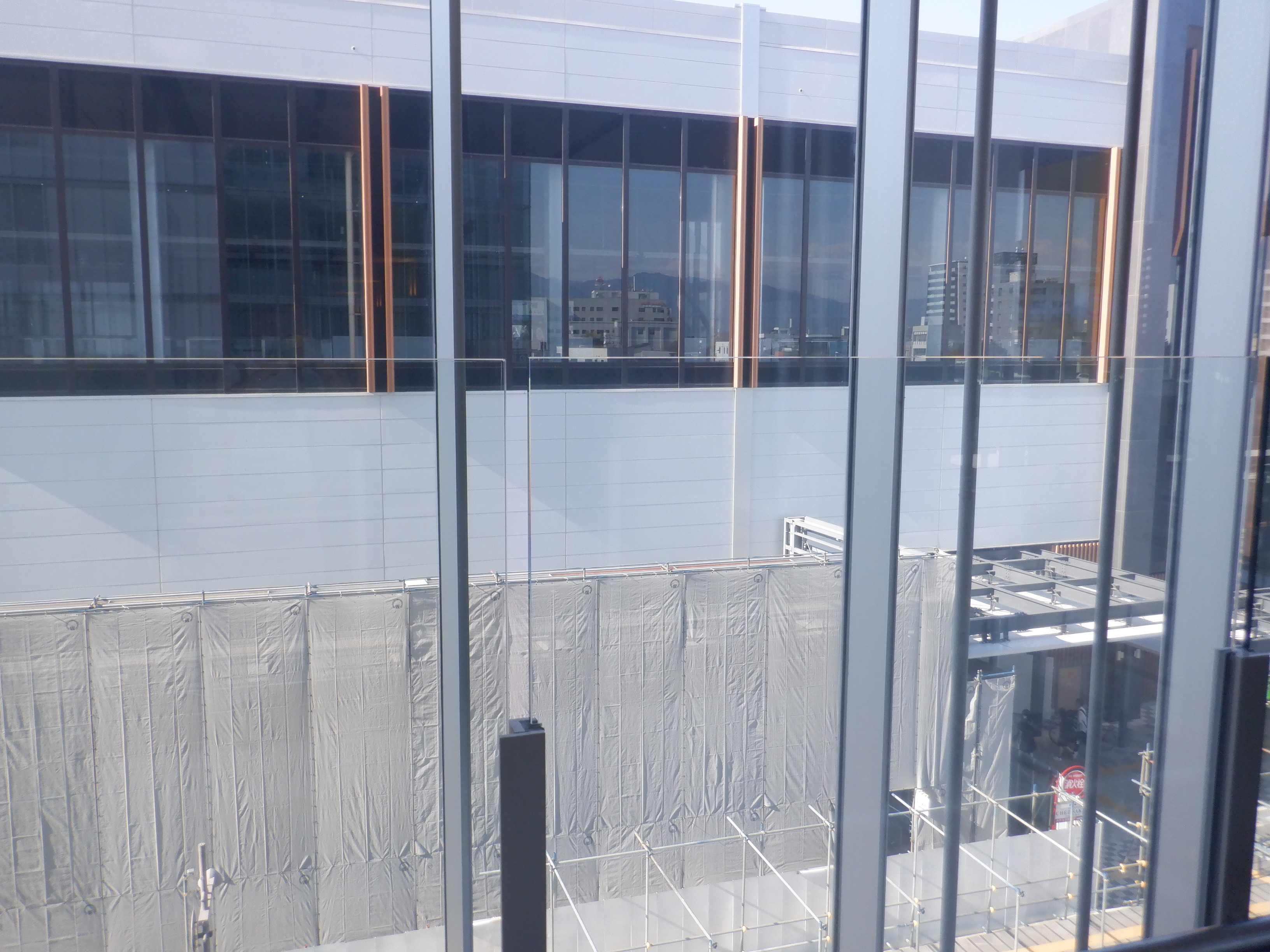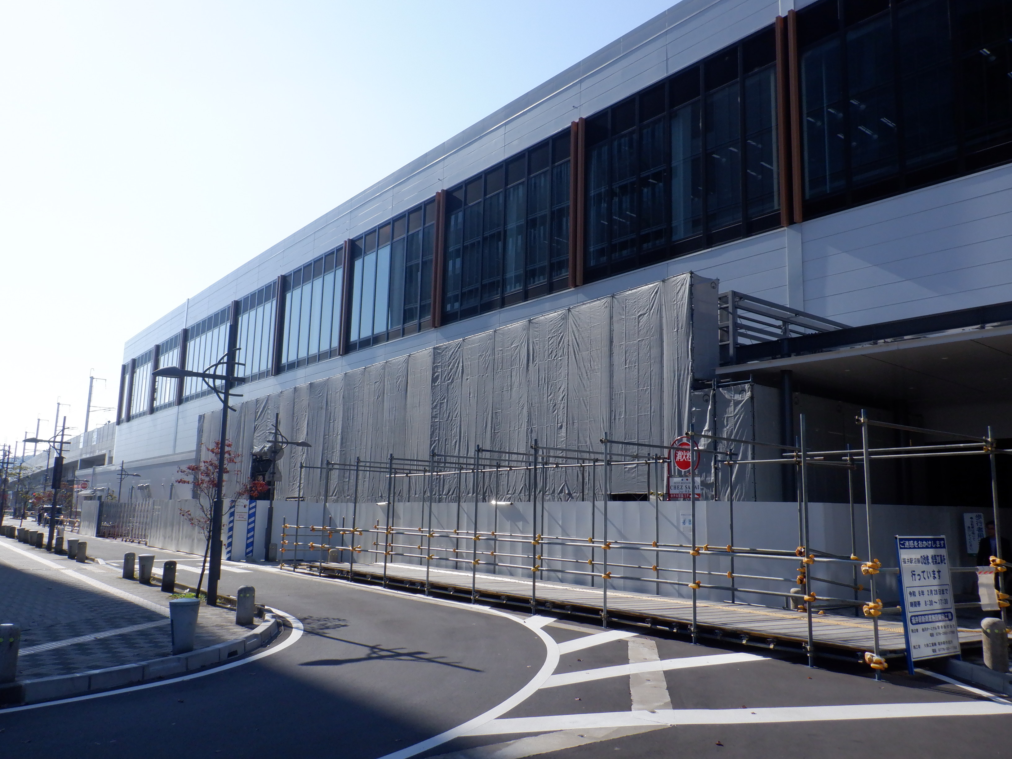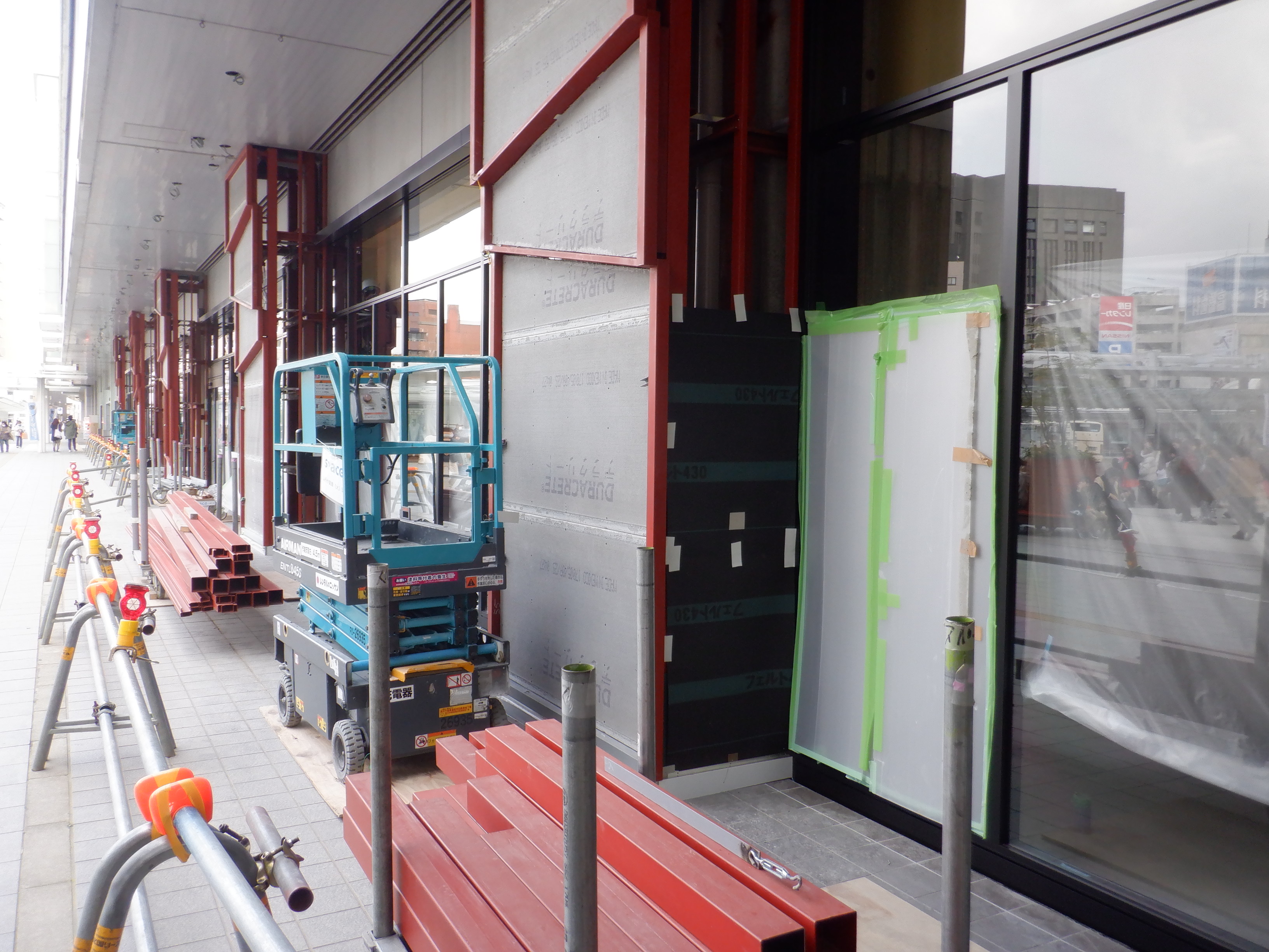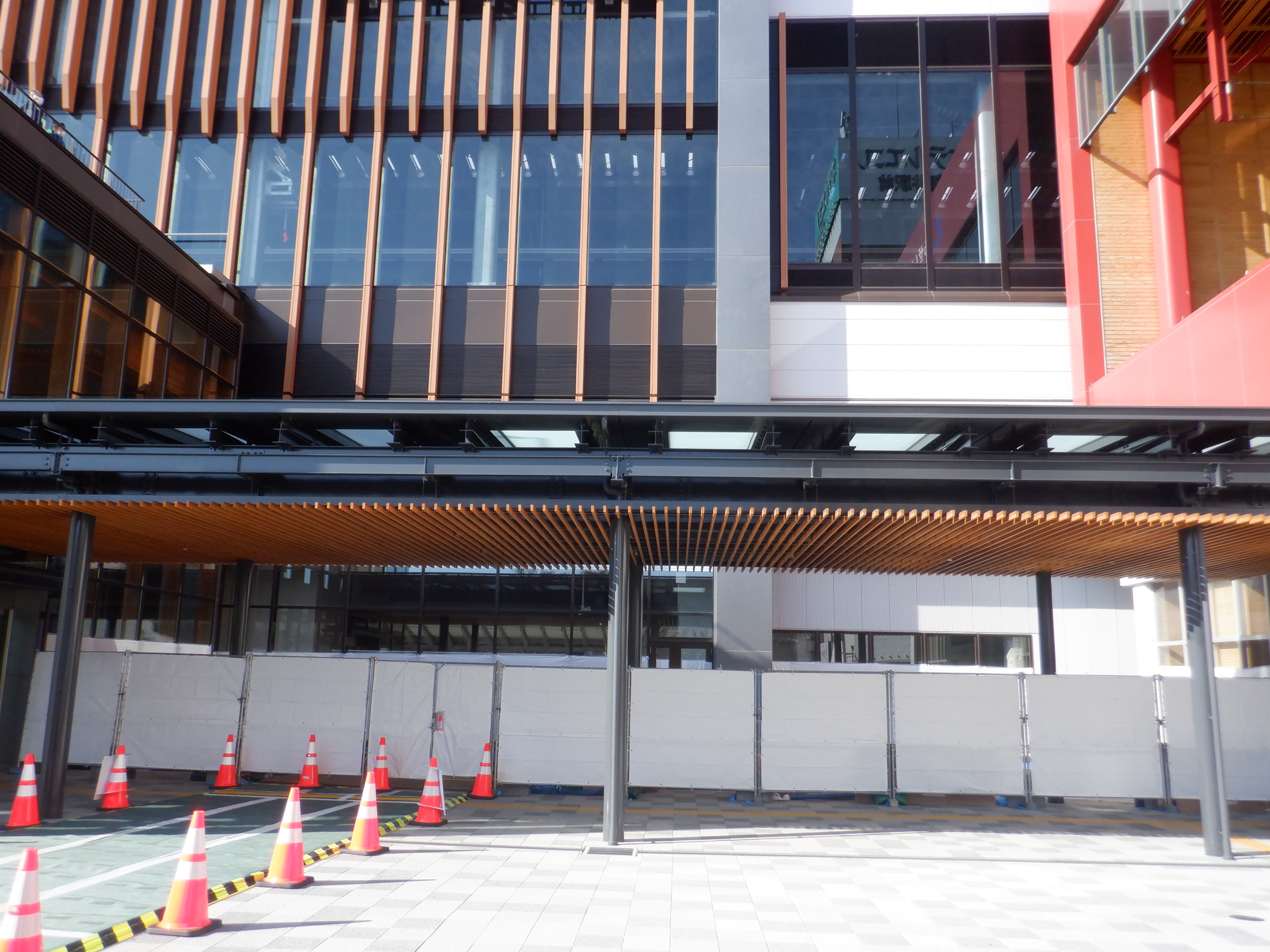 アオッサの前付近から。くるふの一部となるところの外壁が見えてきました。