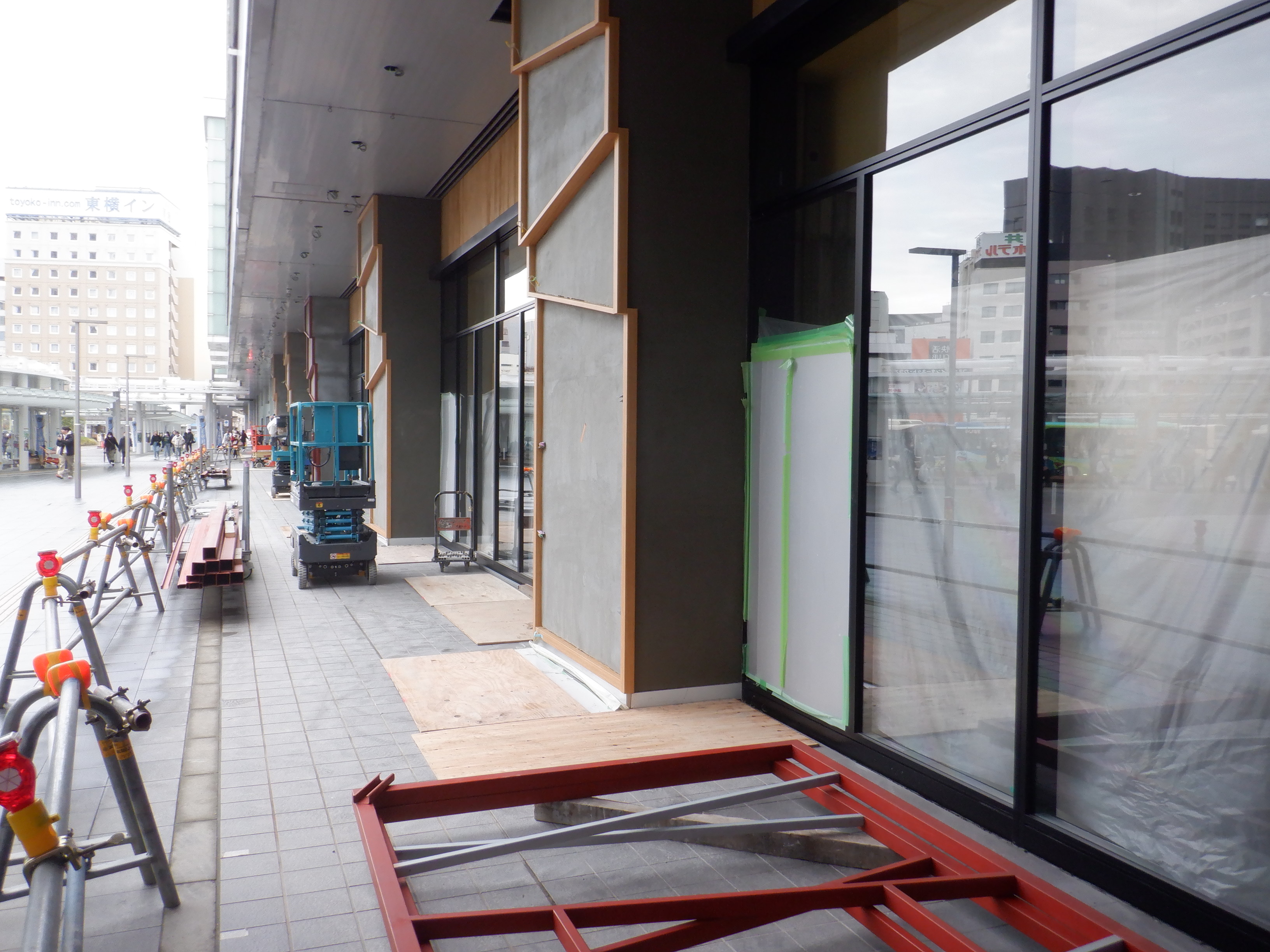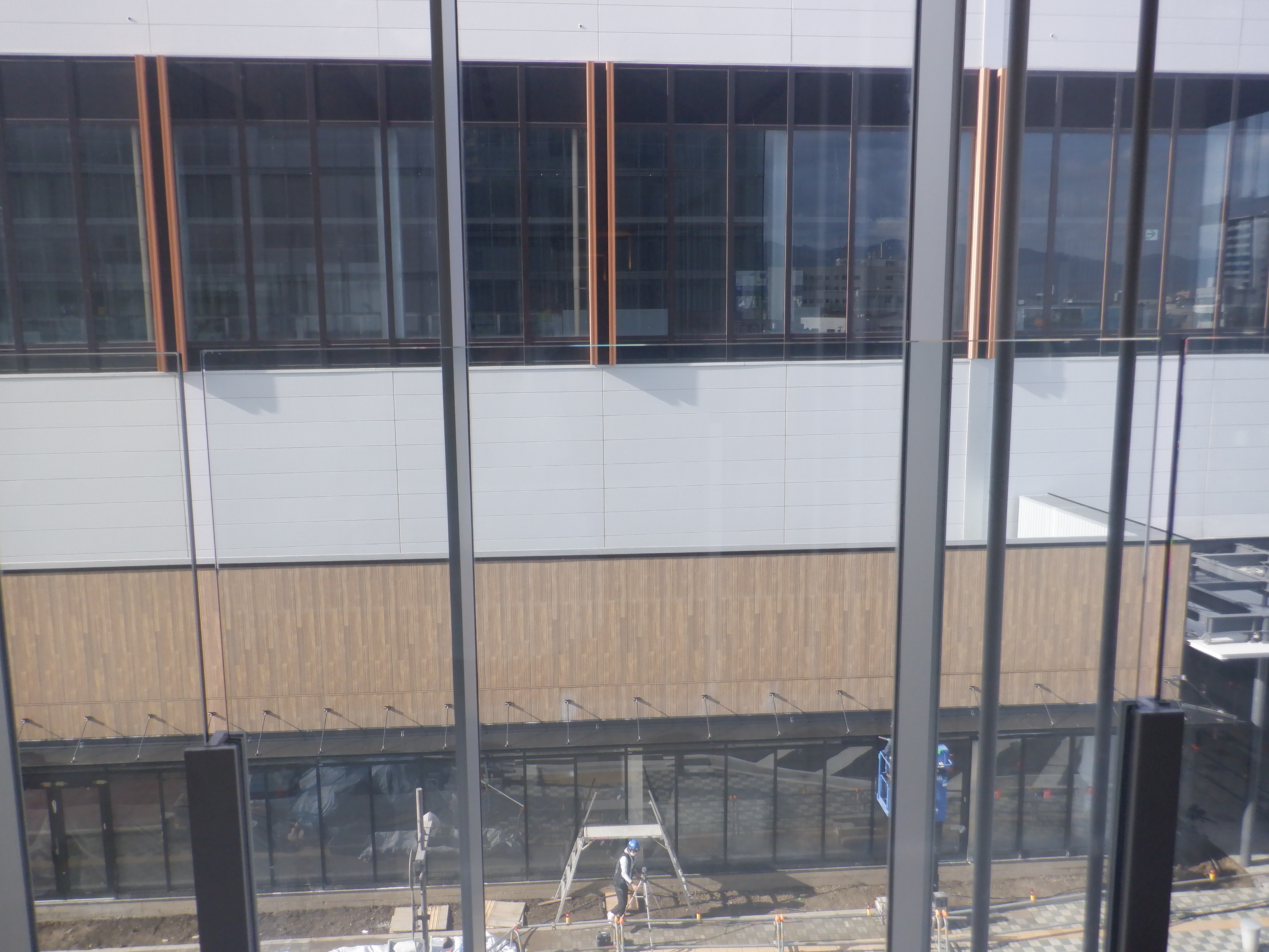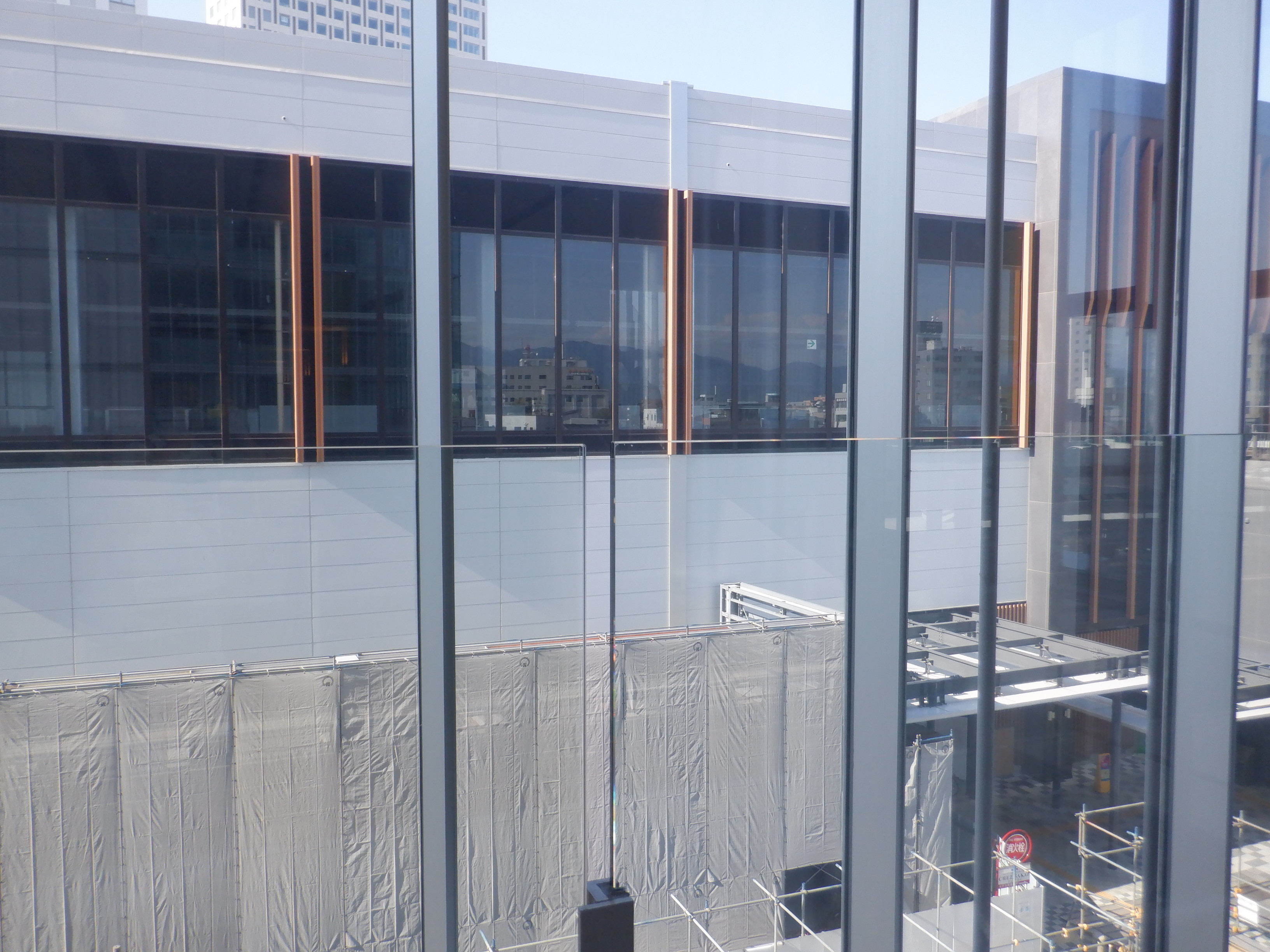 アオッサの前付近から。くるふの一部となるところの外壁が見えてきました。