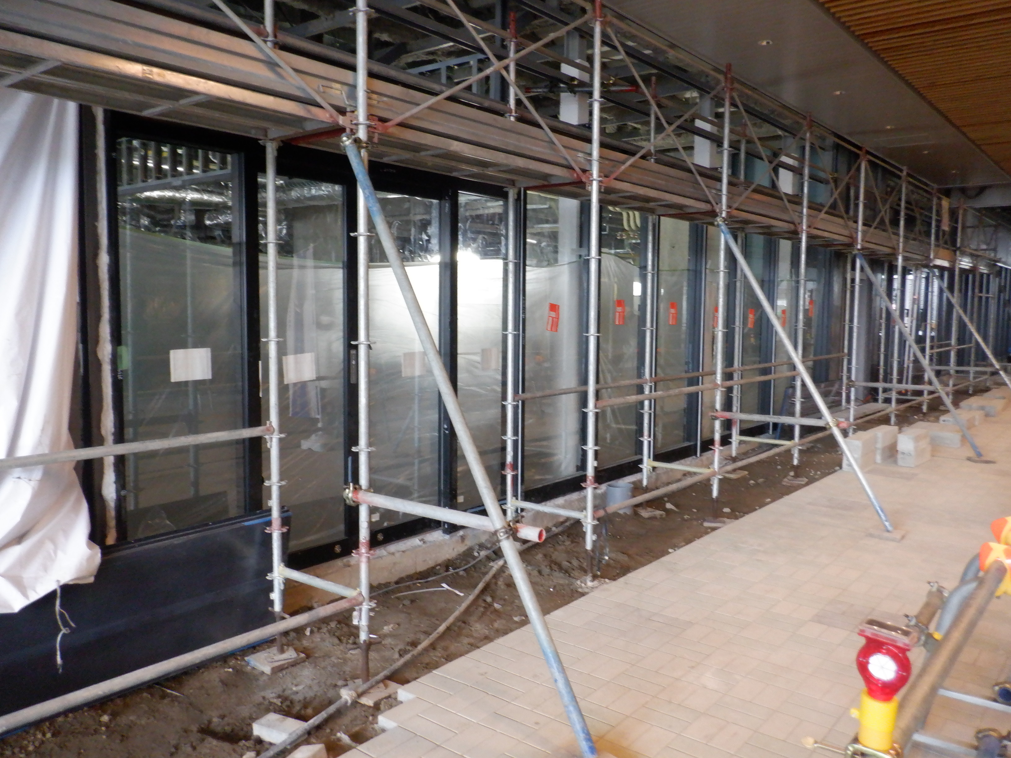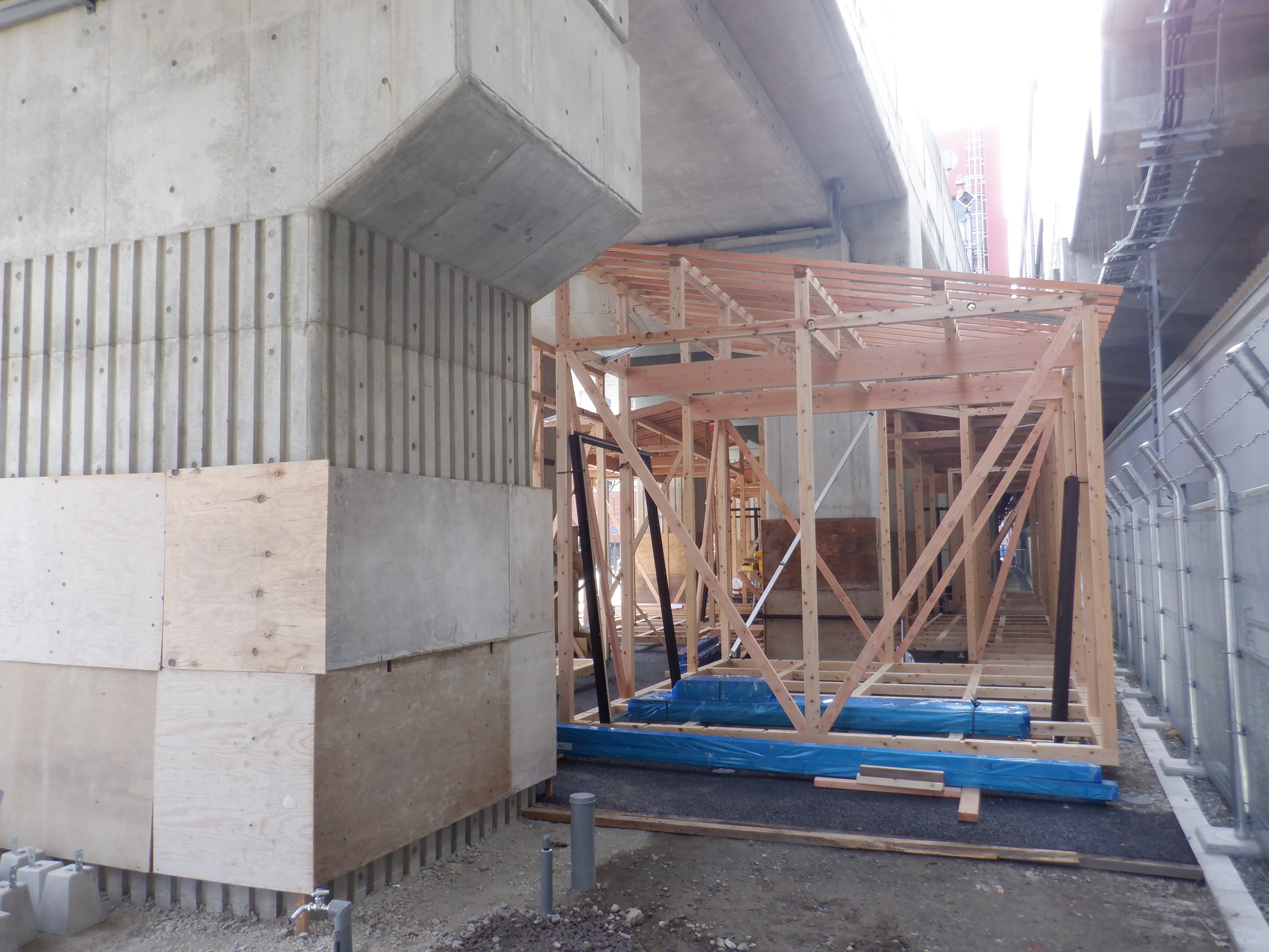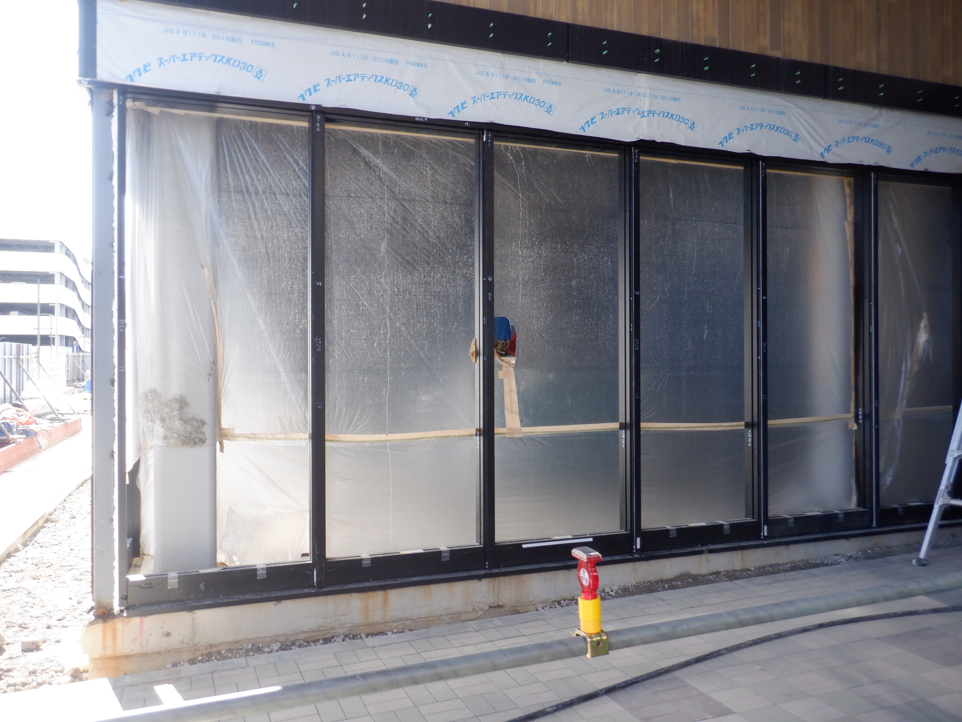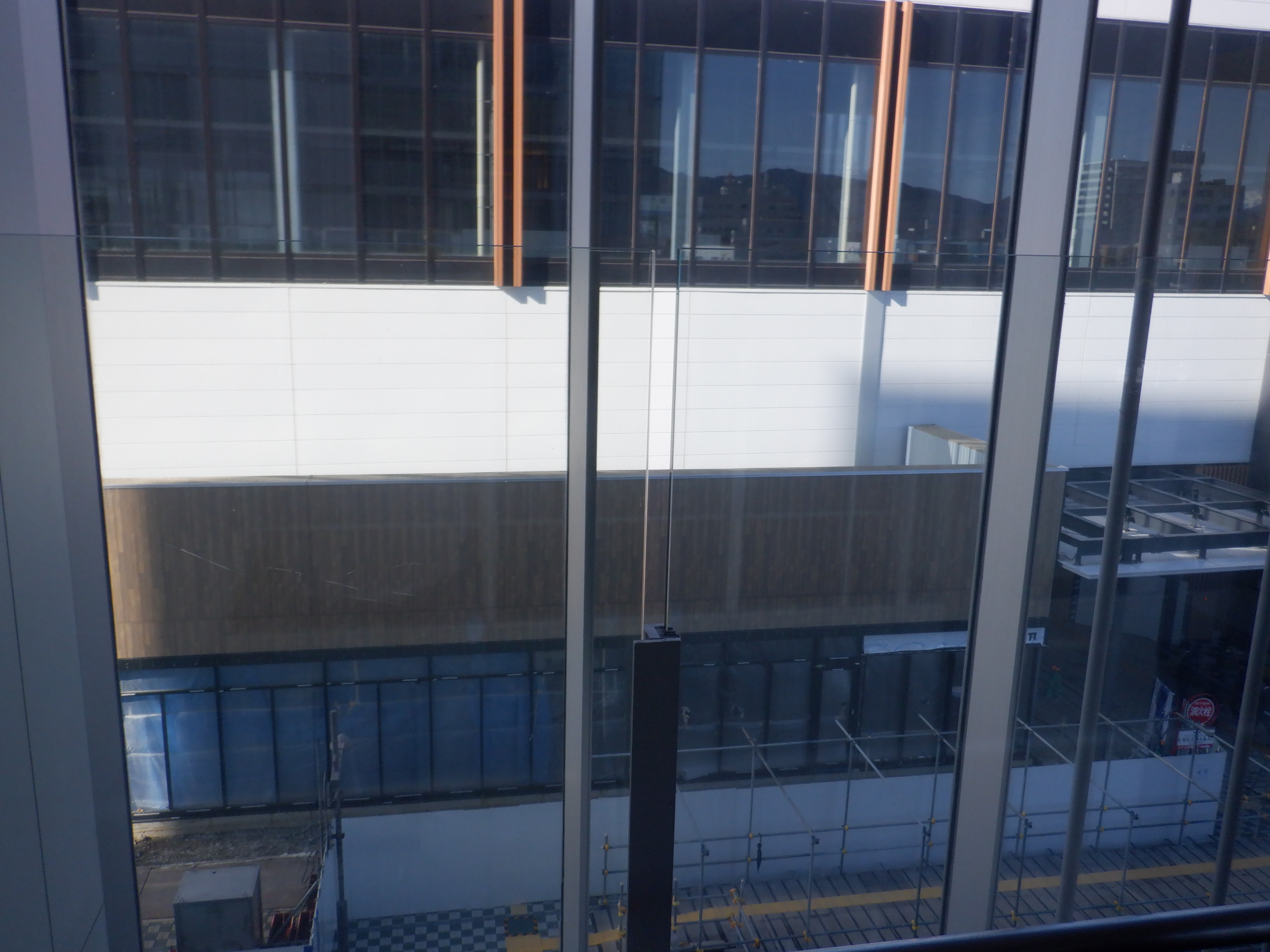 アオッサの前付近から。くるふの一部となるところの外壁が見えてきました。