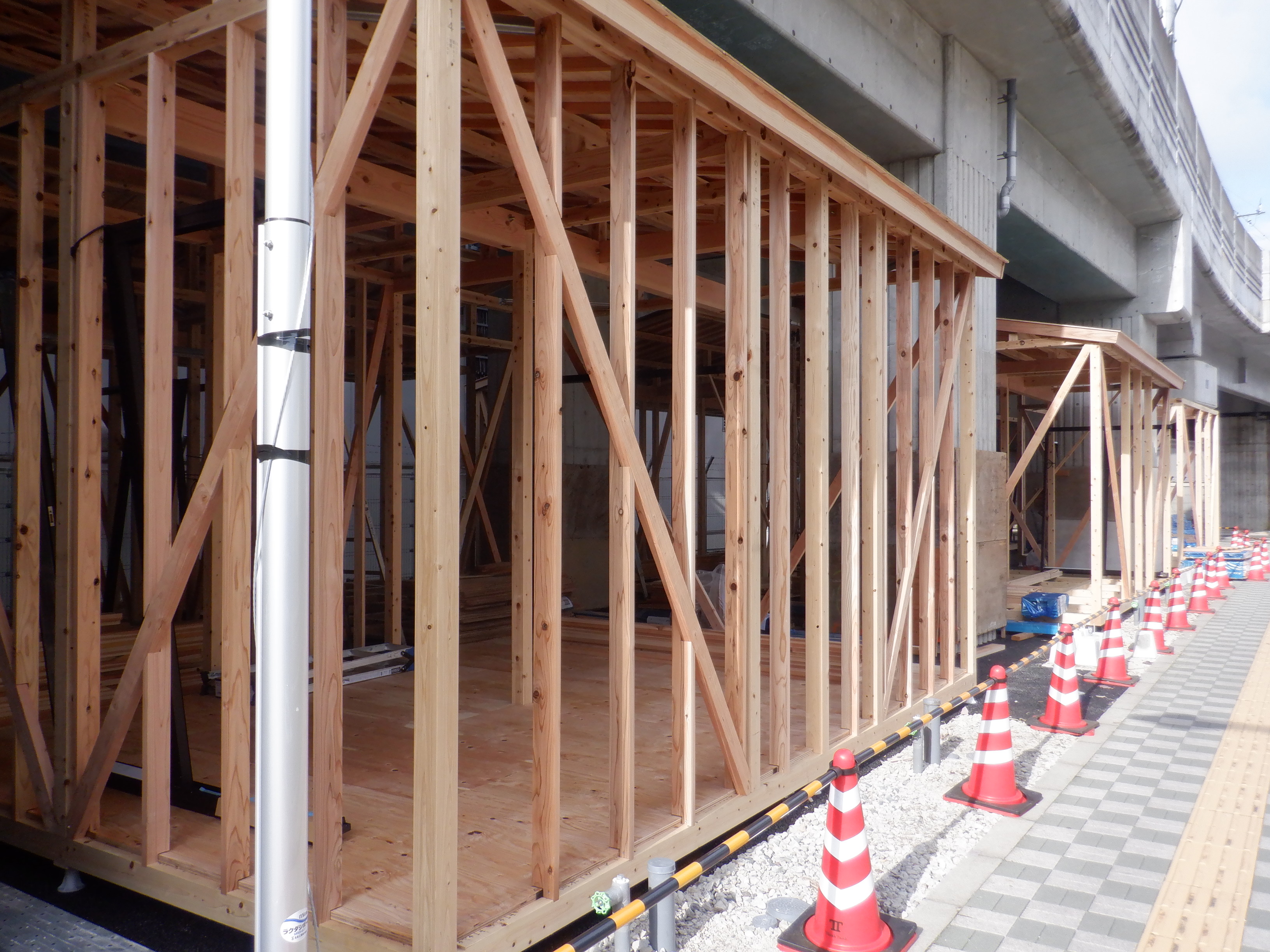 各所の建設が進んでいました。えちぜん鉄道高架下に屋台村の建設も始まりました。