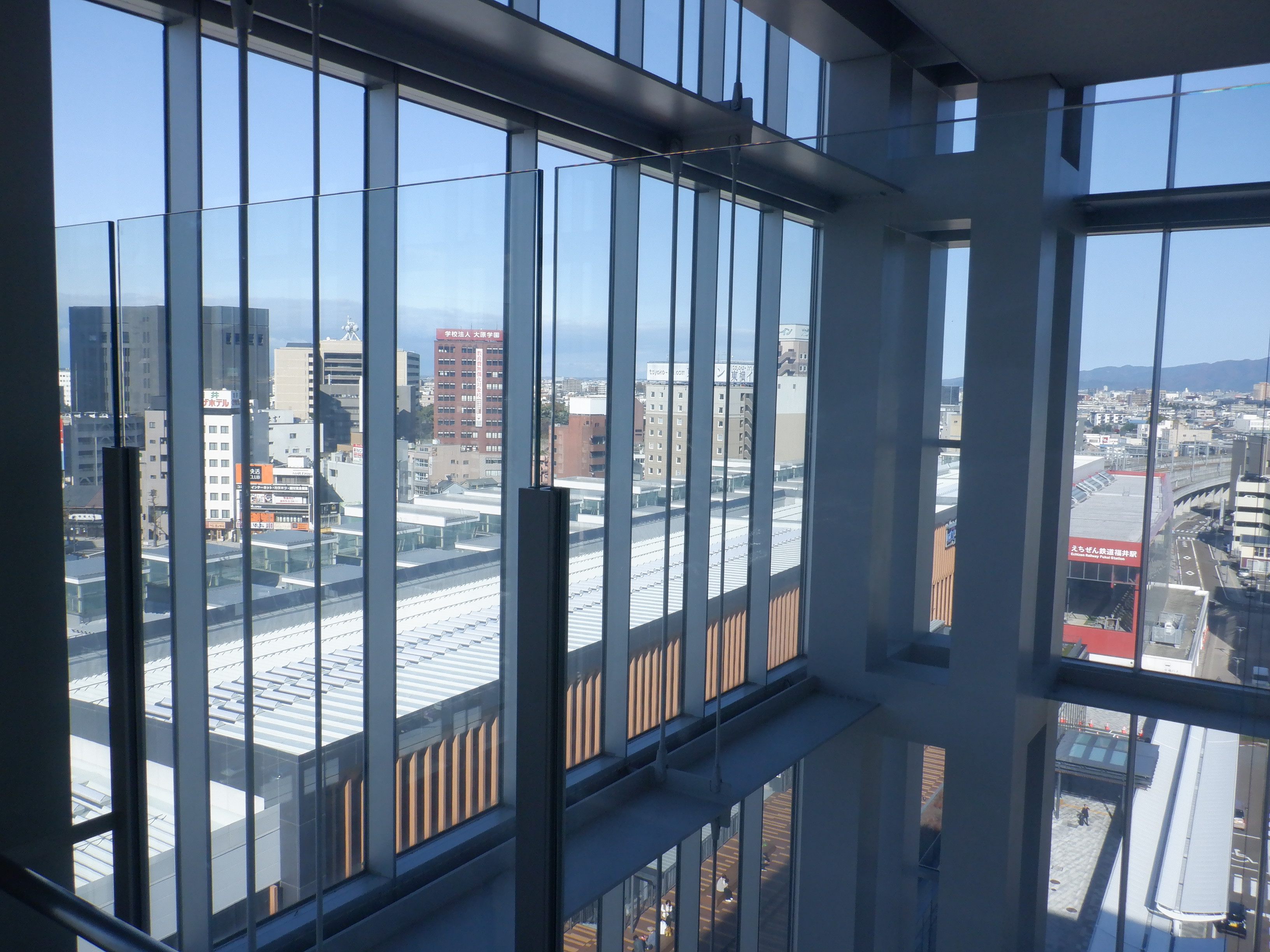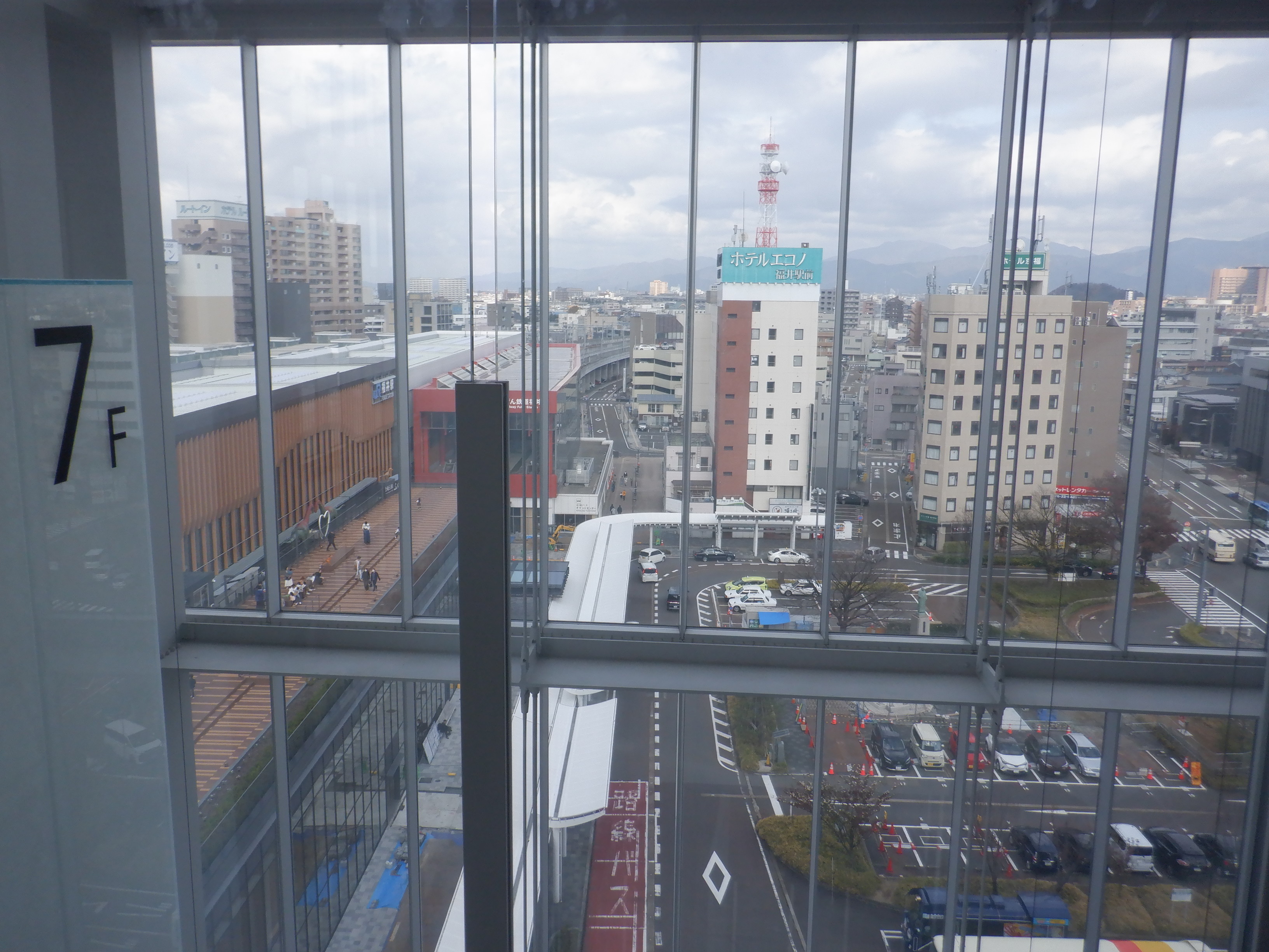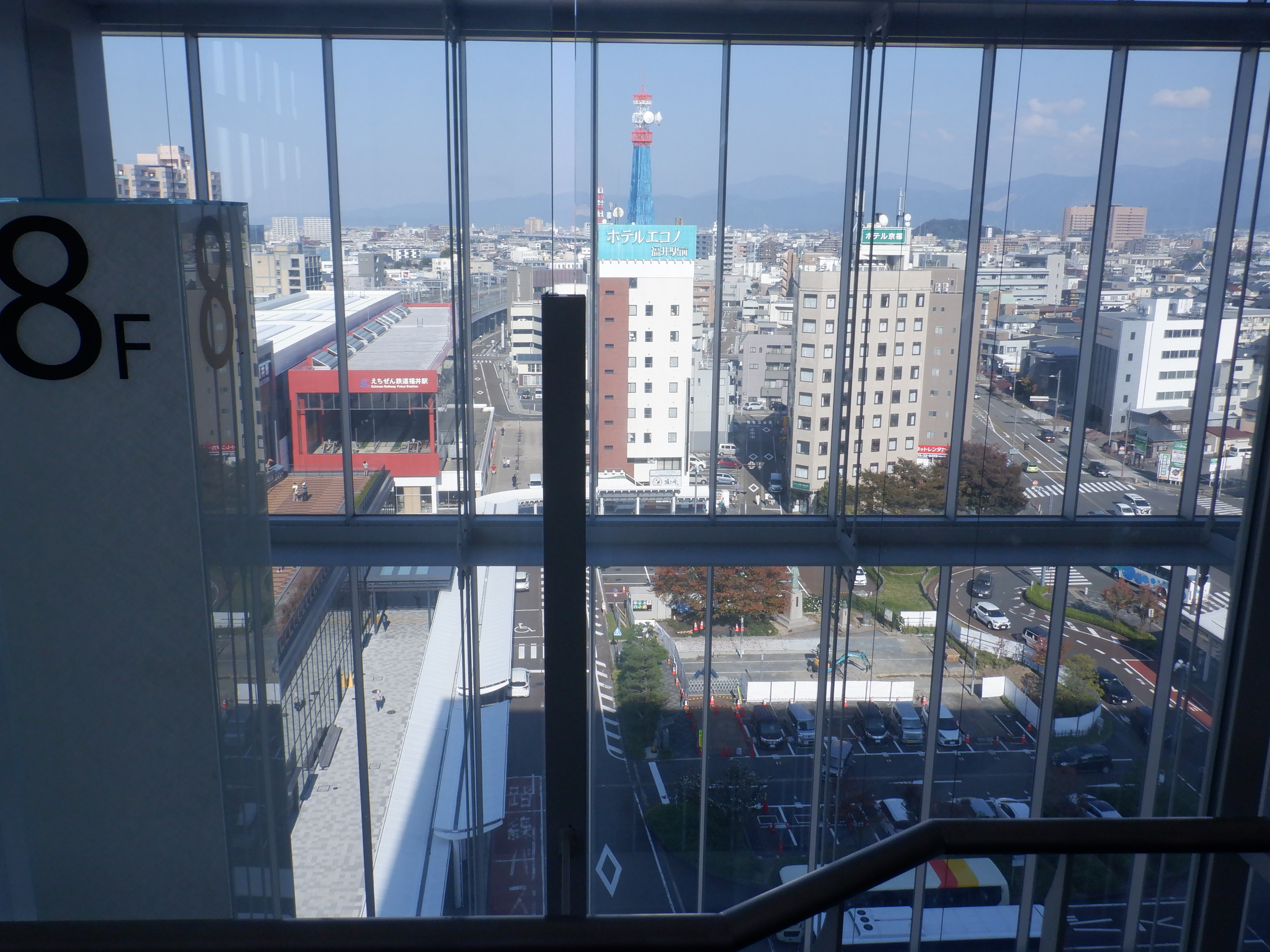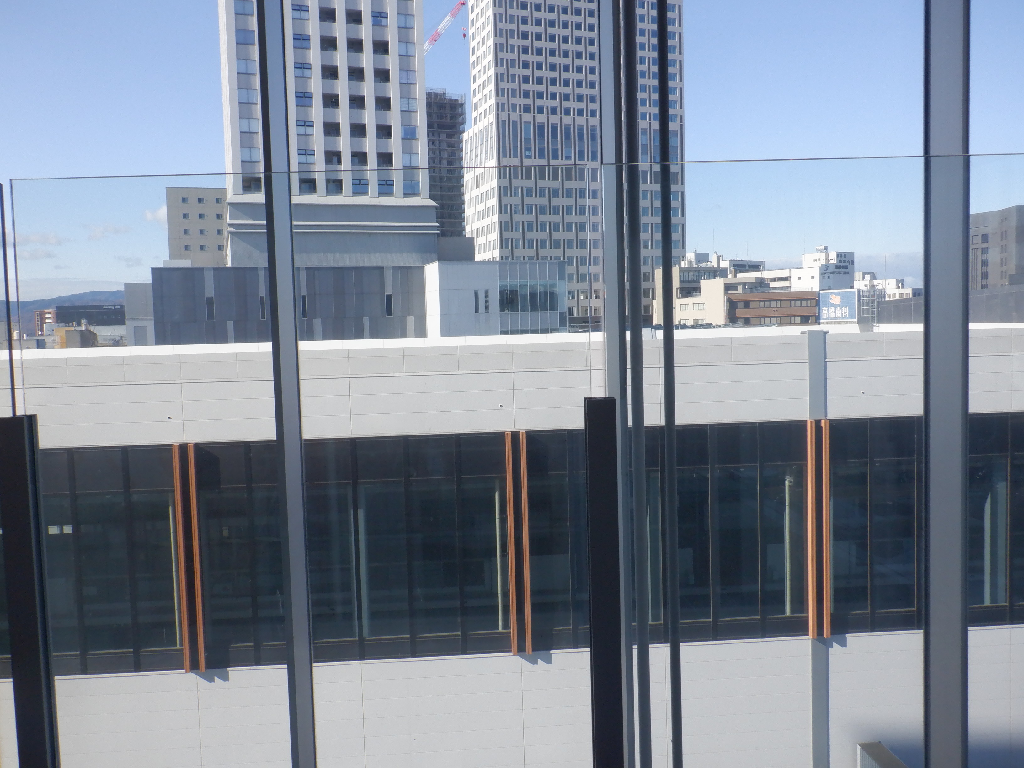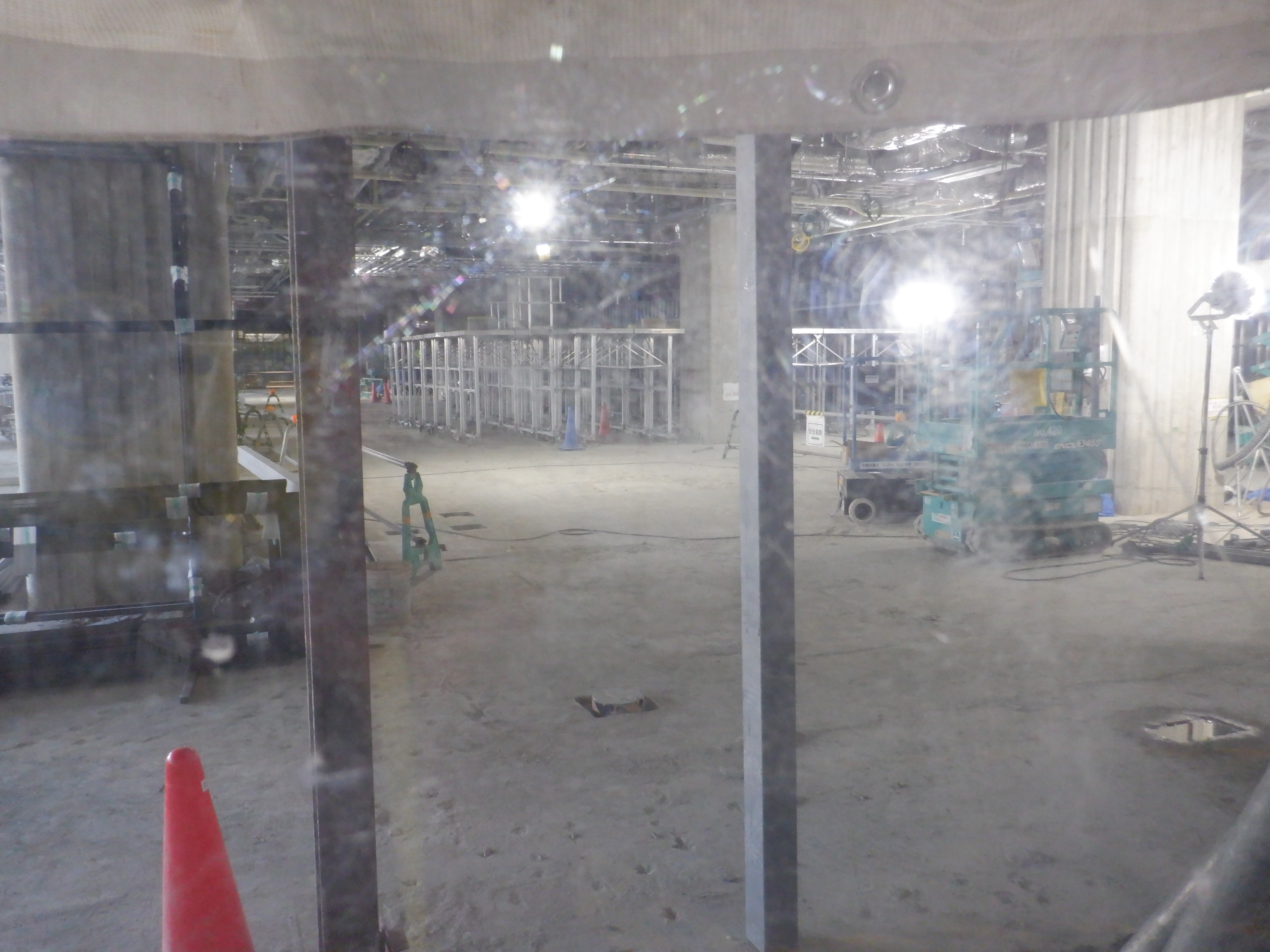 アオッサ7階・8階、そこから見おろした恐竜設備建設中のところ。