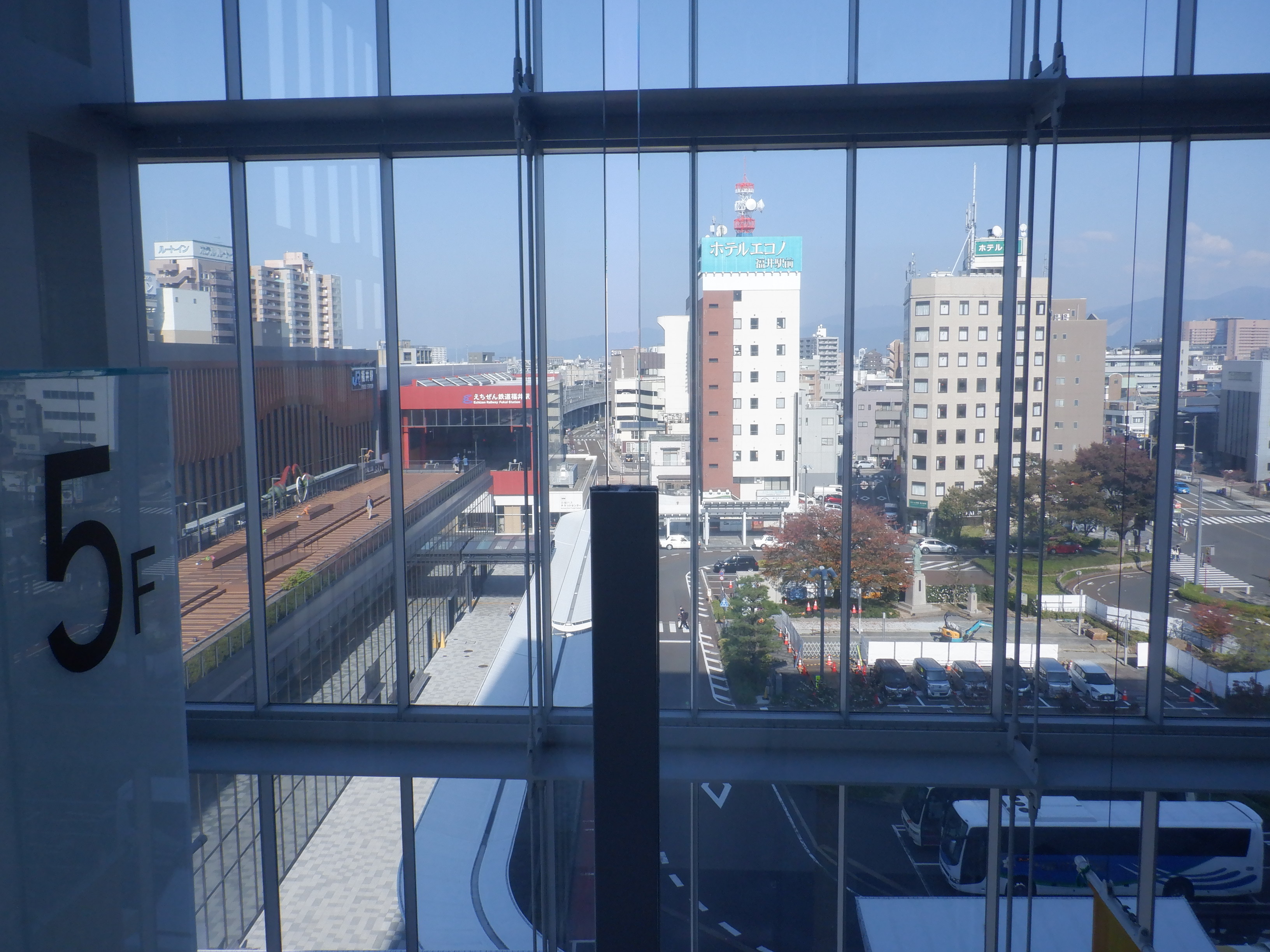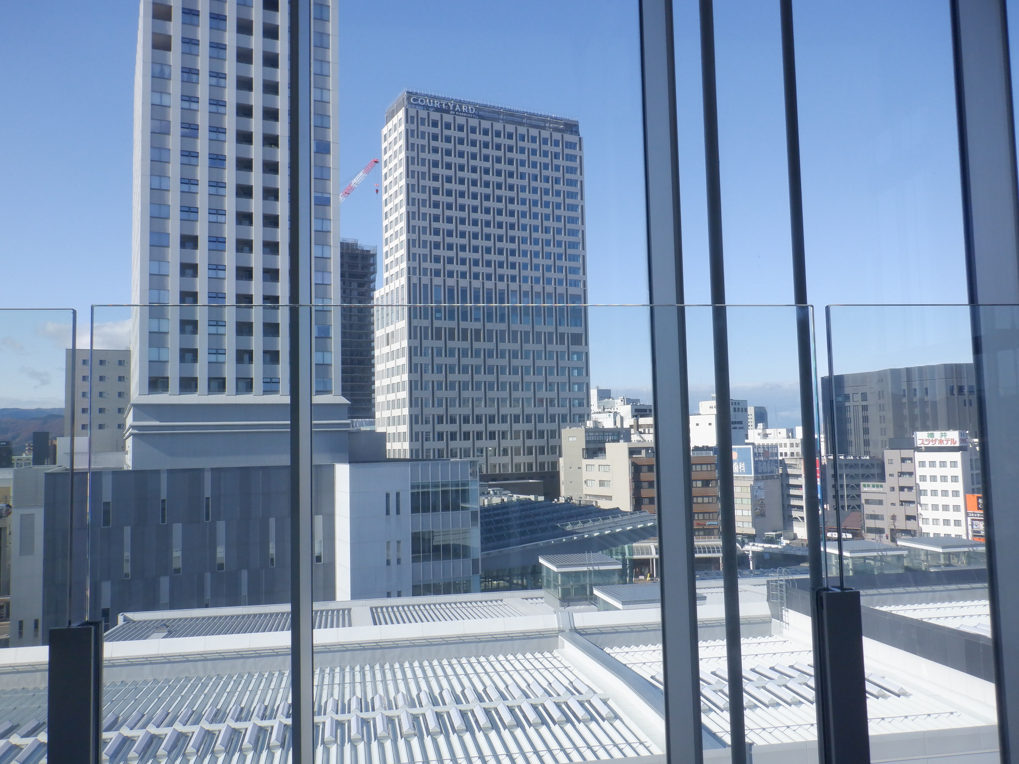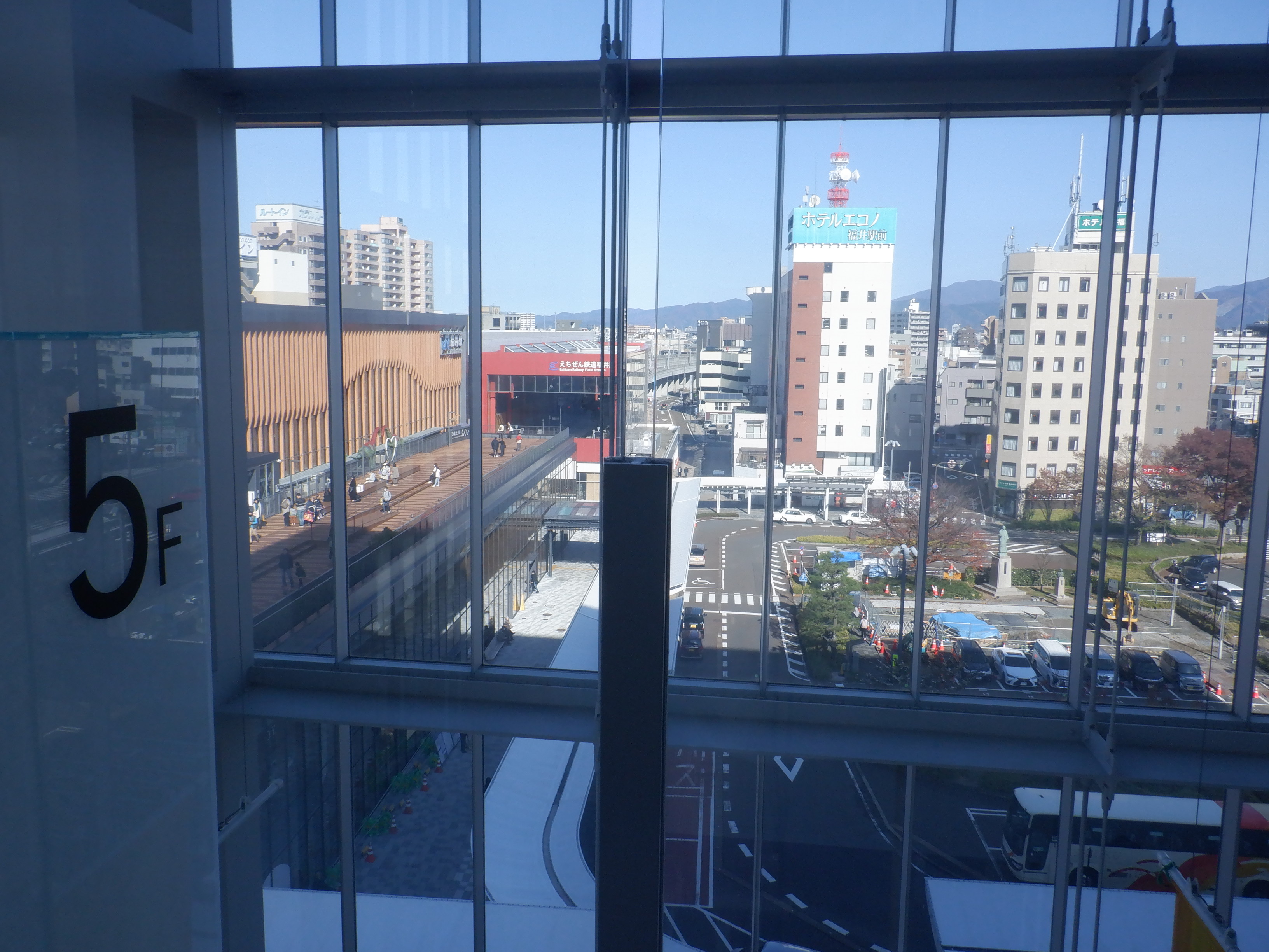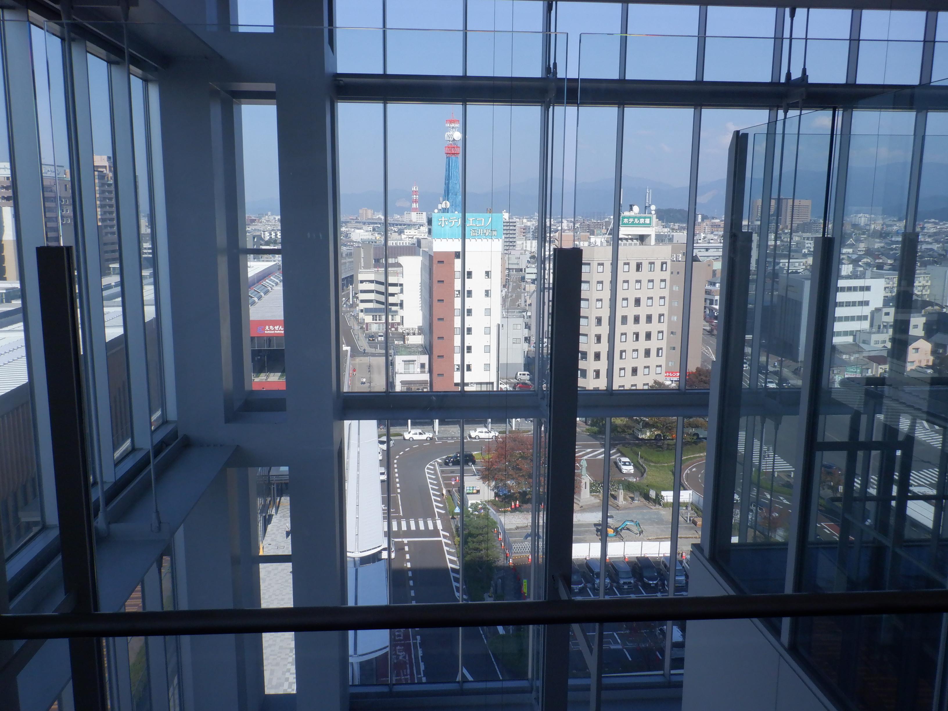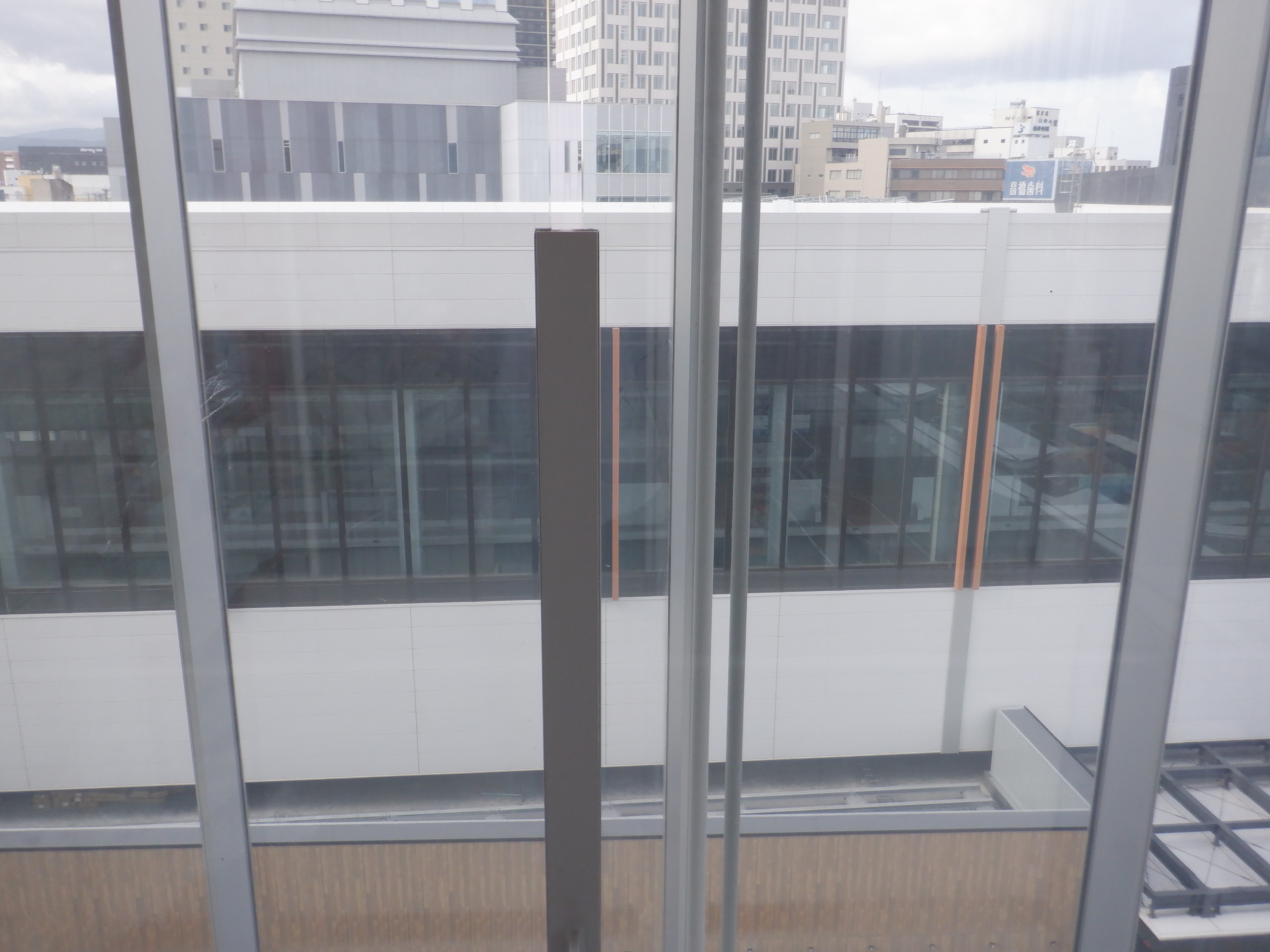 アオッサ7階・8階、そこから見おろした恐竜設備建設中のところ。