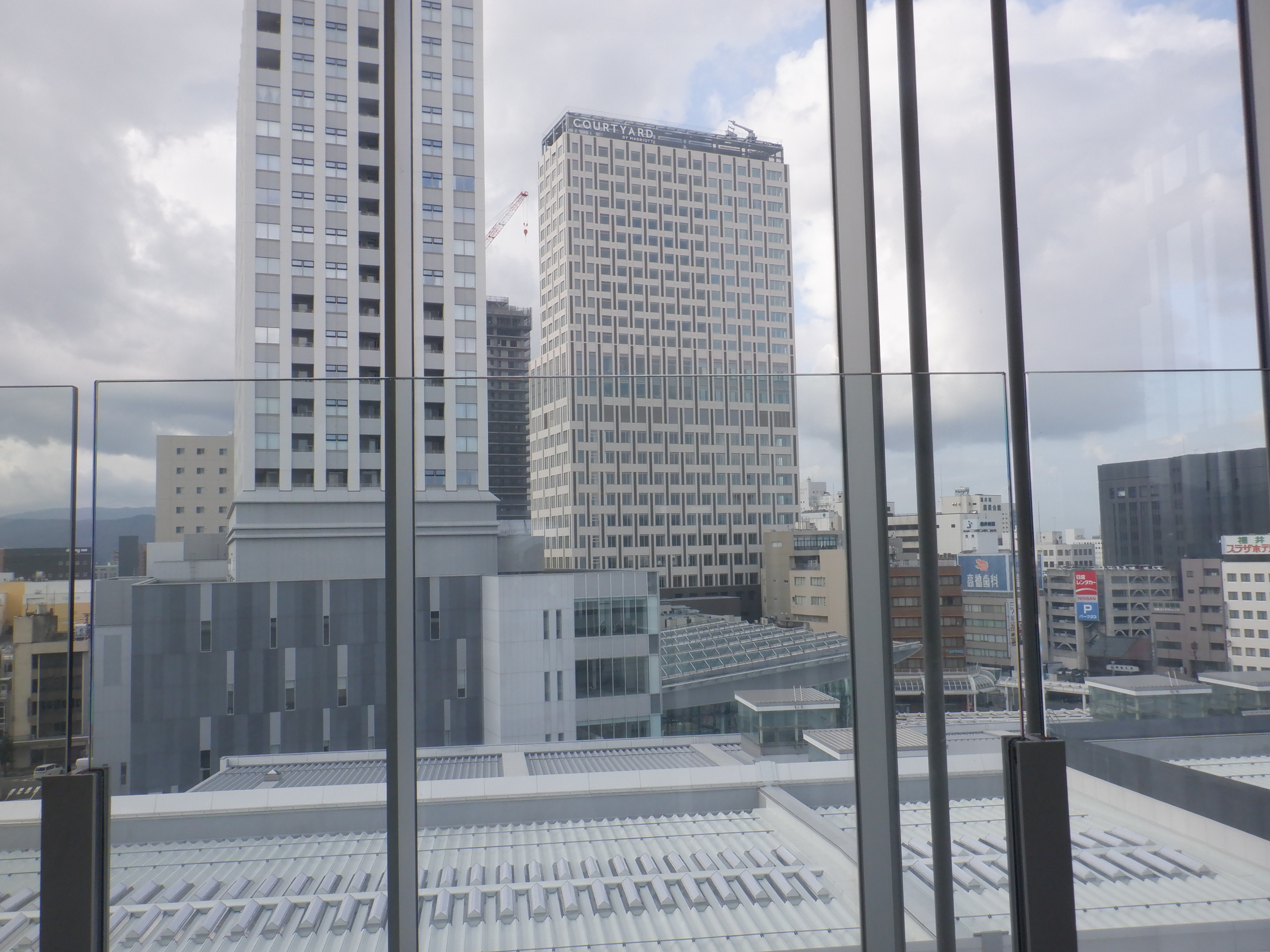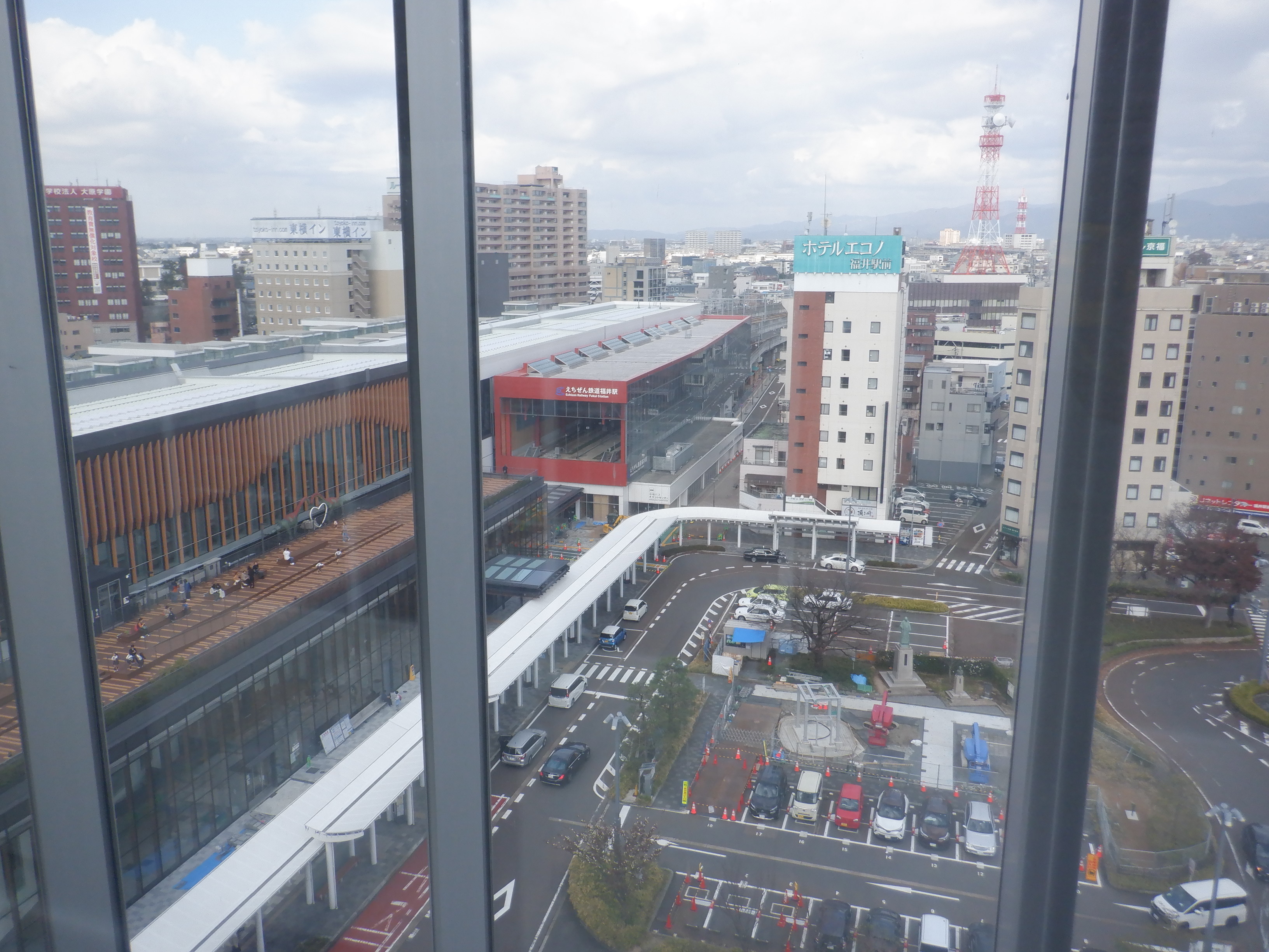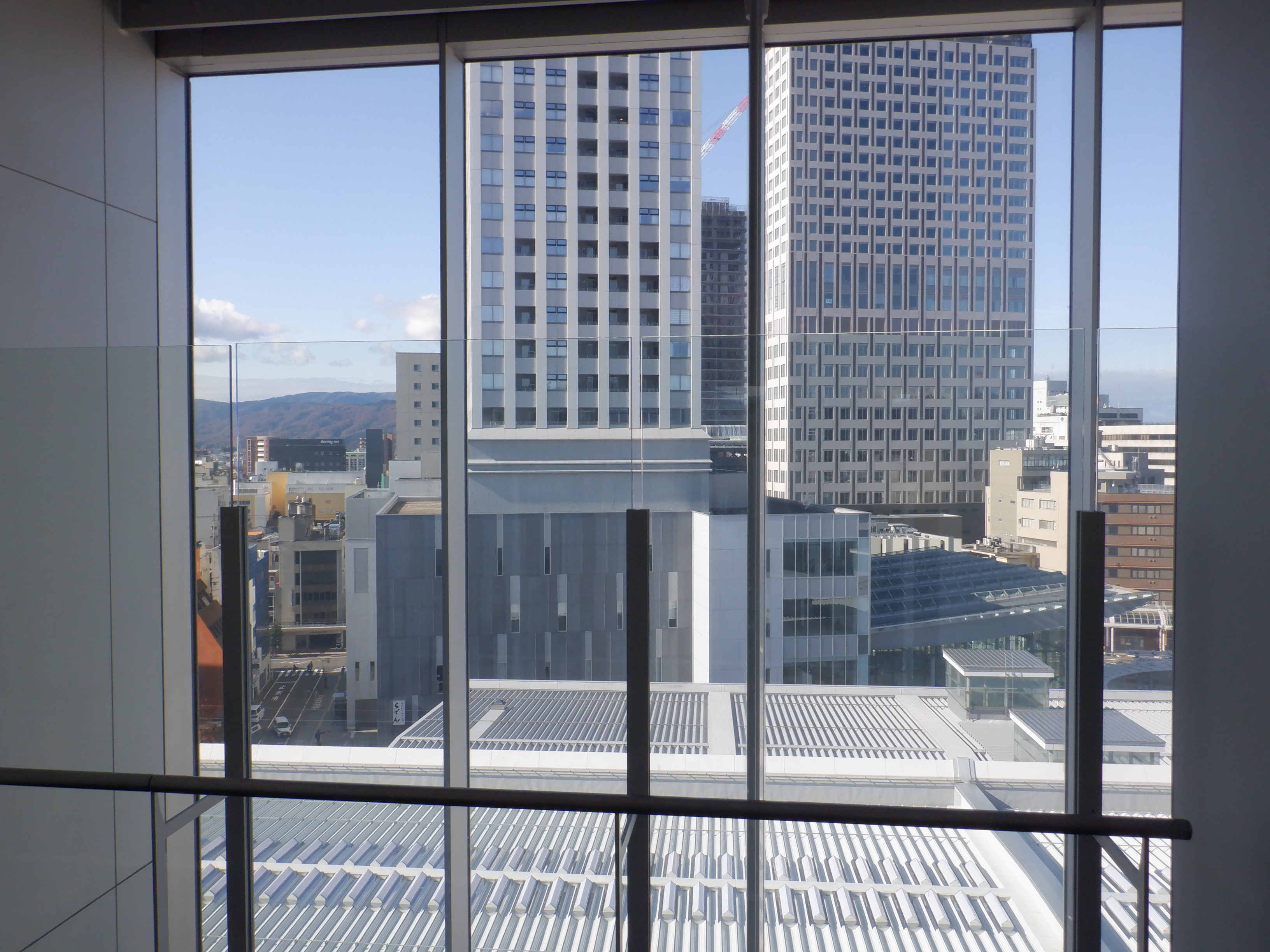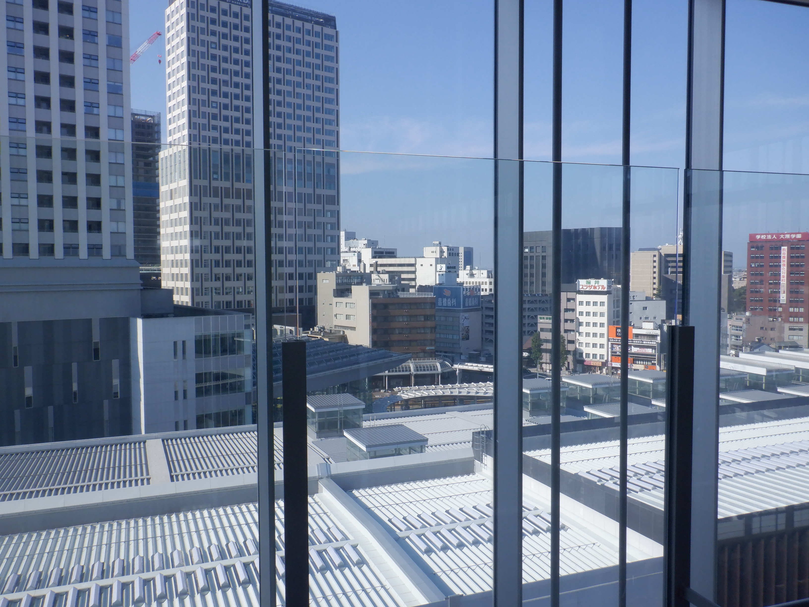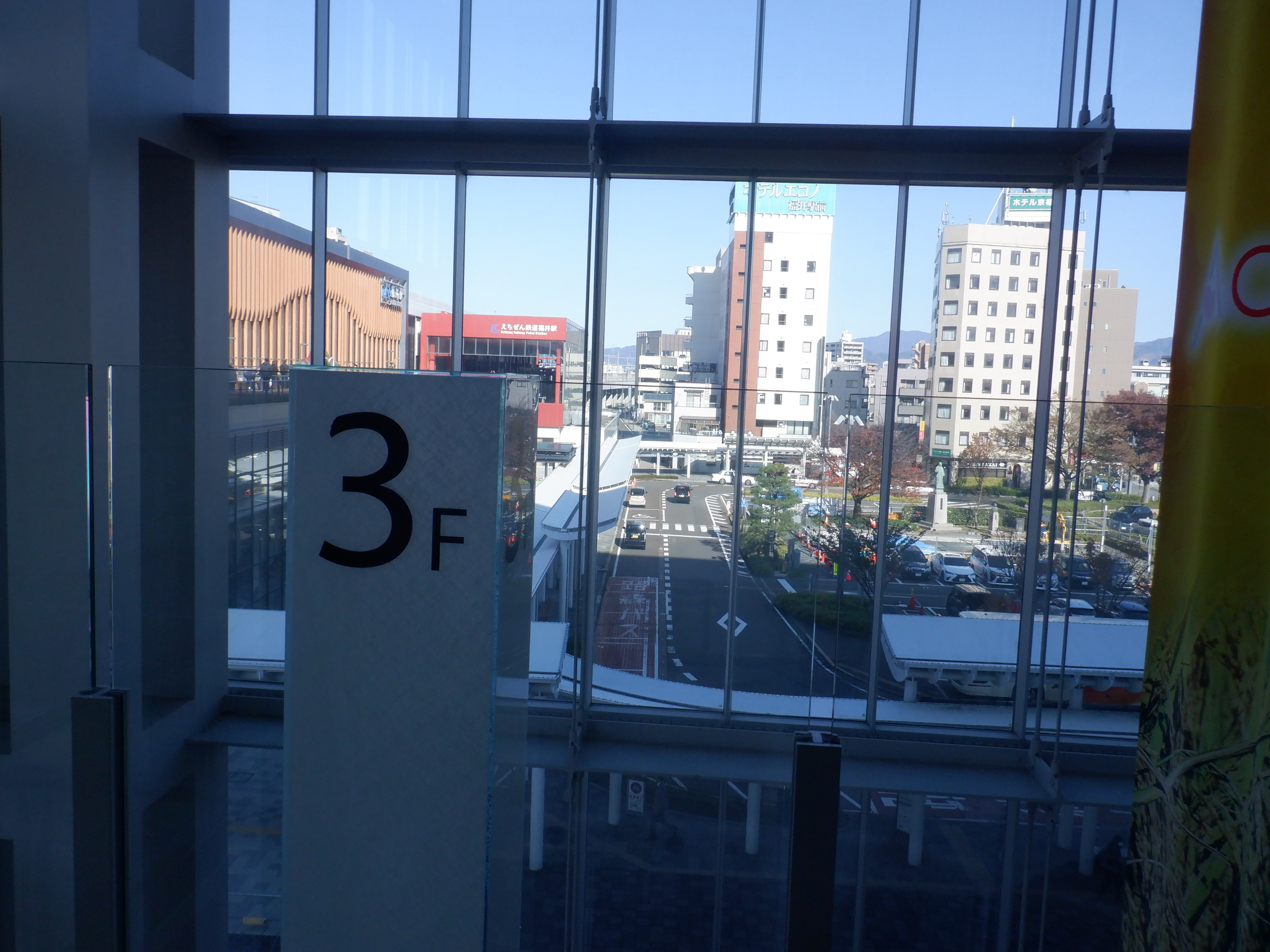 アオッサ7階・8階、そこから見おろした恐竜設備建設中のところ。