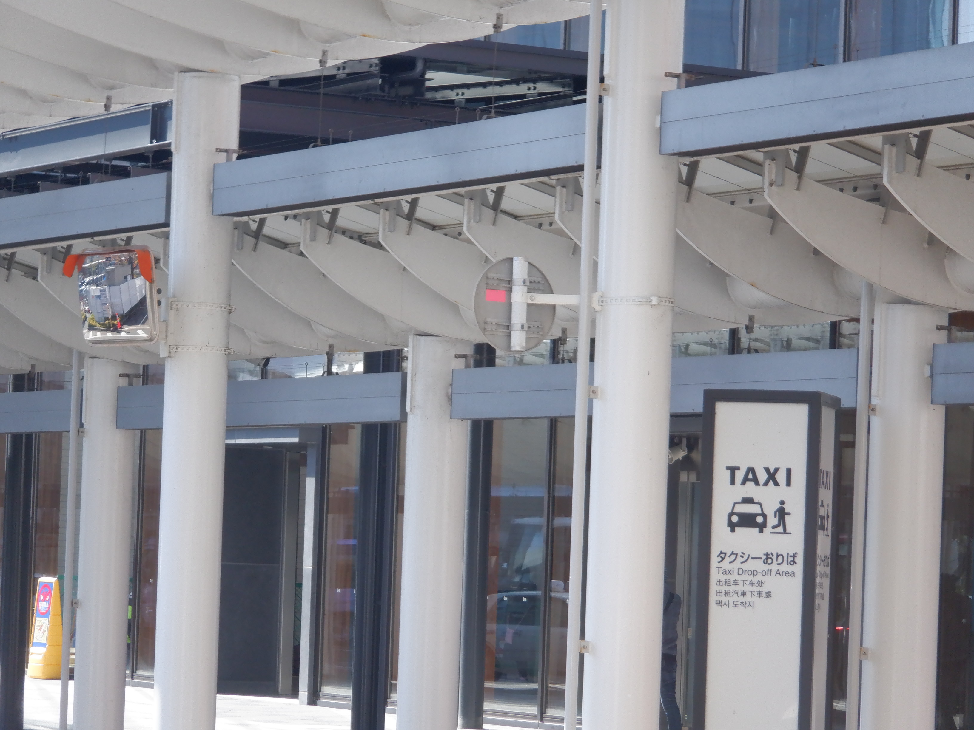 東口駅前広場からタクシーのりばへ入ってくるところのミラー。