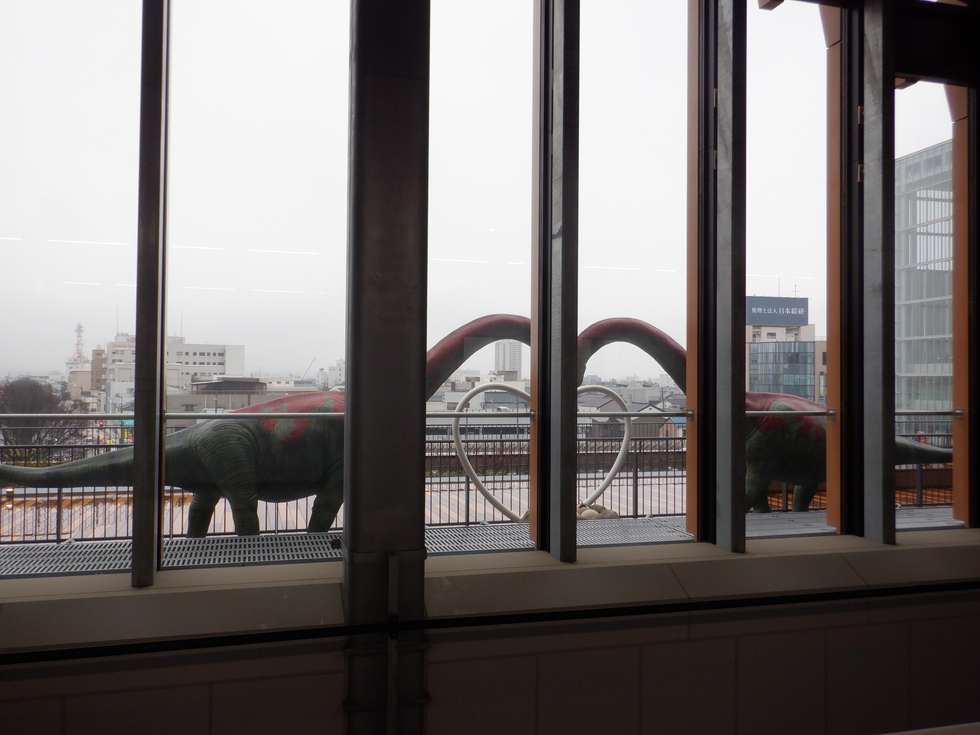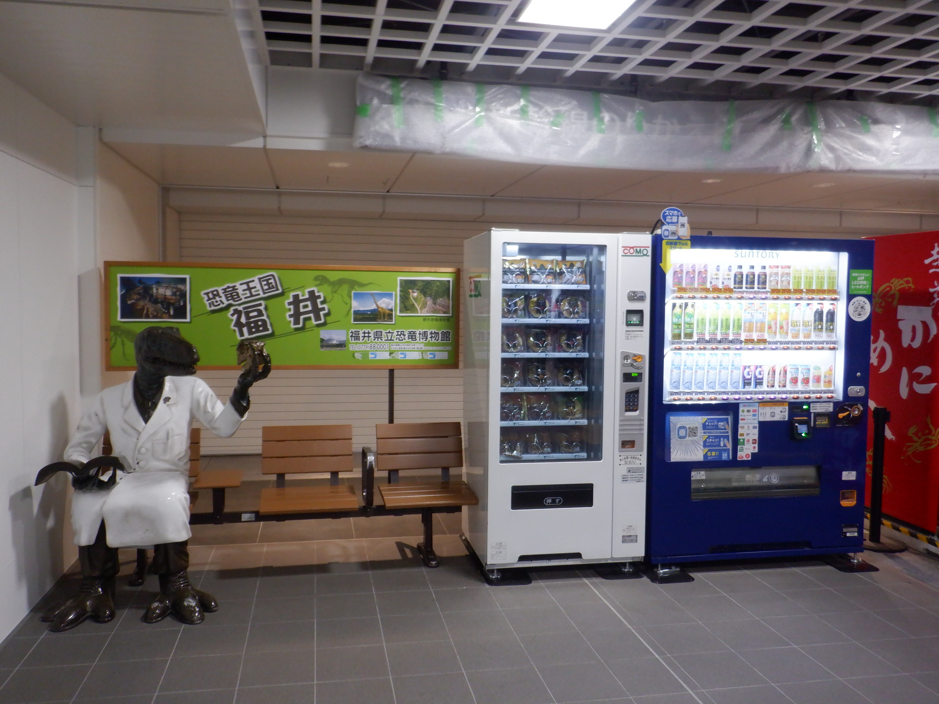 東口の恐竜設備工事中のところ。