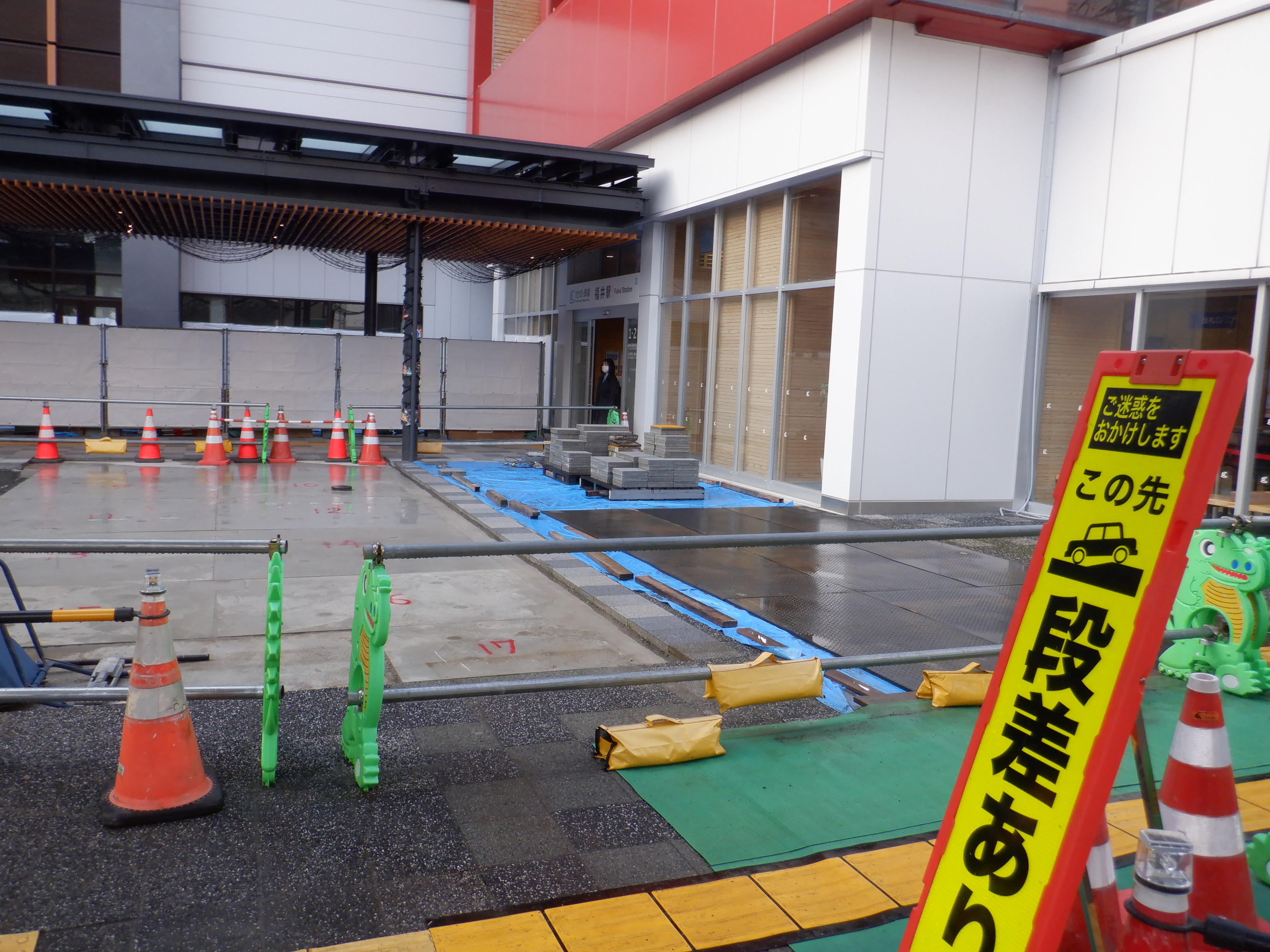 改札口付近から見たえちぜん鉄道福井駅との間の工事中のところ。