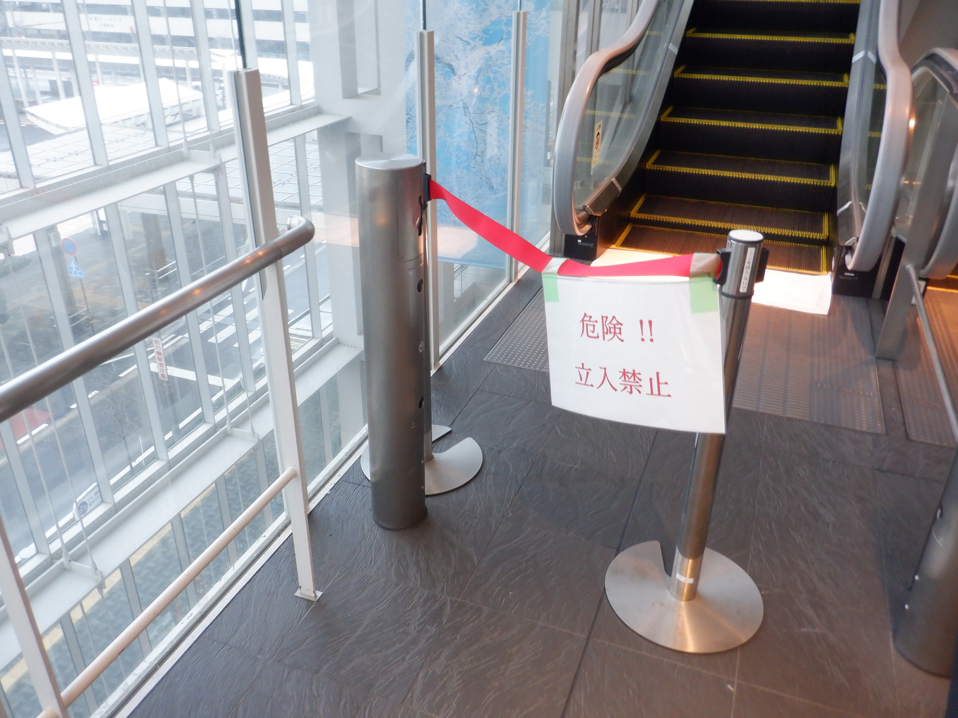 能登半島地震の影響により、アオッサのエスカレーターが故障し、エスカレーターでは3階までしか上がることができなくなりました。