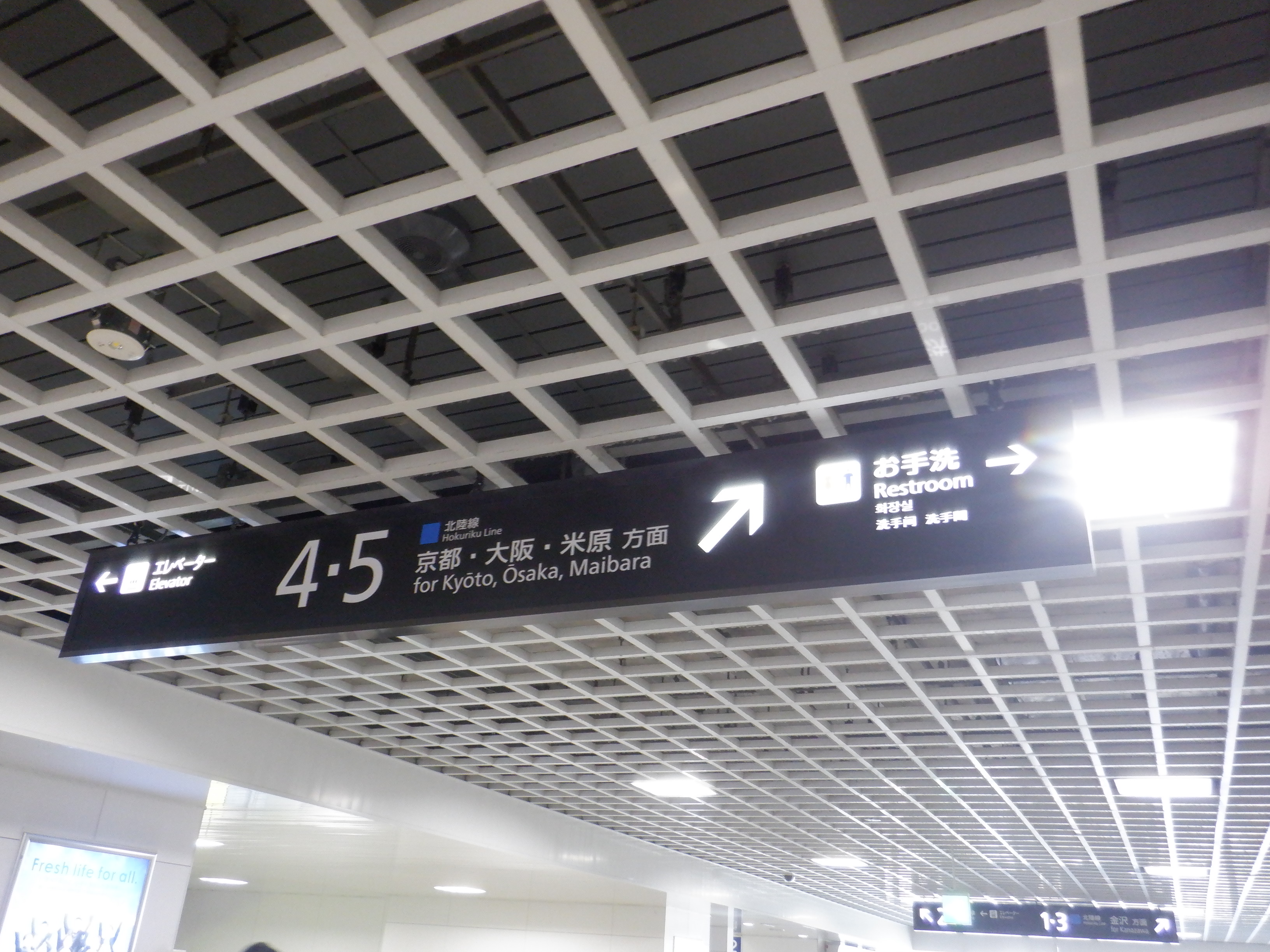 改札口から入ったところの看板も「北陸線」の文字が消されています。