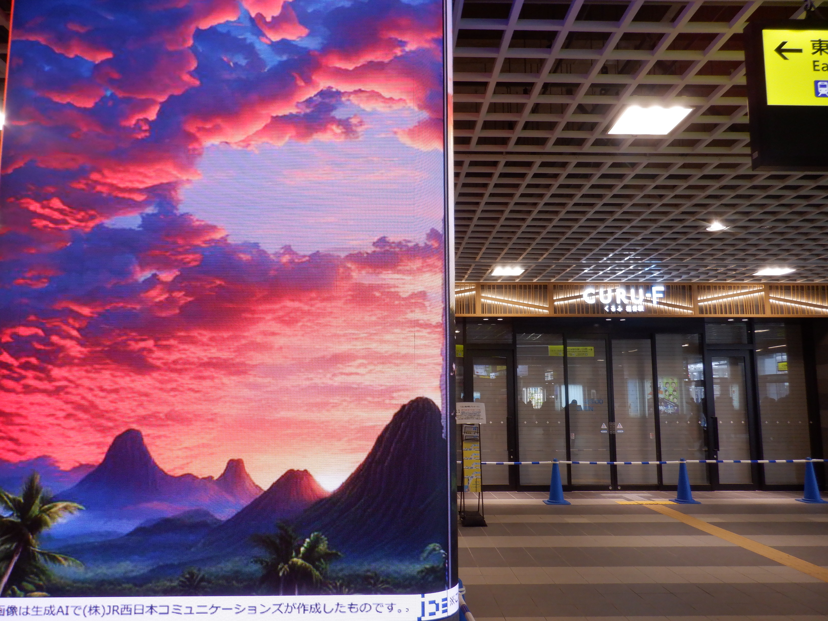 コンコースの大型柱巻LEDビジョンが稼働していました。
