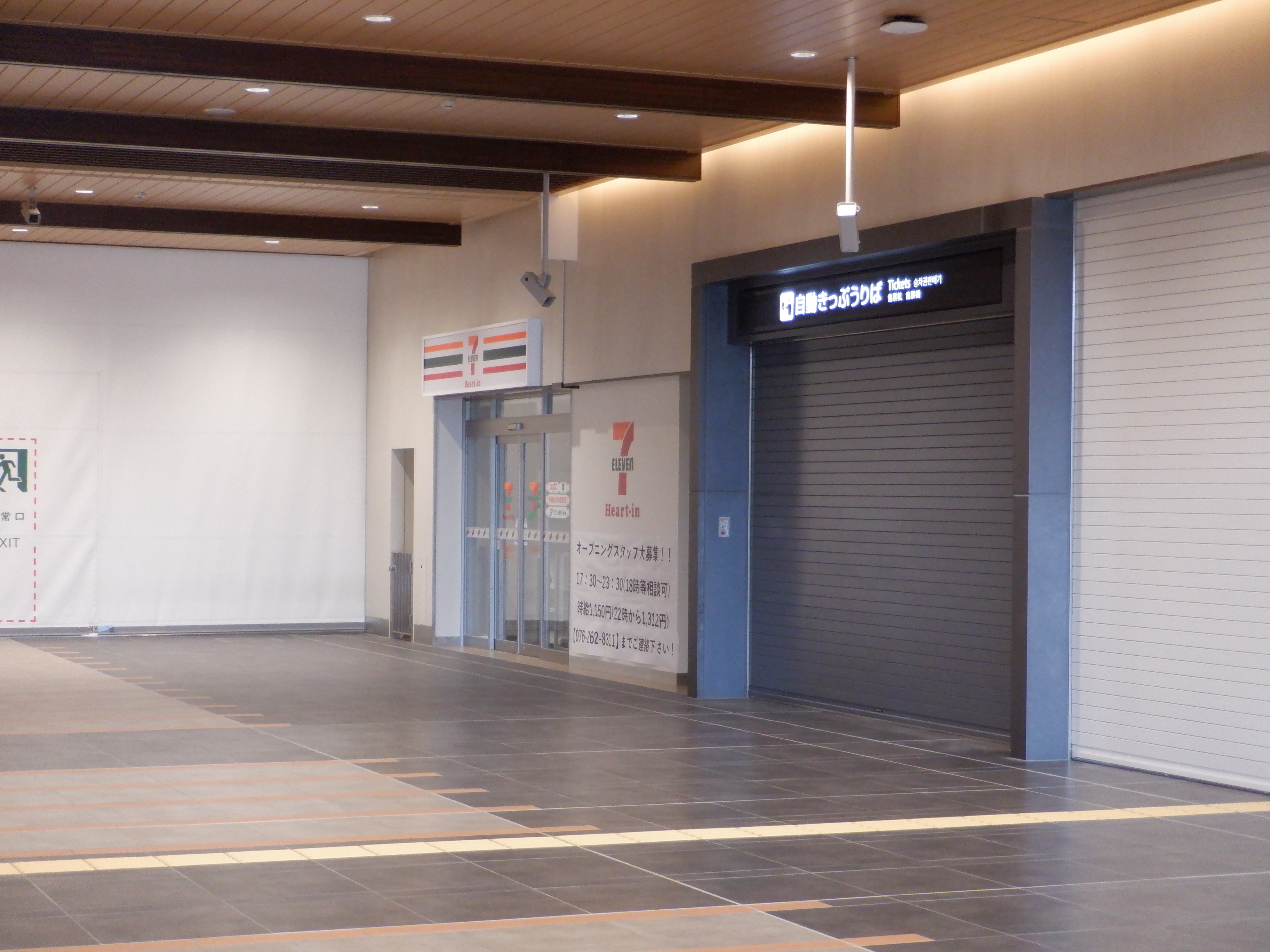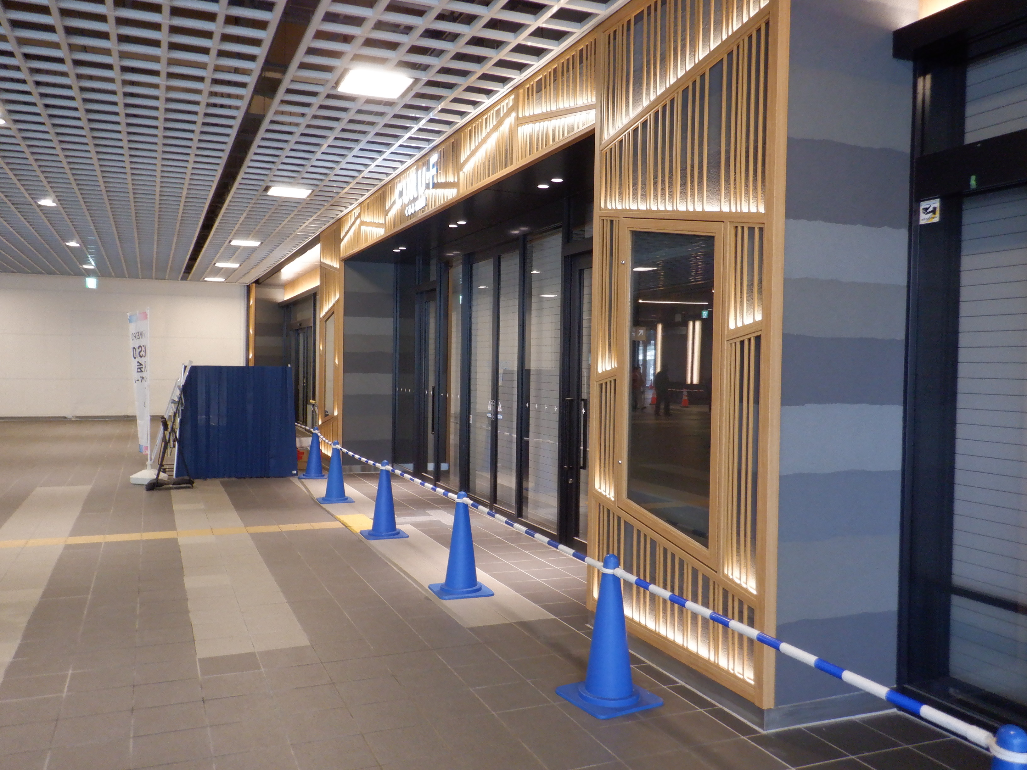 新幹線コンコースとなるところ。コンビニの看板ができていました。