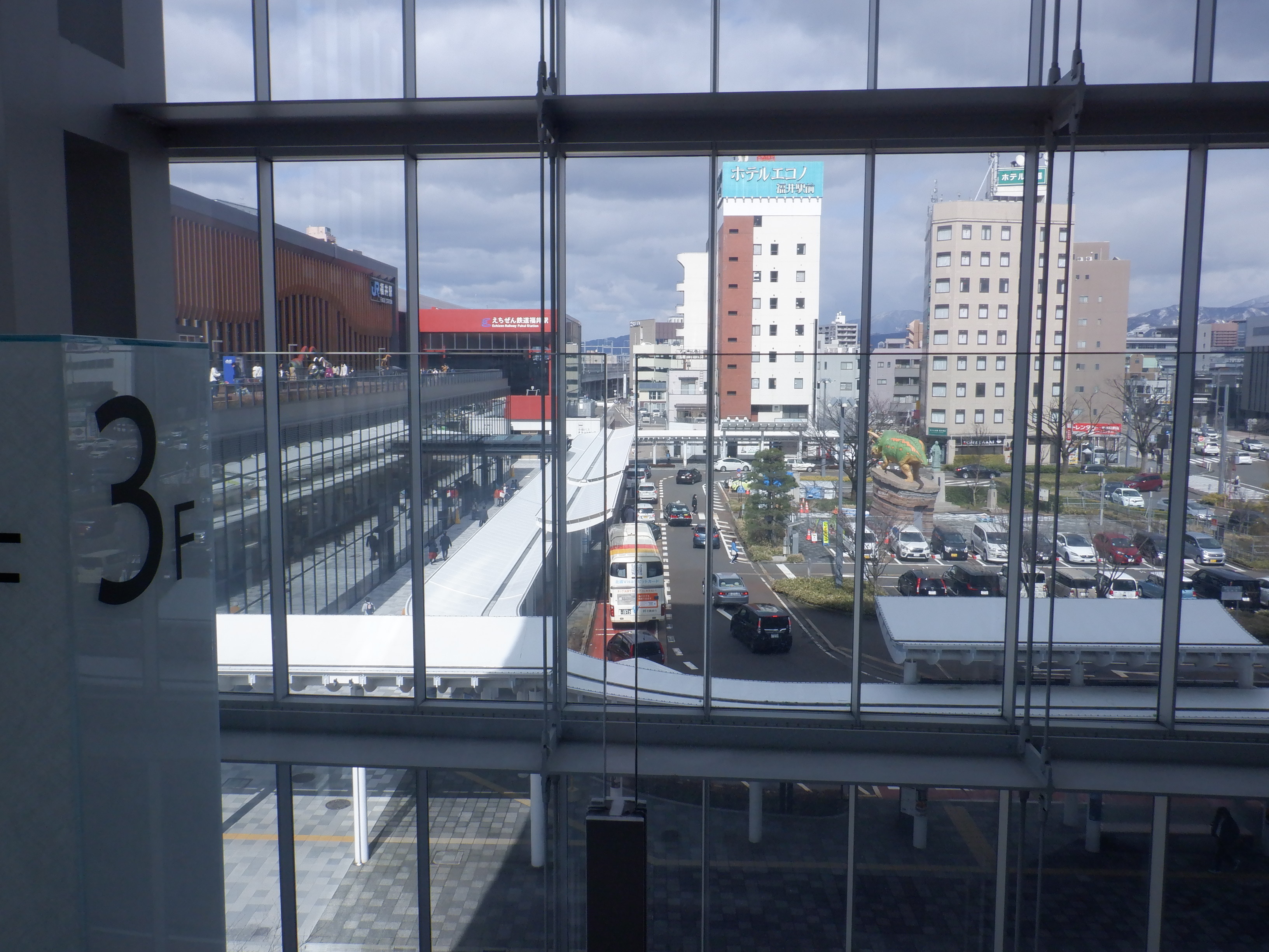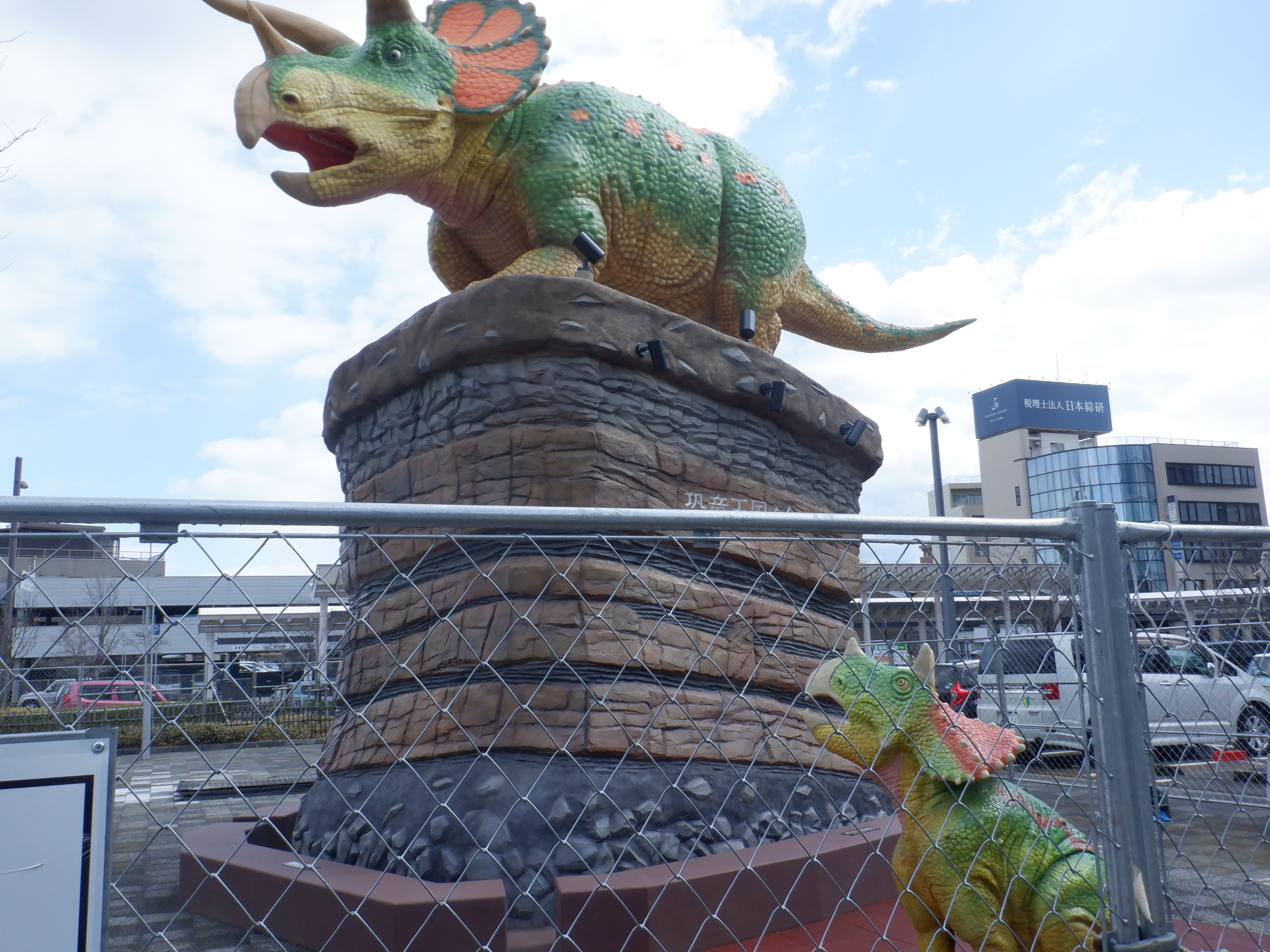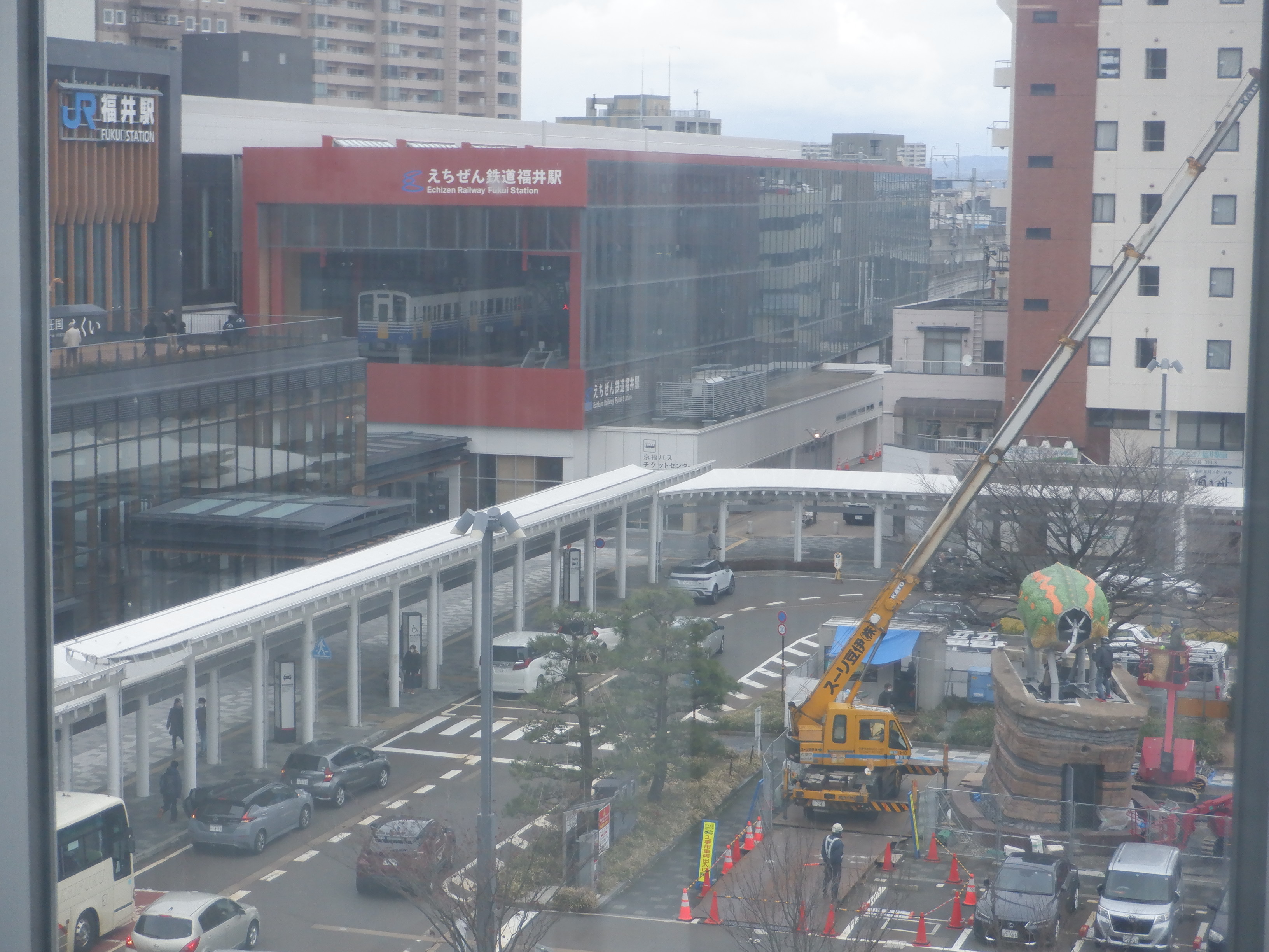 開業約1週間前になりました。東西の恐竜は間に合ったようです。くるふ福井駅も開業準備が進んでいるように見えます。