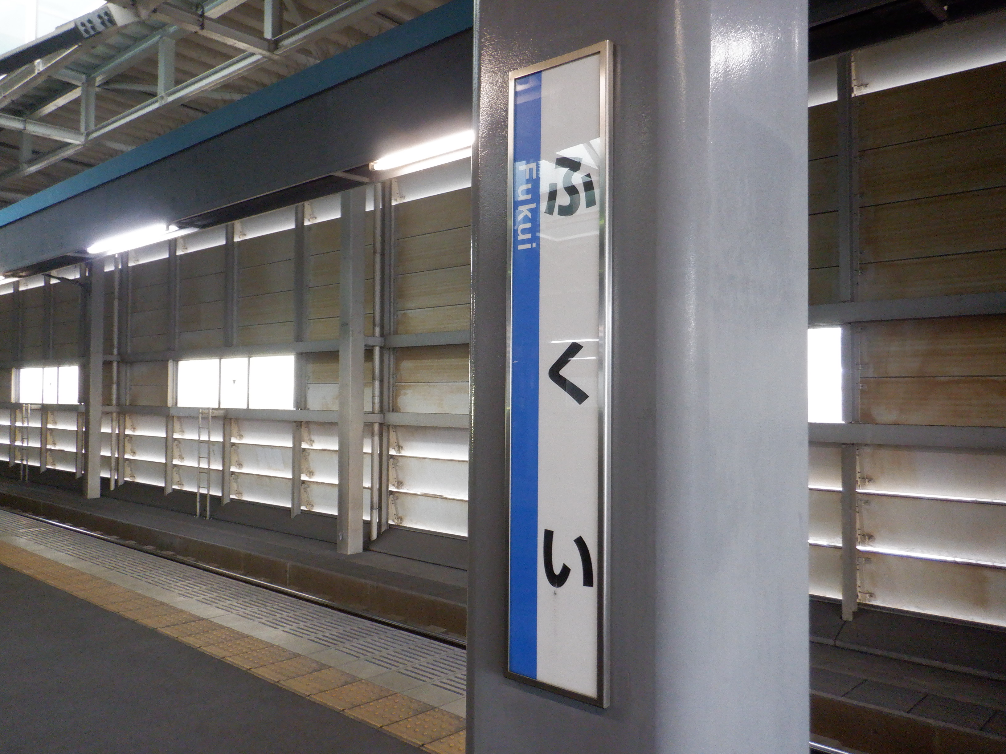 駅名標の様子。ハピラインふくいの駅名標の上にJRの駅名標が貼られているようです。