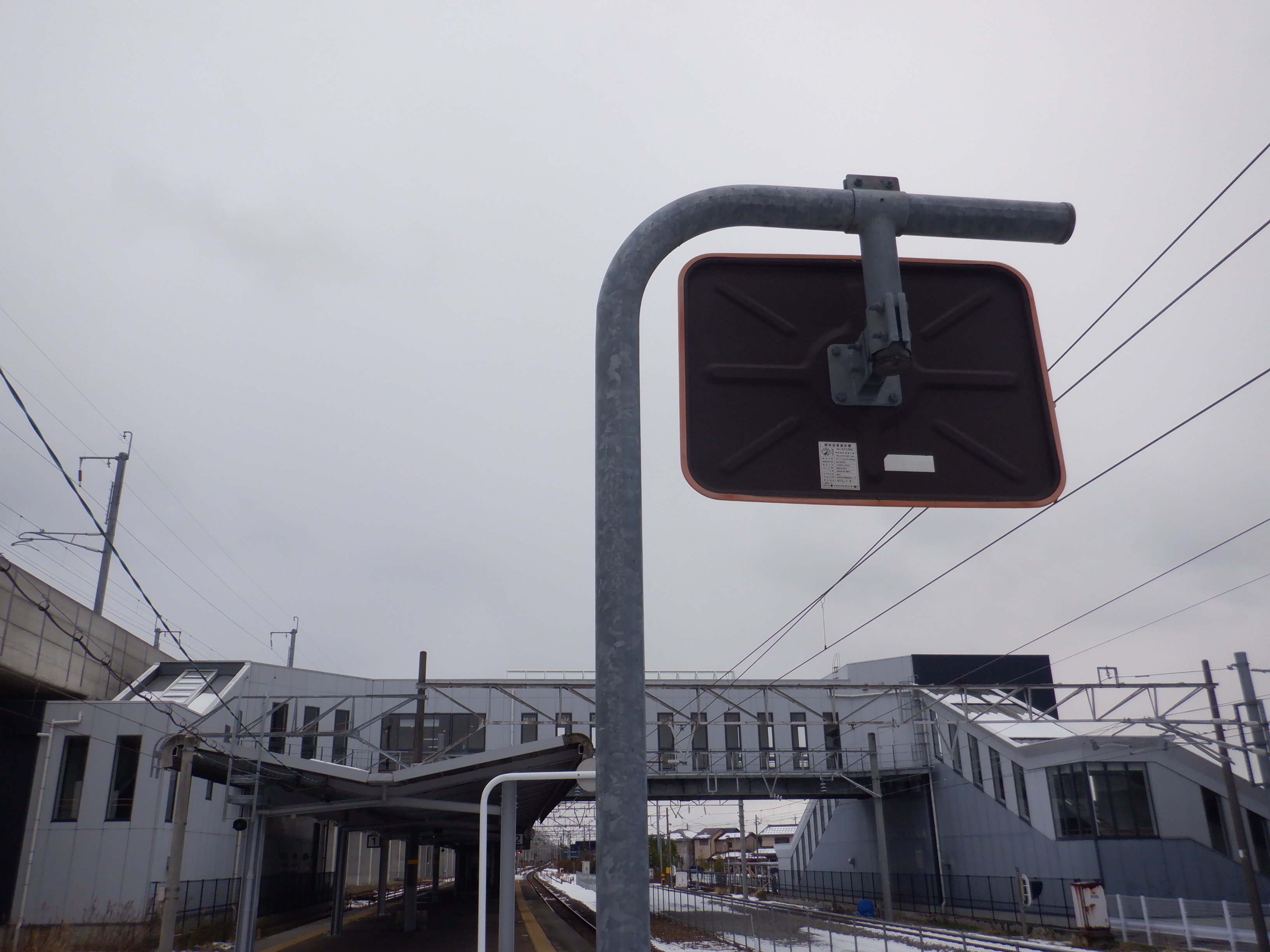 2番のりば金沢方面にある(ワンマン列車には使用されない)ワンマンミラーとそこにある乗車位置案内の跡。