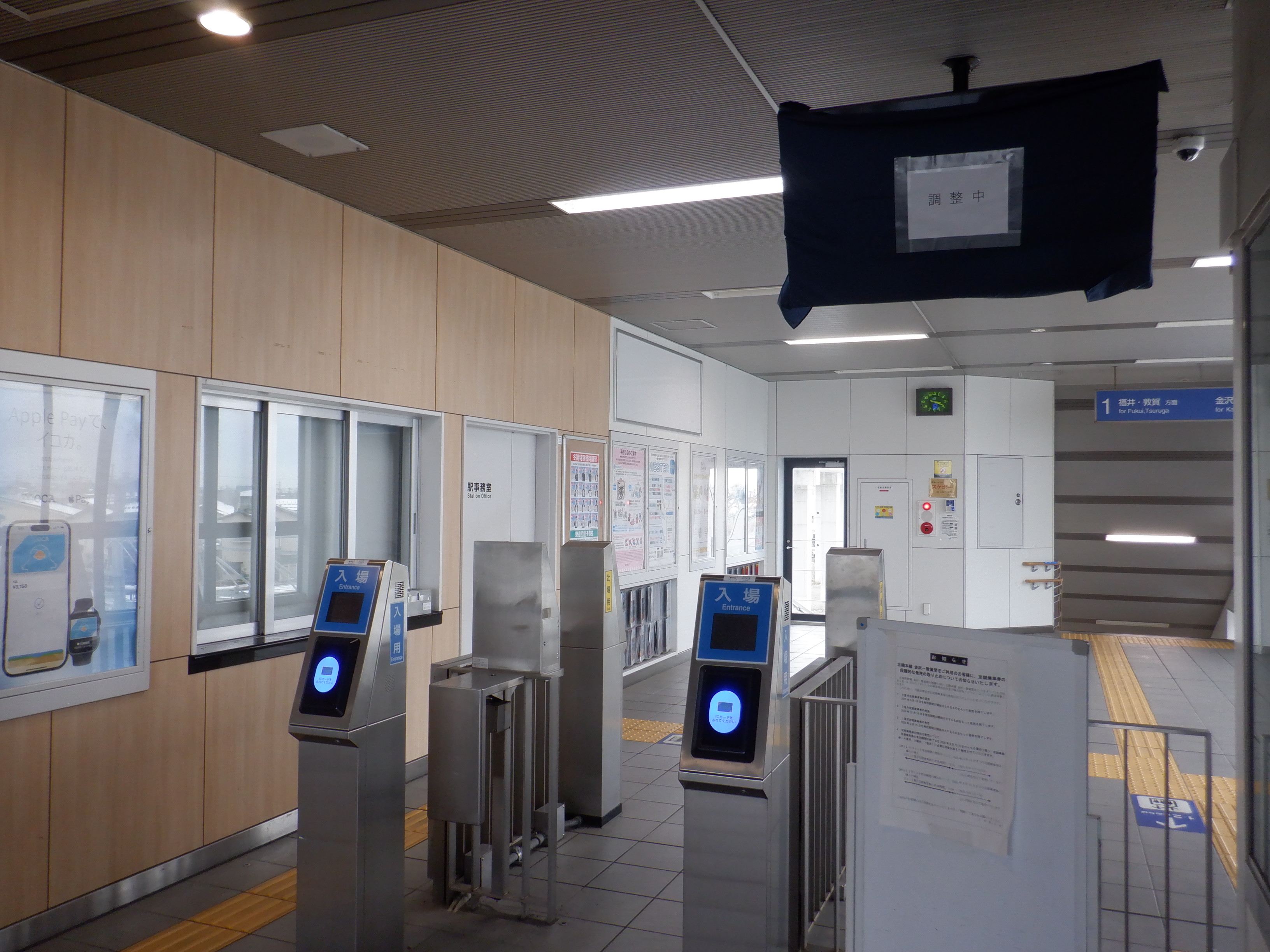 3月に入ってから、移管1週間前です。駅名標のロゴはシールで隠されています。また、階段付近の案内はこの時は気づかなかったのですが上からシールを貼っているようです。