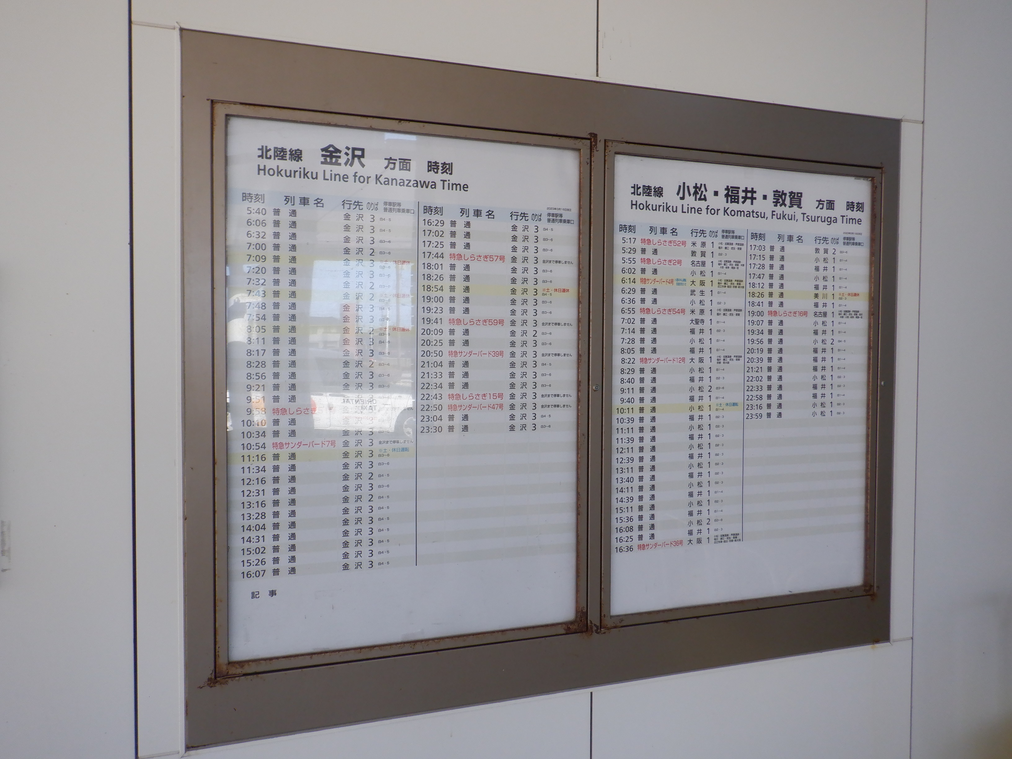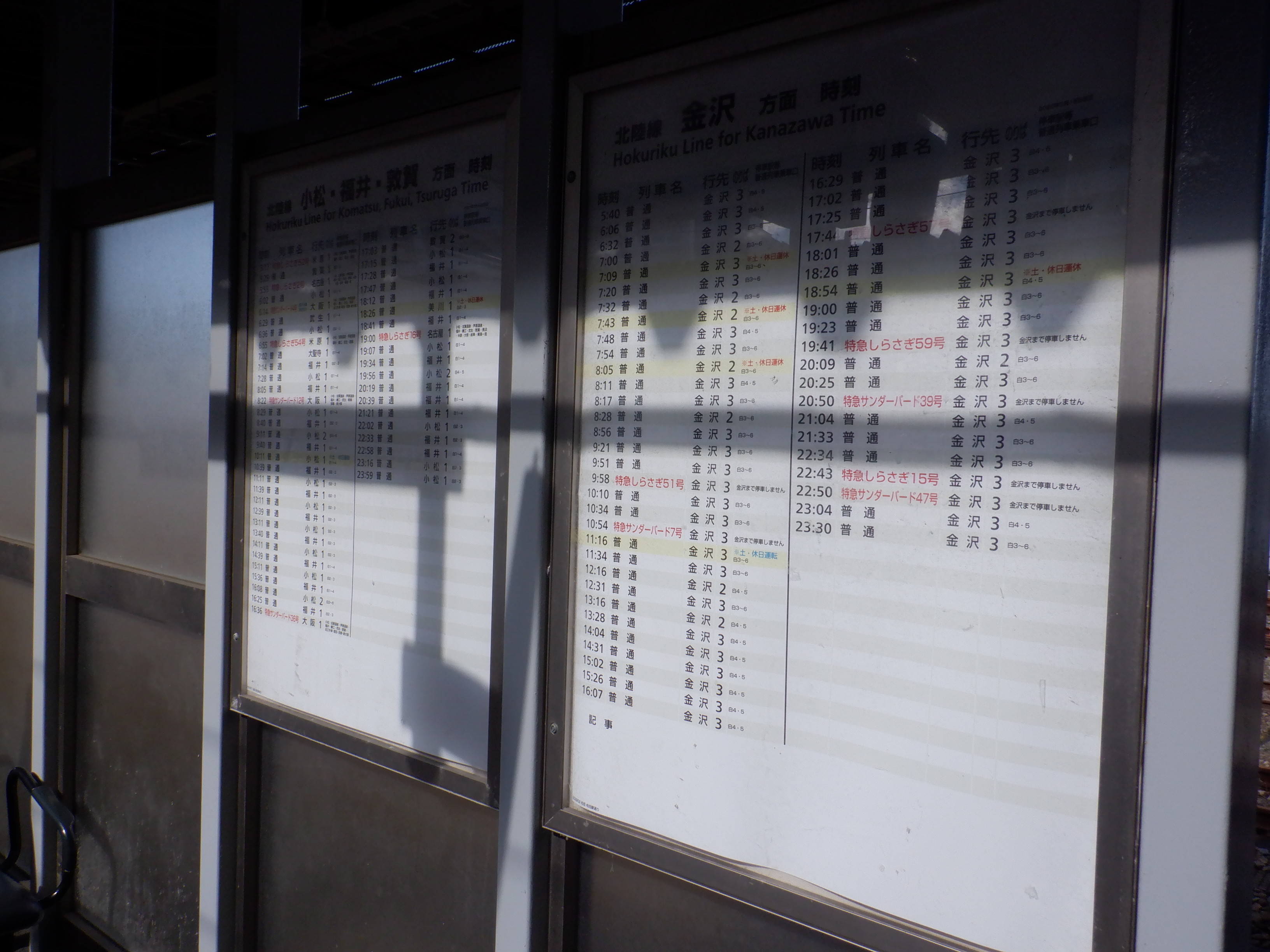 2・3番のりばの時刻表。