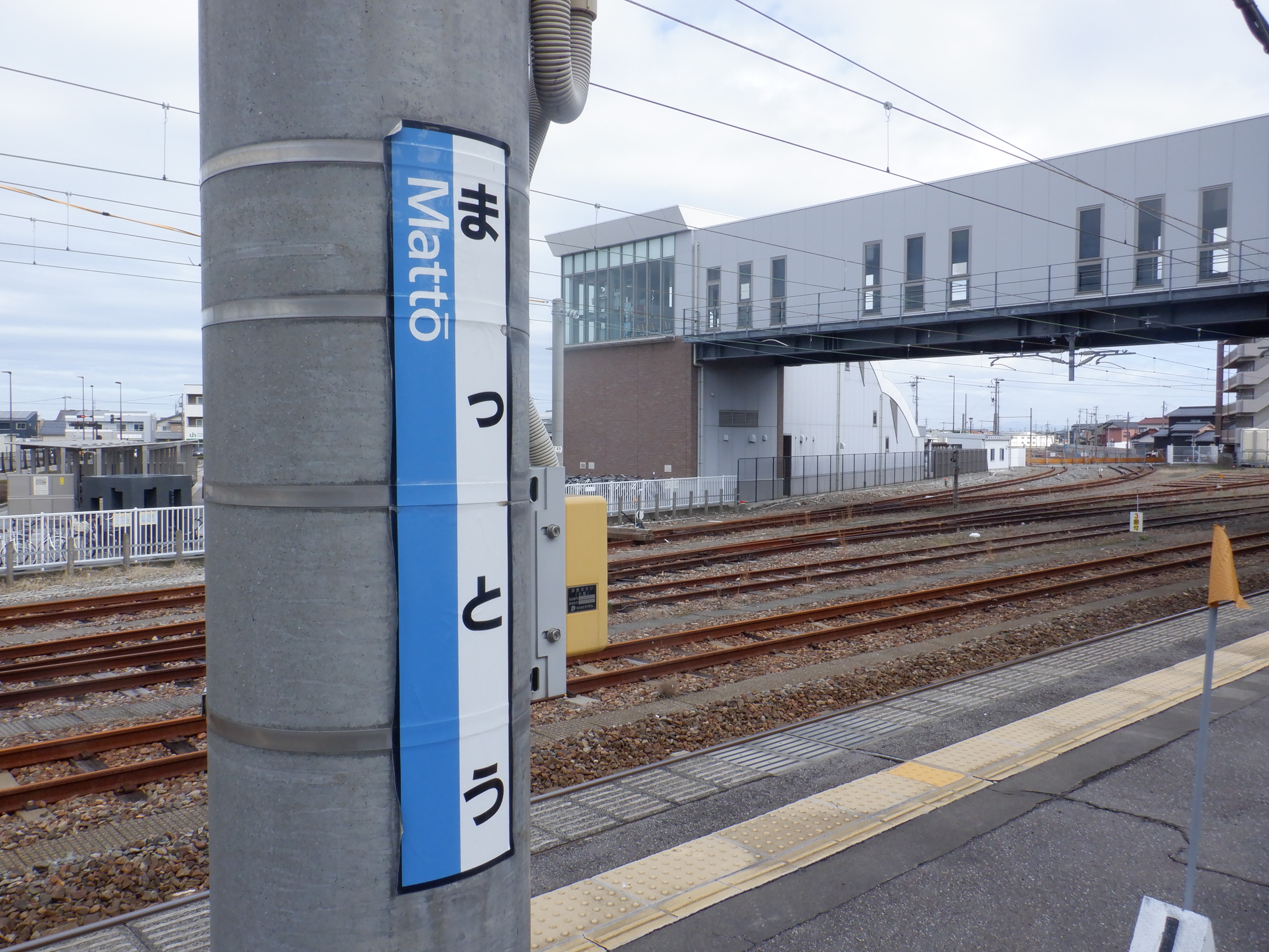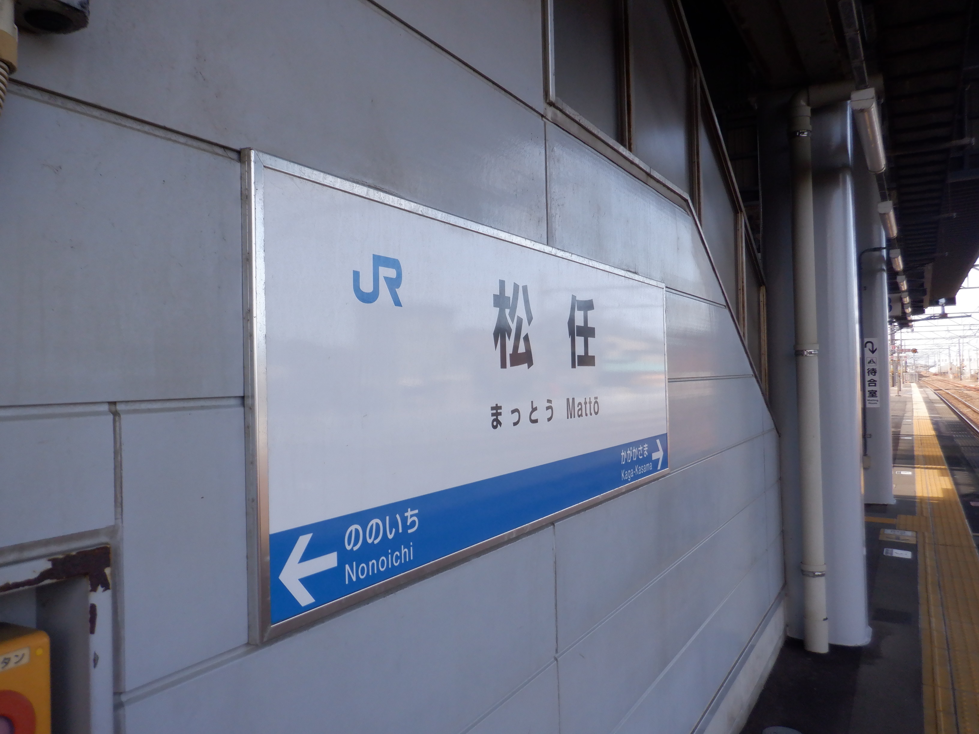 1番のりば野々市駅側の駅名標。