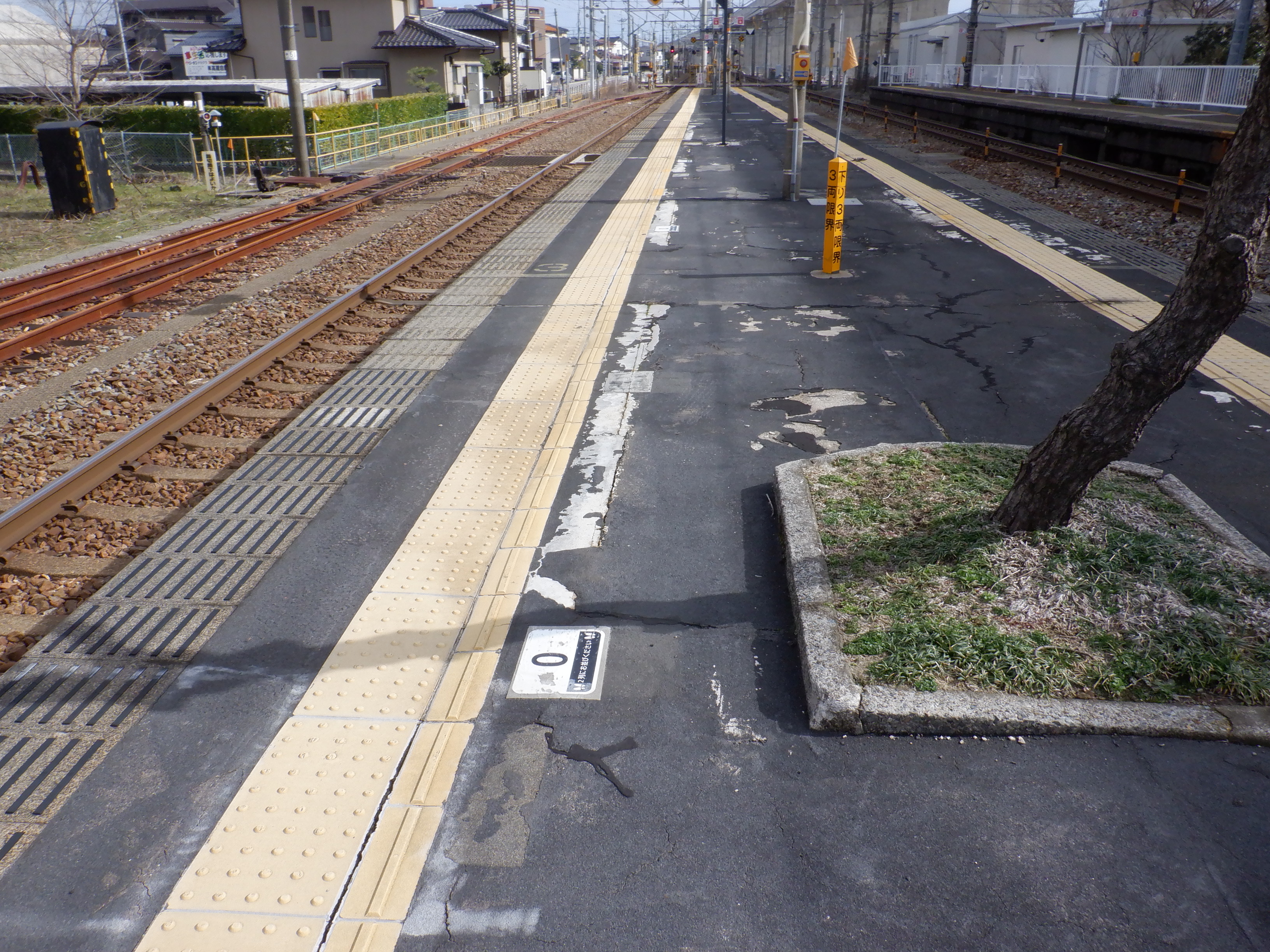 3番のりばは4両編成の最後尾が乗車位置案内6ですが、既になくなった6両編成の最後尾が乗車位置案内5のところになるようです。そのため、乗車位置案内0は6両編成の最前部として必要だったようです。