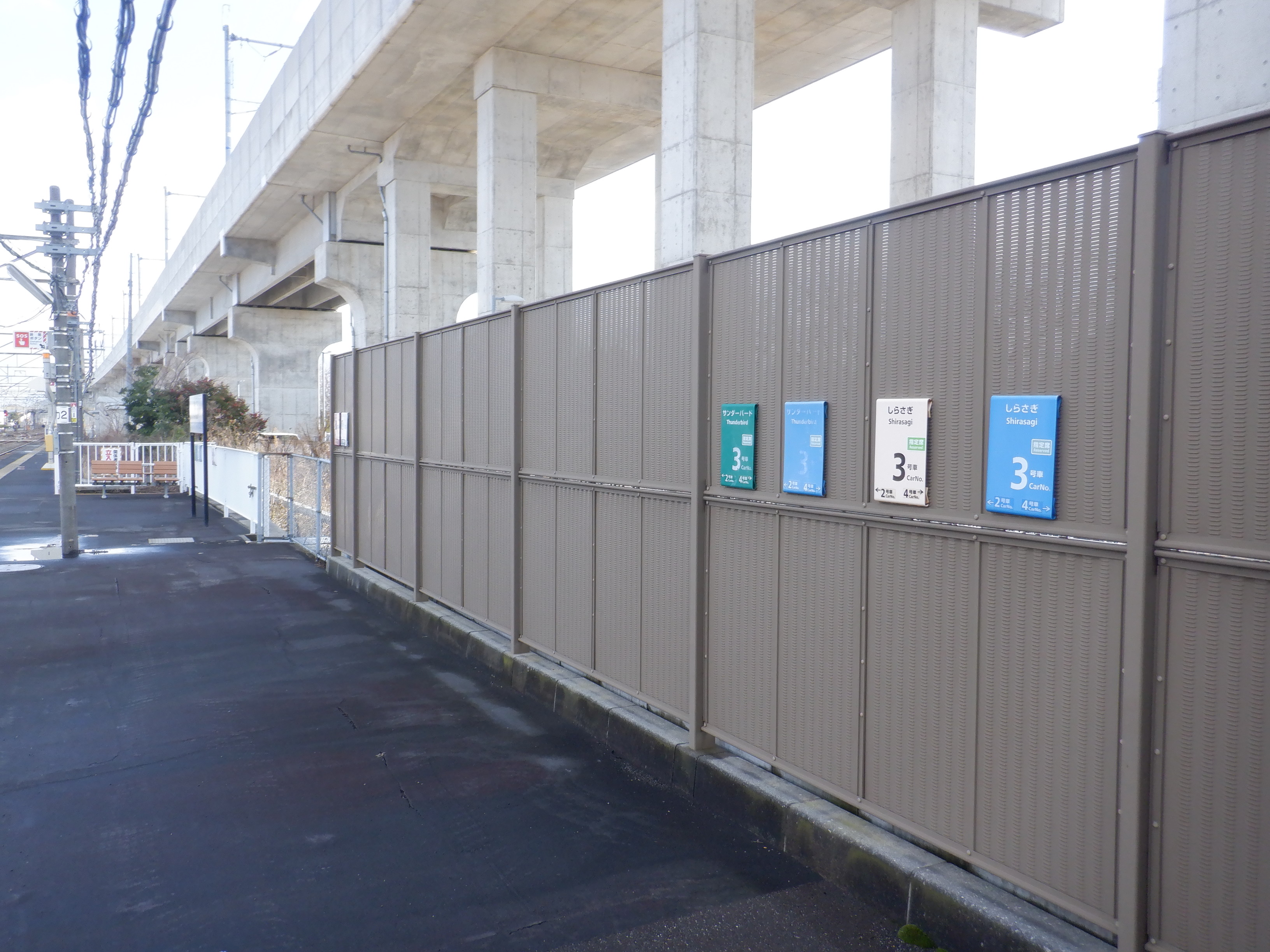 待合室近くの特急列車の乗車位置案内。