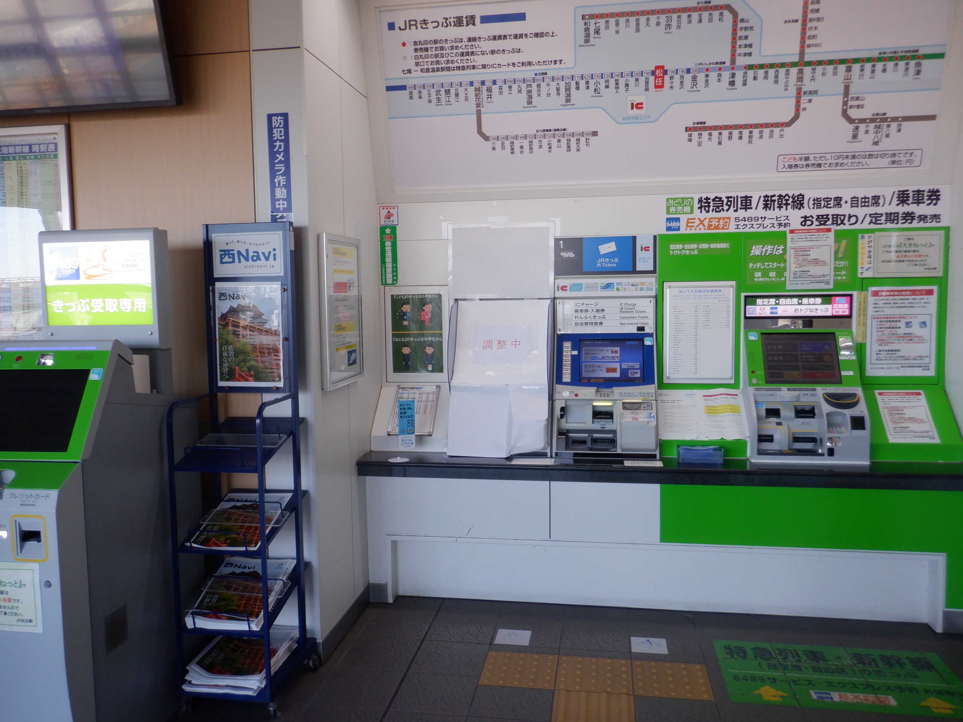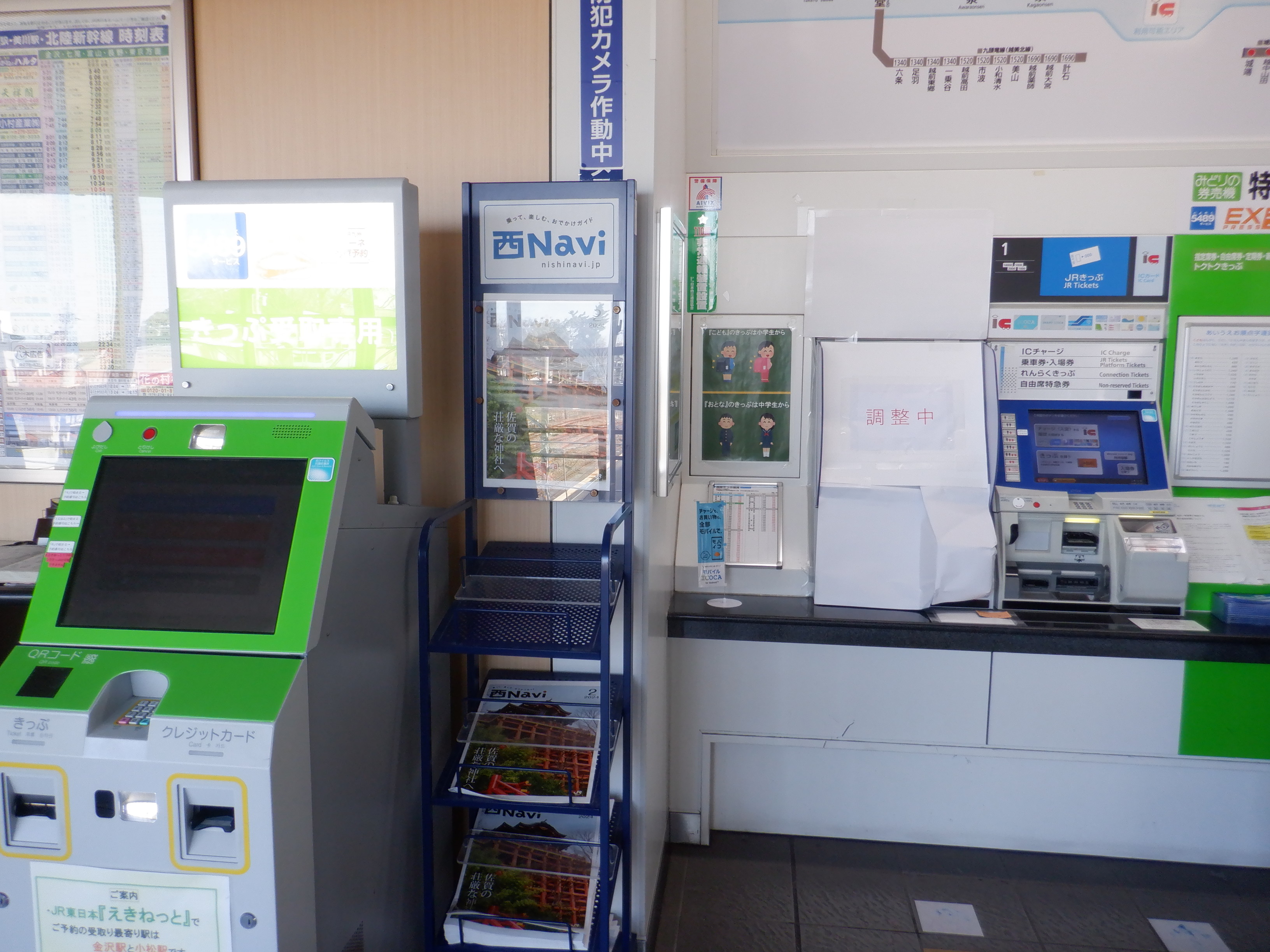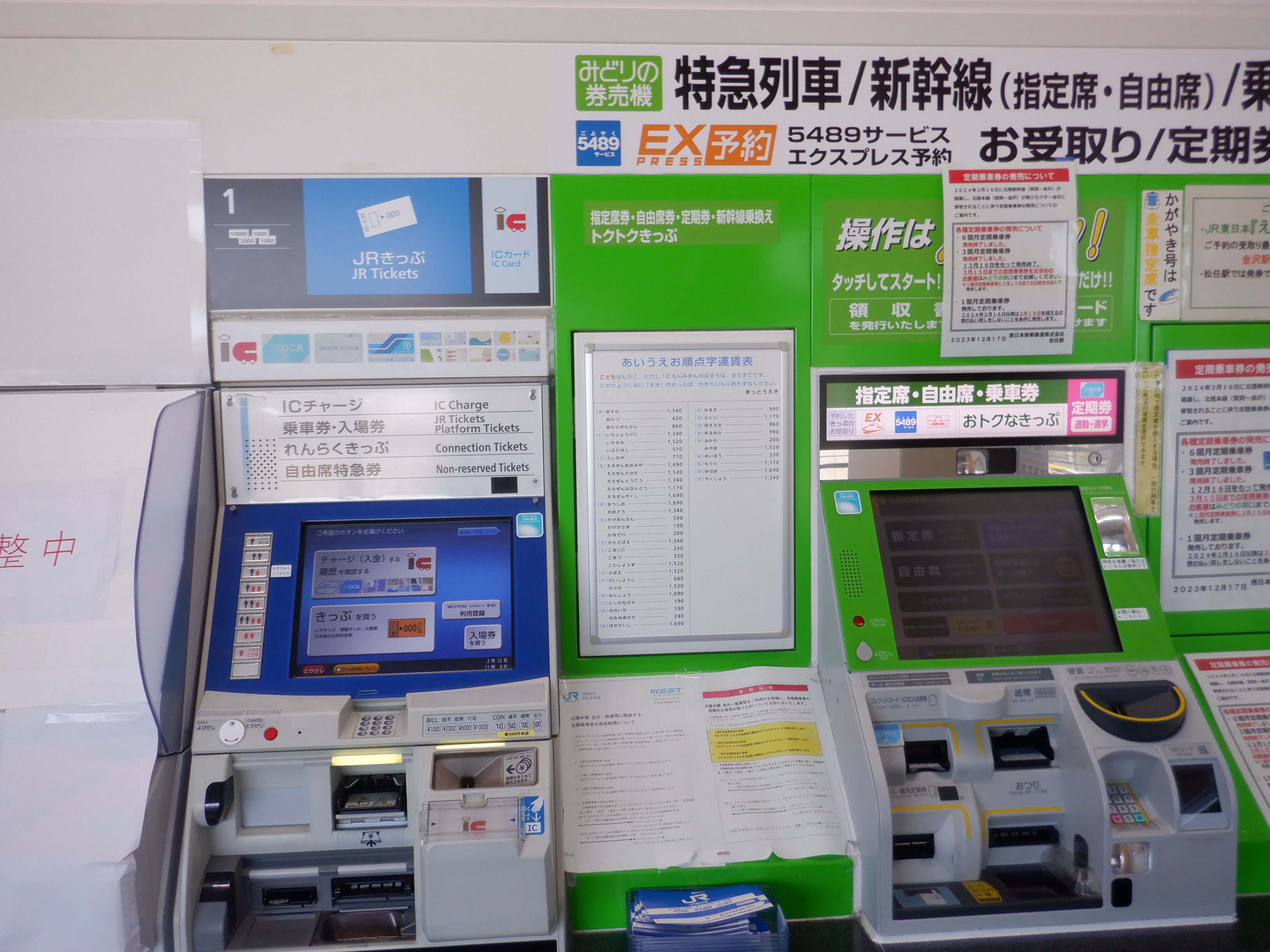 券売機と受取機。近距離券売機の内1台が使用中止になっていました。