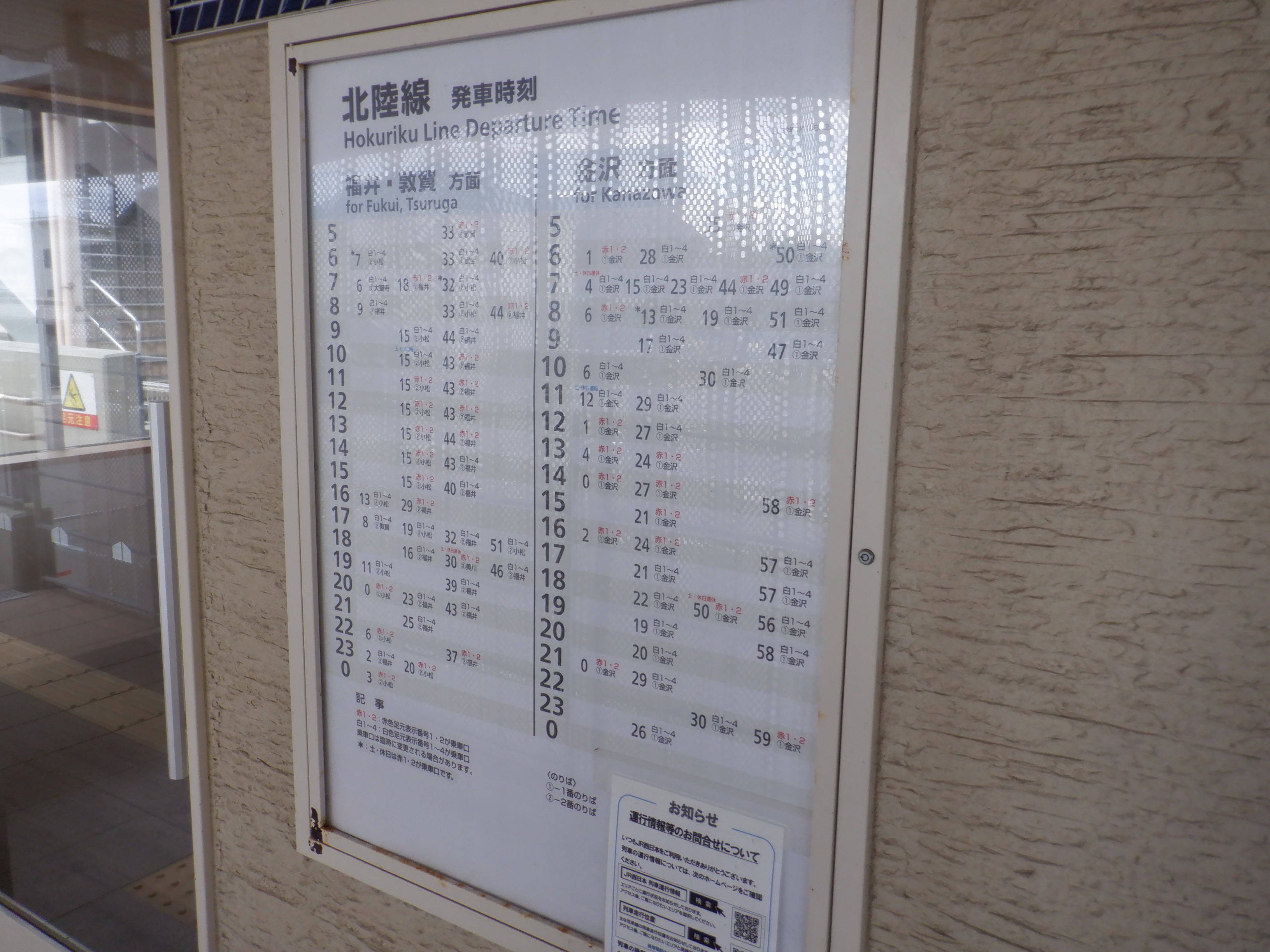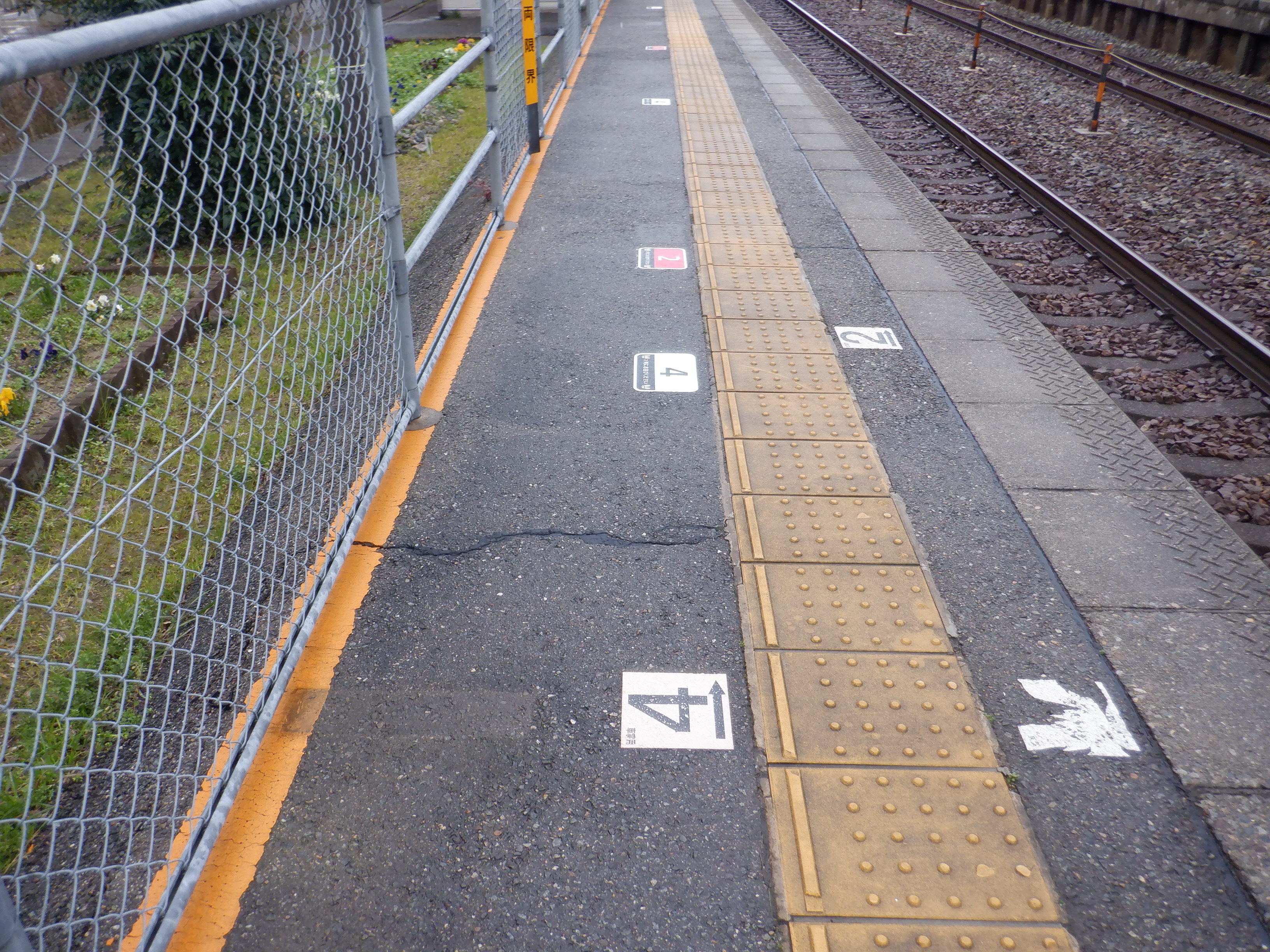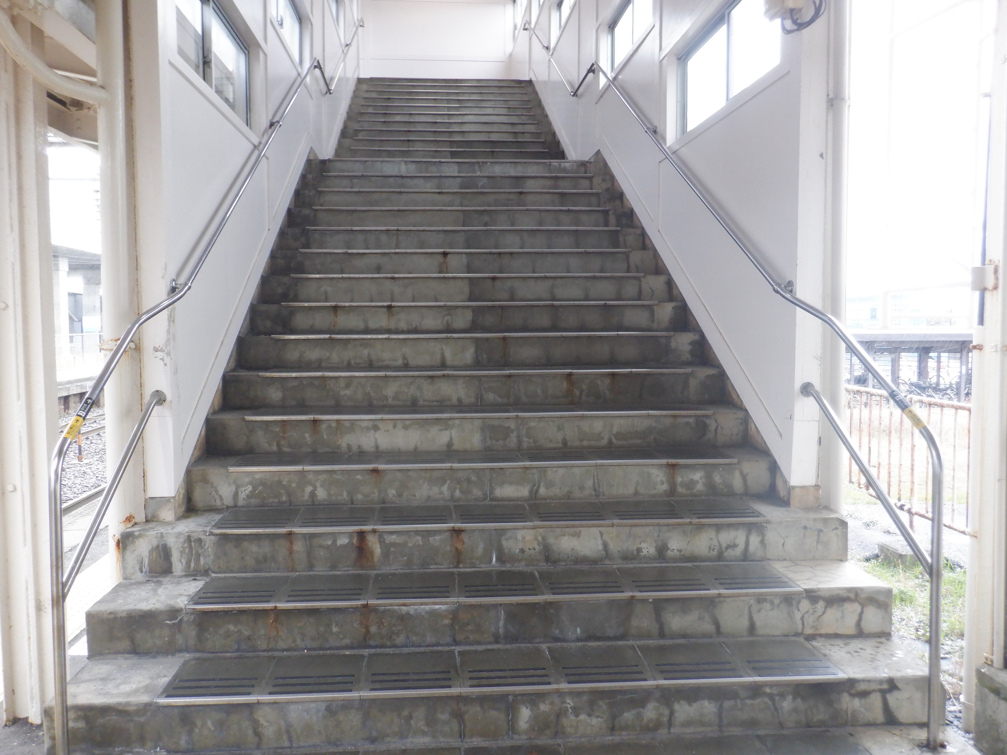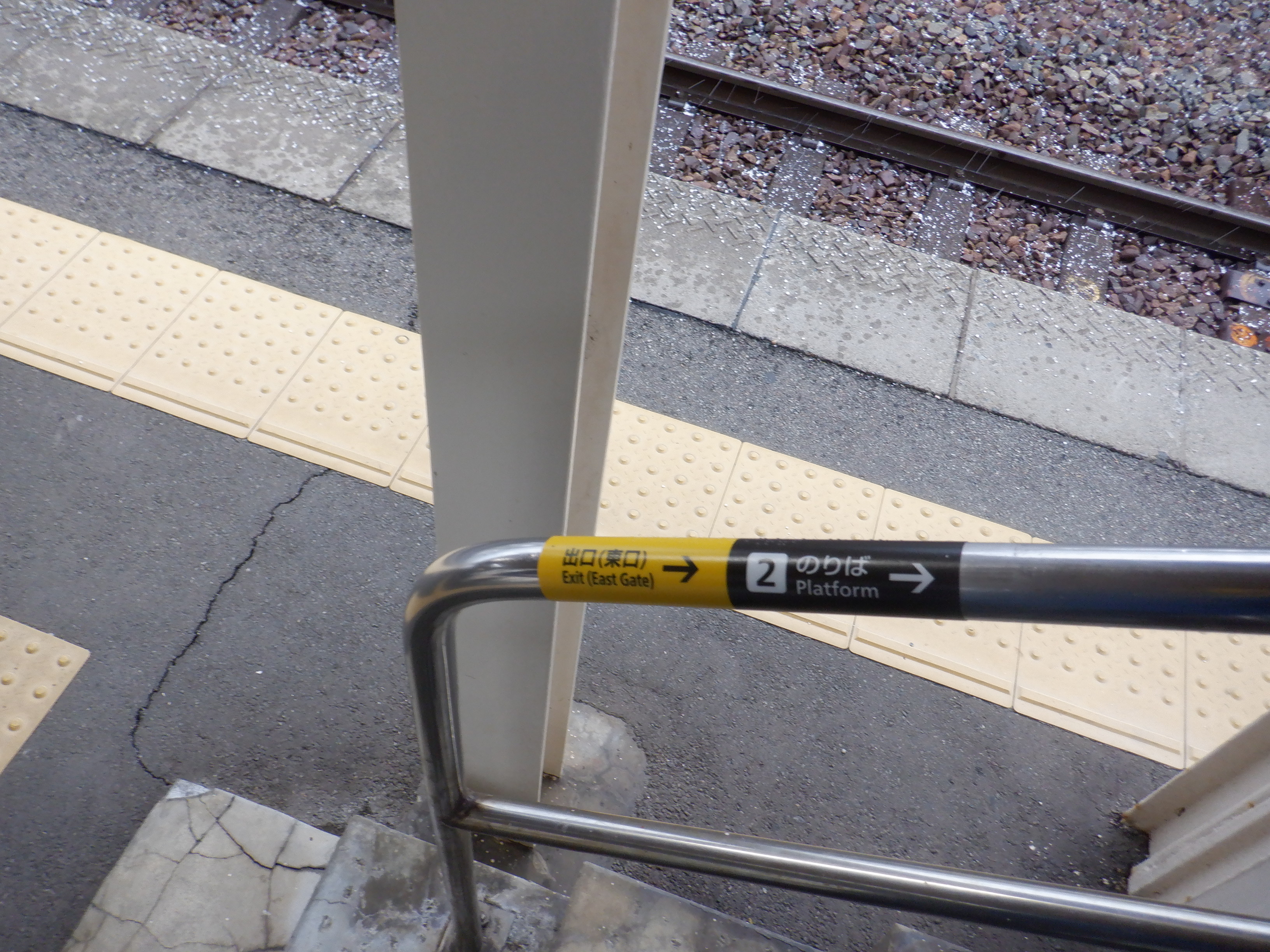 写真に撮ったのは1月以来なのですが、おそらくこの直近で跨線橋の手すりの案内が更新されました。