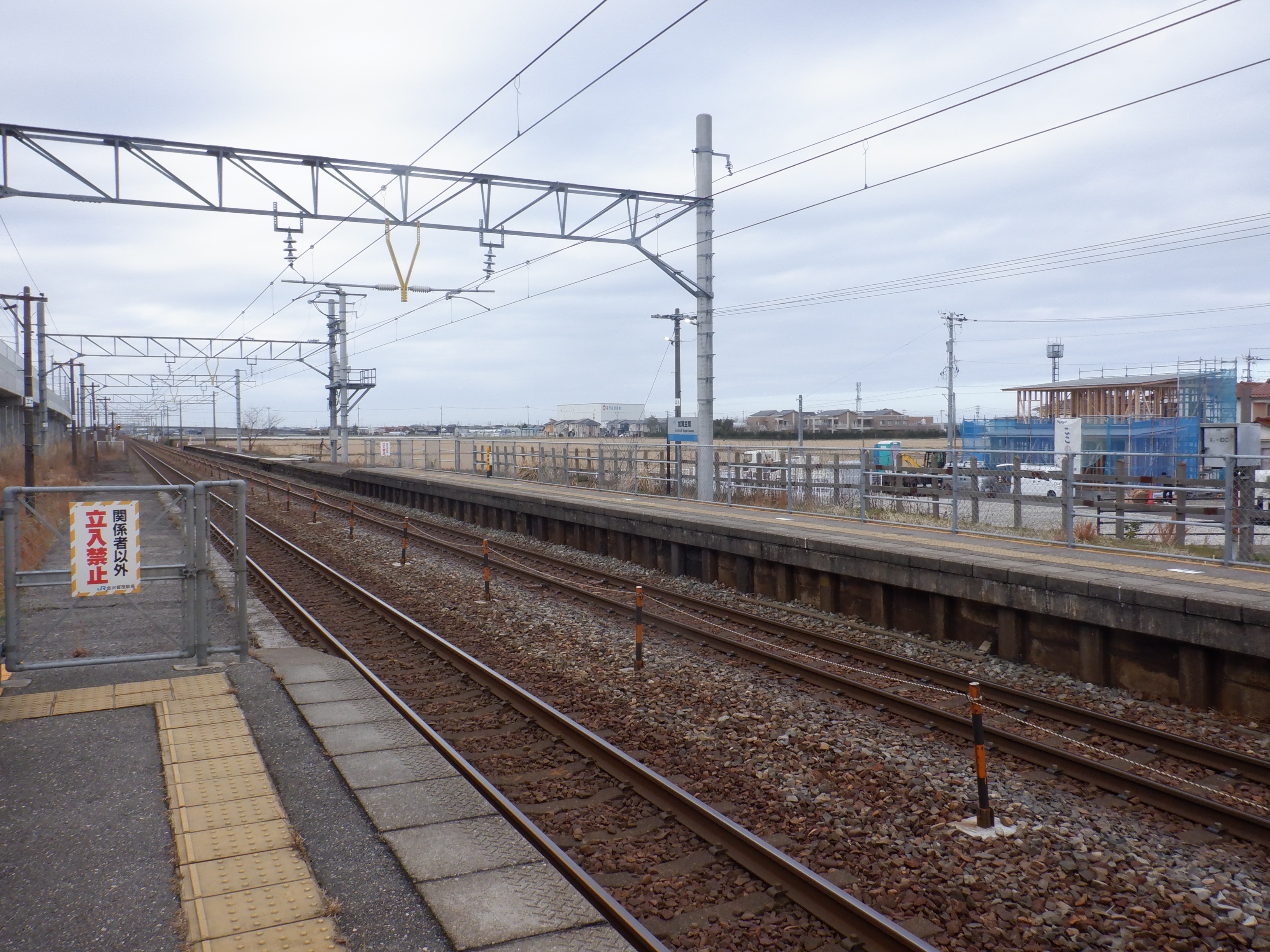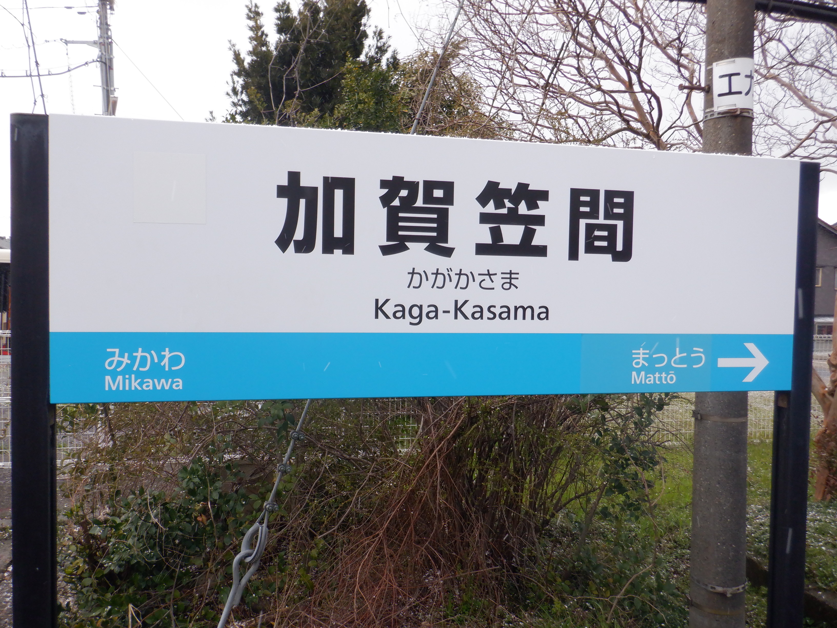 改札口付近の架線柱には「カマコ」の表示がされていますが、多くの架線柱には表示されていません。