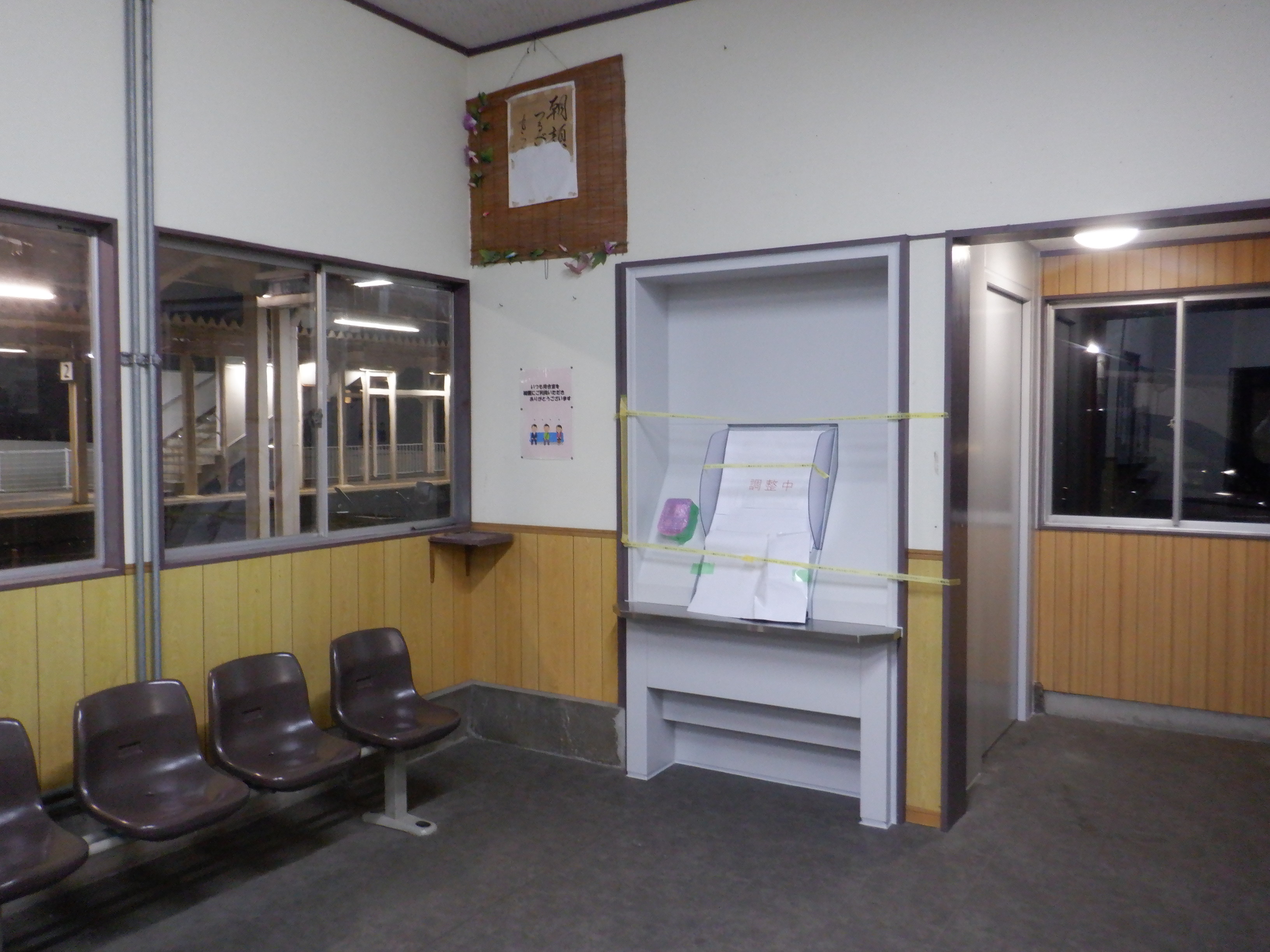待合室の奥に新しい券売機が小部屋とともに、既に設置がされていました。
