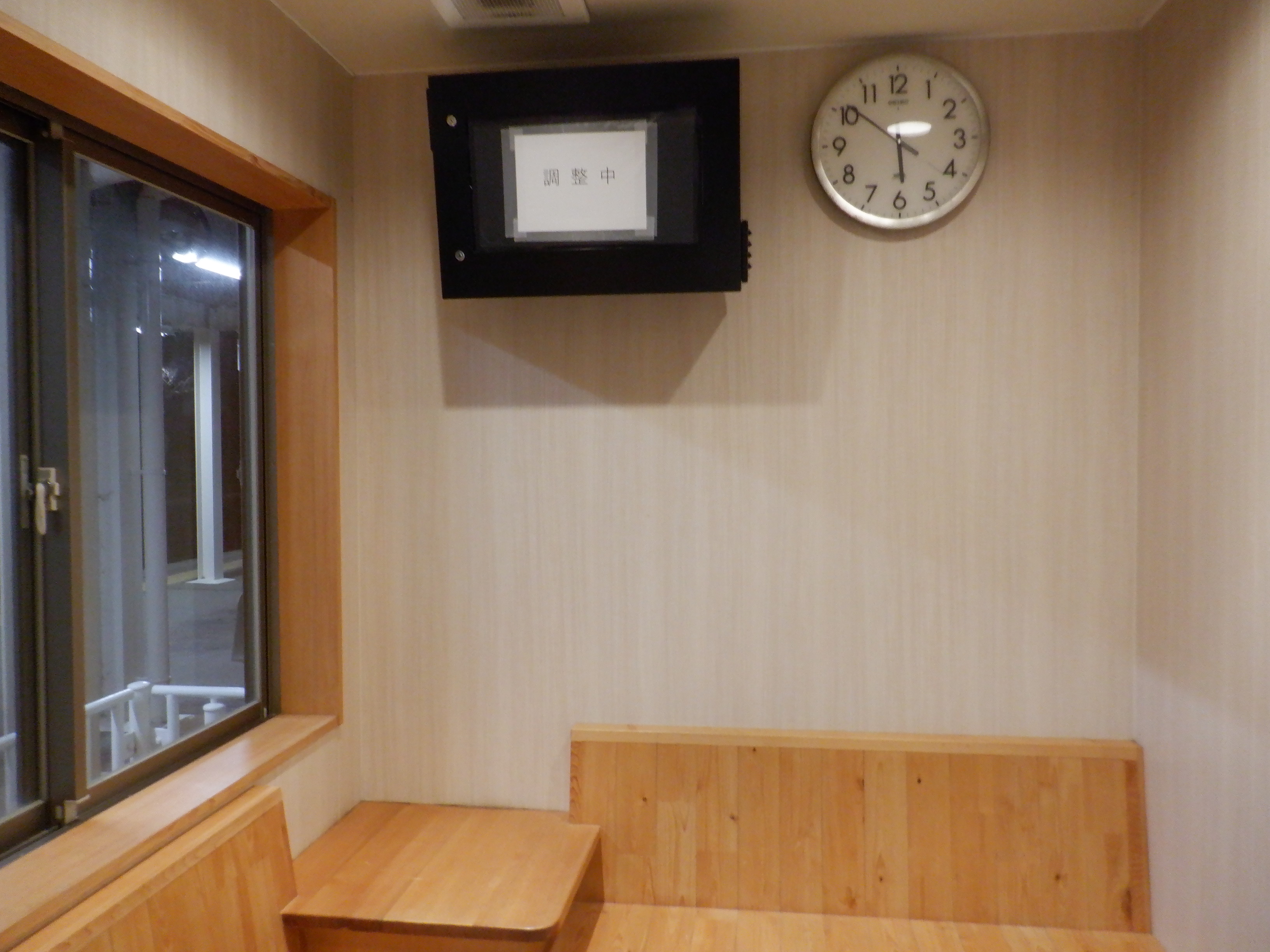 前回から1ヶ月弱ですが、新しい券売機が小部屋を伴って設置されていました。また、モニターも設置されていました。