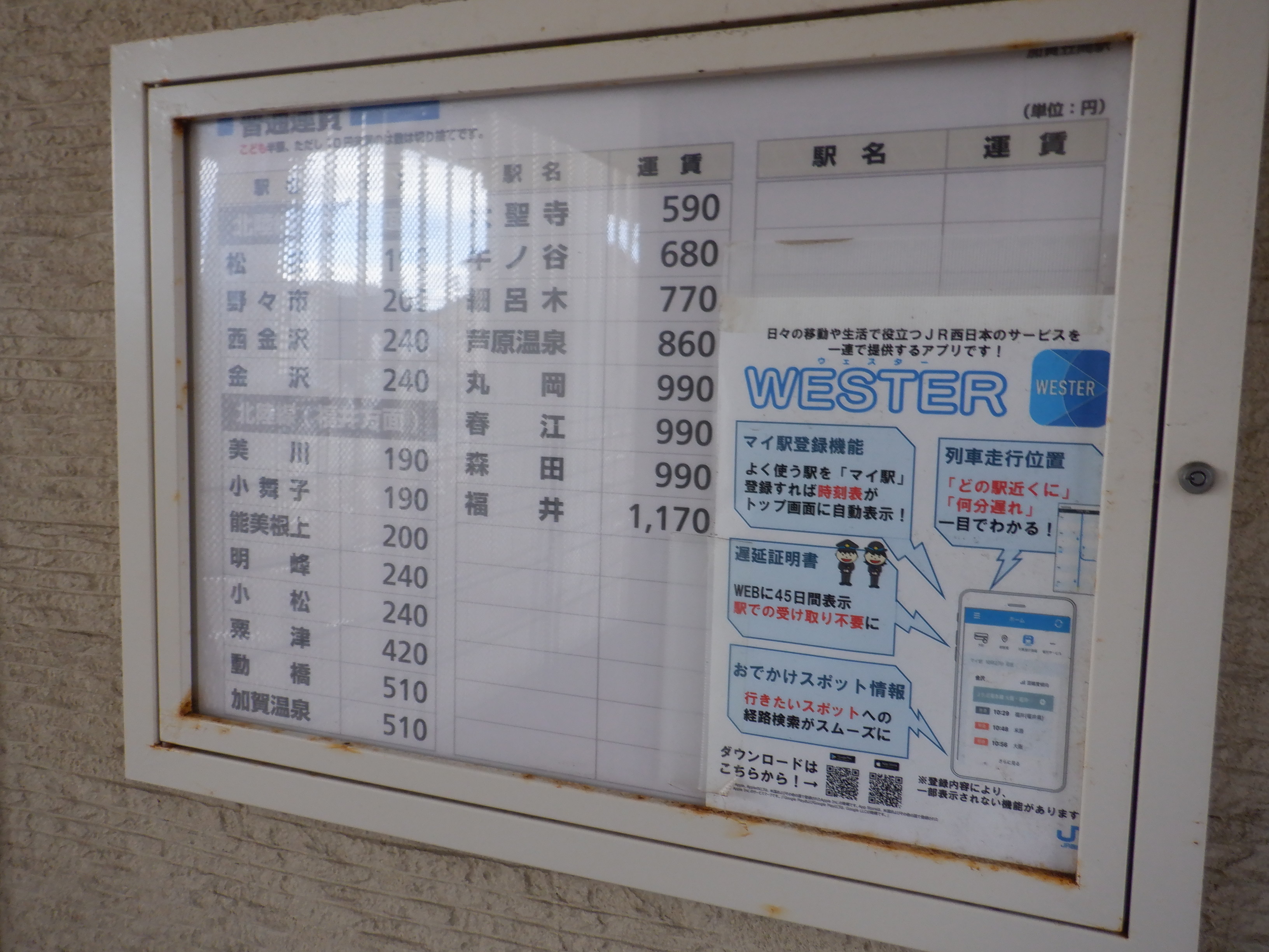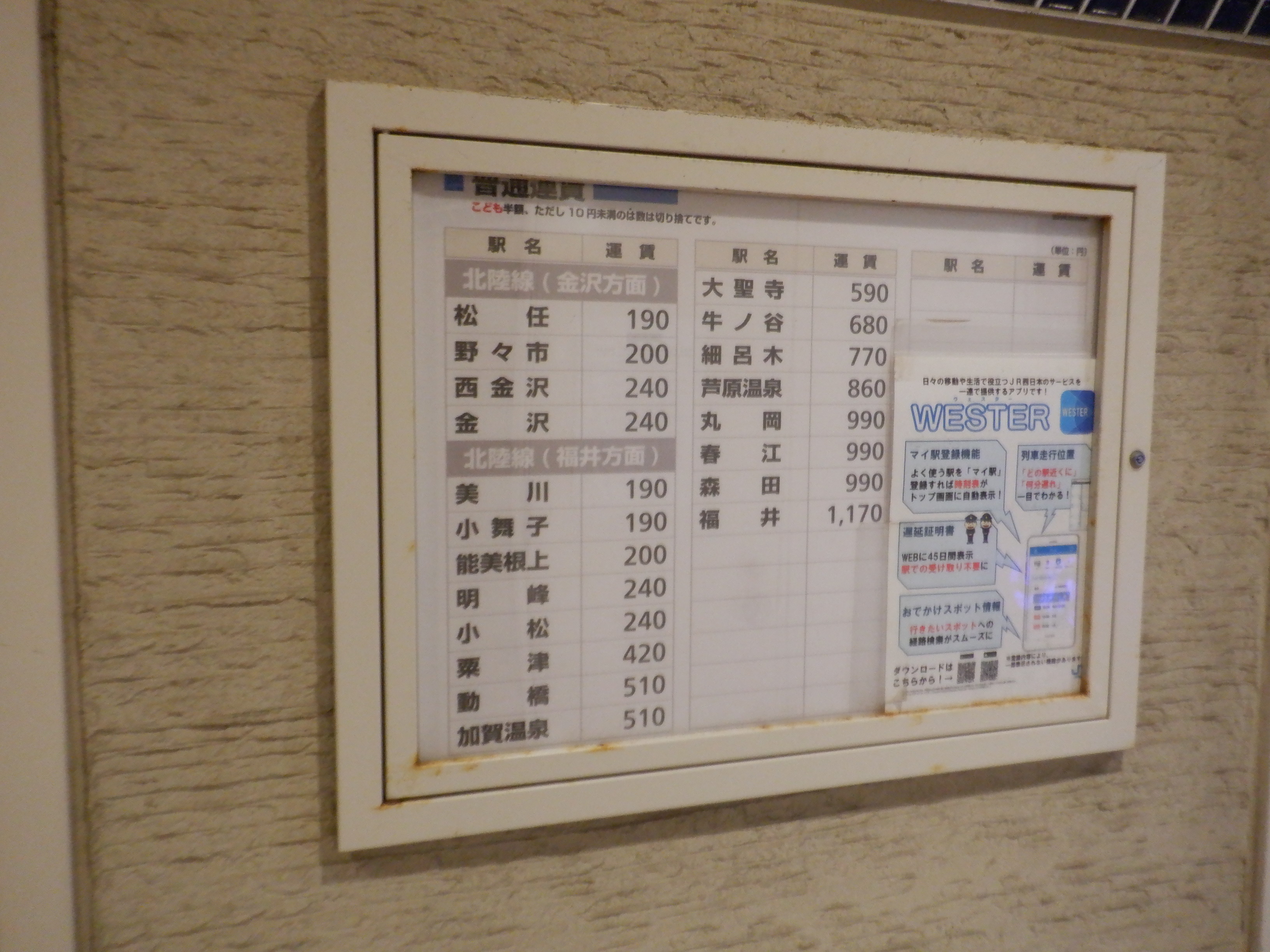 運賃表と時刻表。