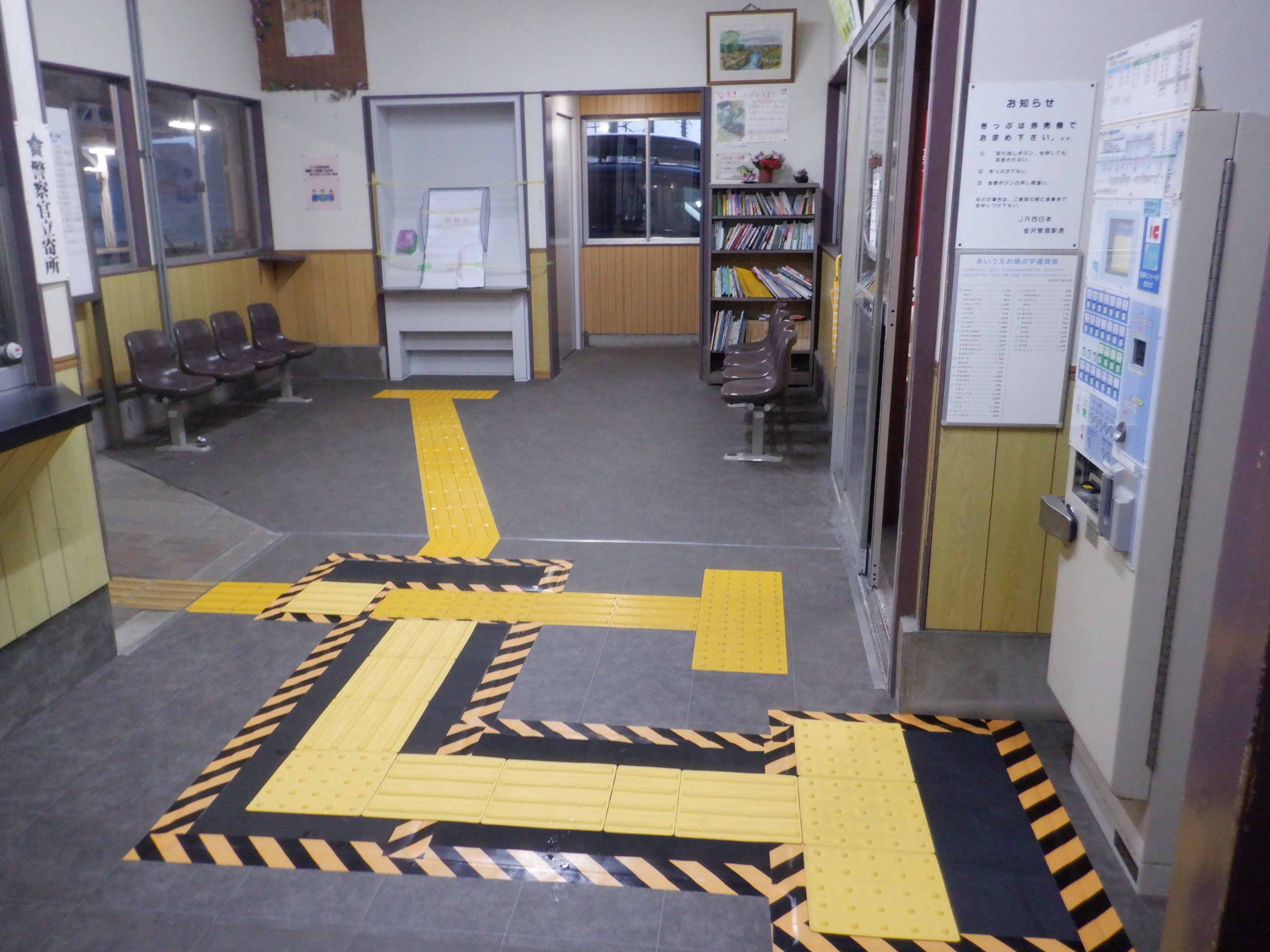 新旧の券売機の間で、点字ブロックの様子に変化がありました。
