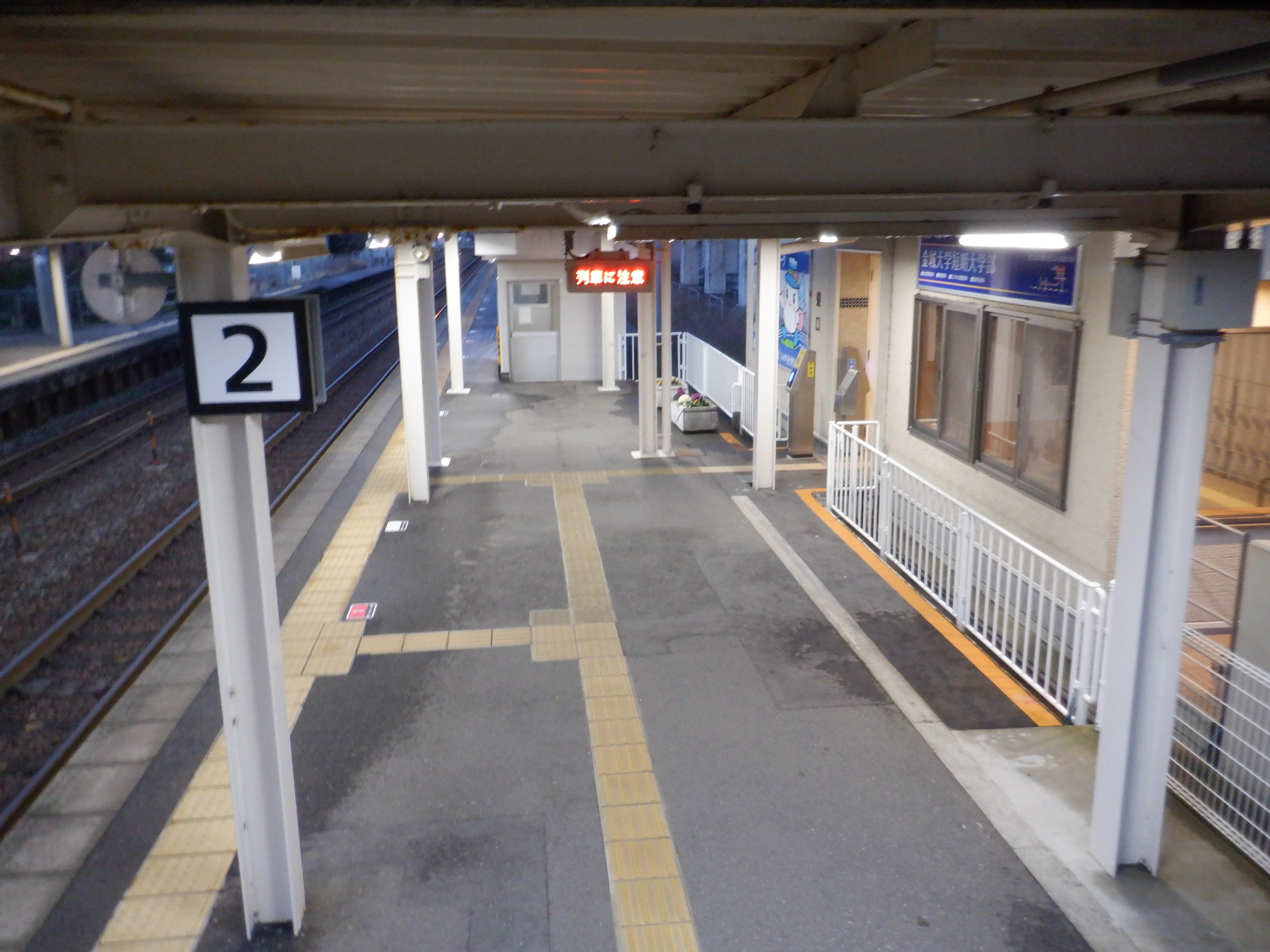 2番のりばの美川駅側。駅名標はこの時点で特に変化はありません。