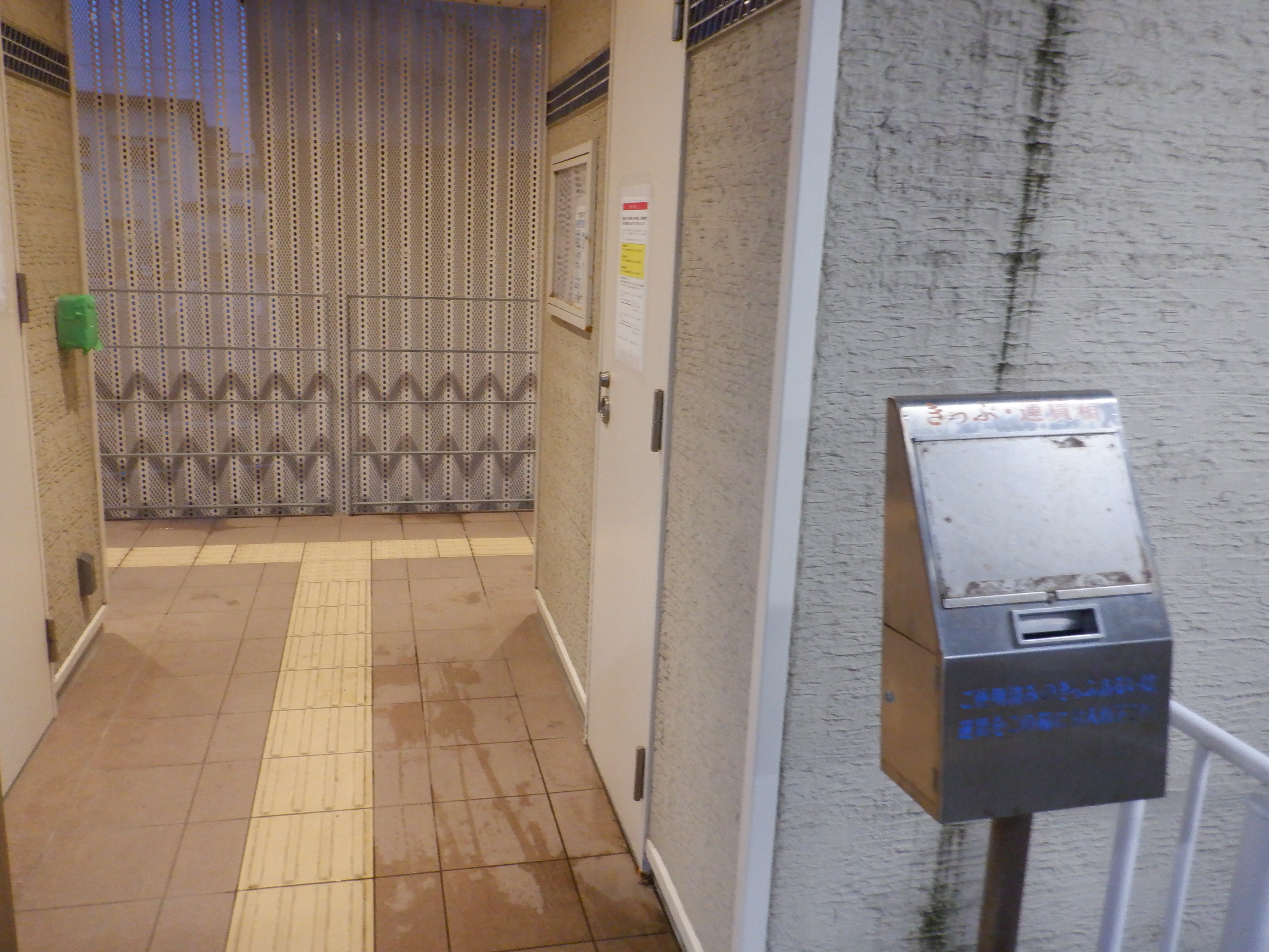 東口の入口と新しいインターフォンらしきもの。