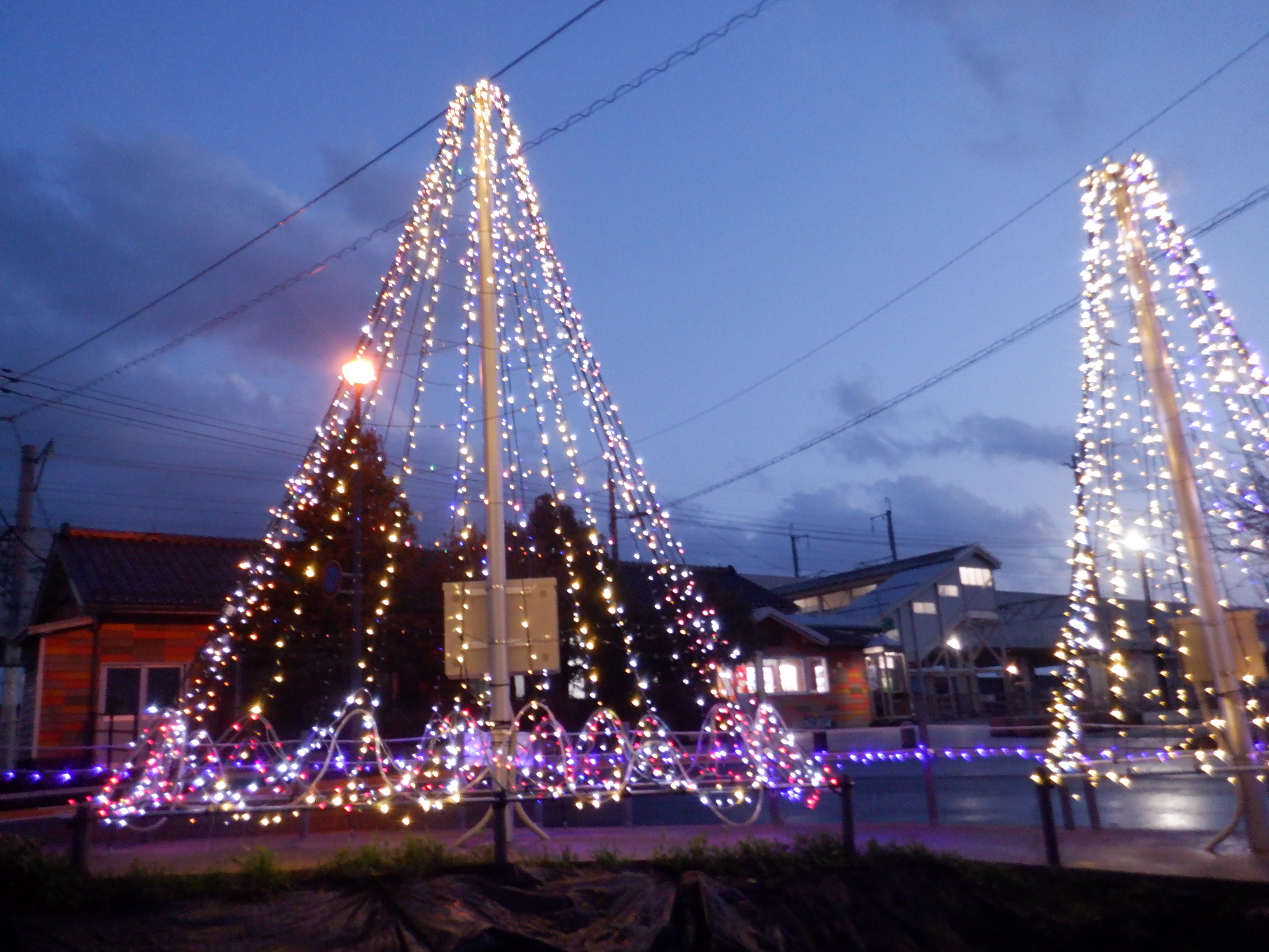 加賀笠間駅東口のJRマークが年を越しても残ったかの確認で降りていますが、時間的に遅かったため駅前のイルミネーションなども撮ることができました。