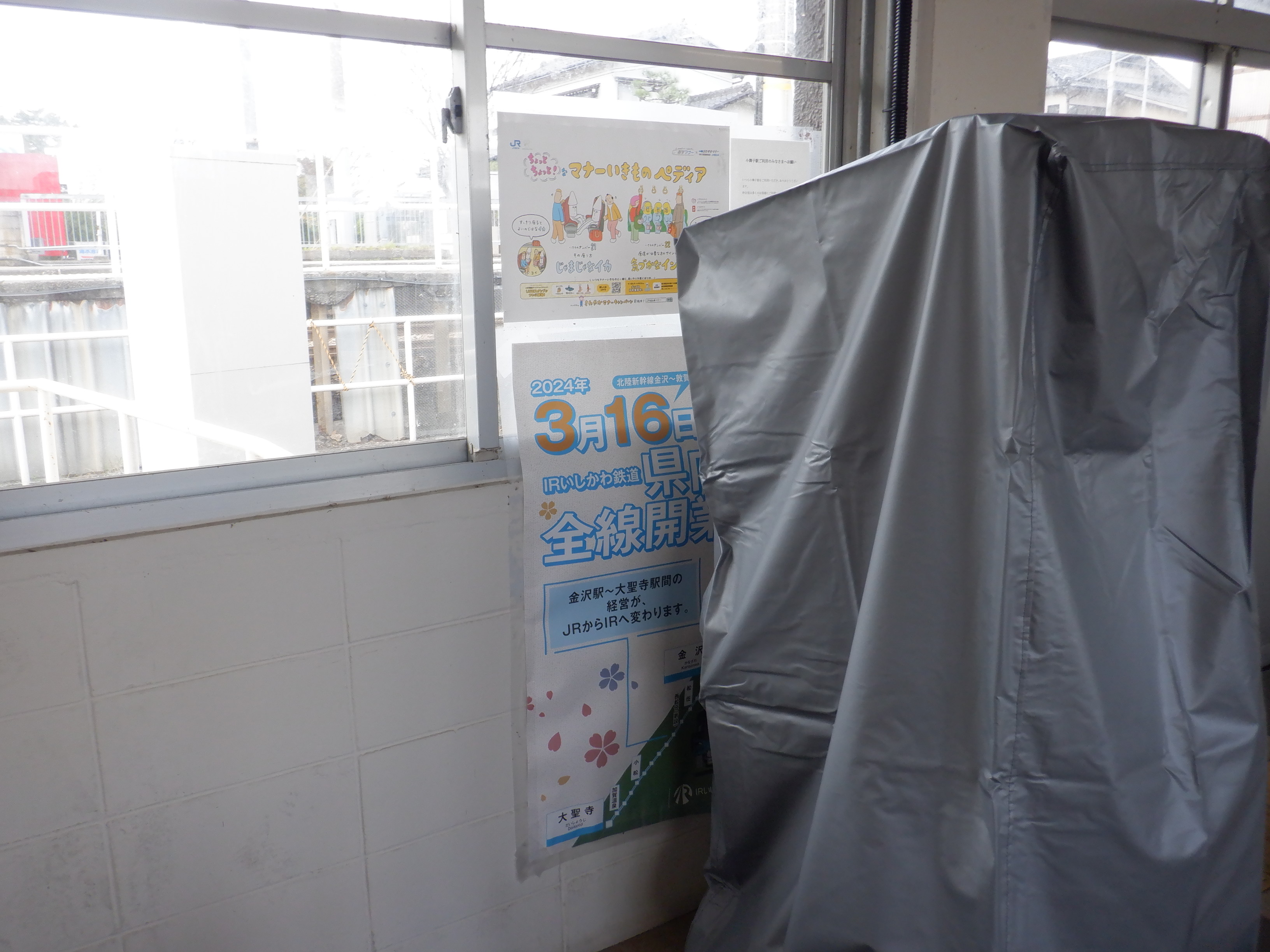 三セク化後の券売機がカバーが掛けられた状態で設置されました。