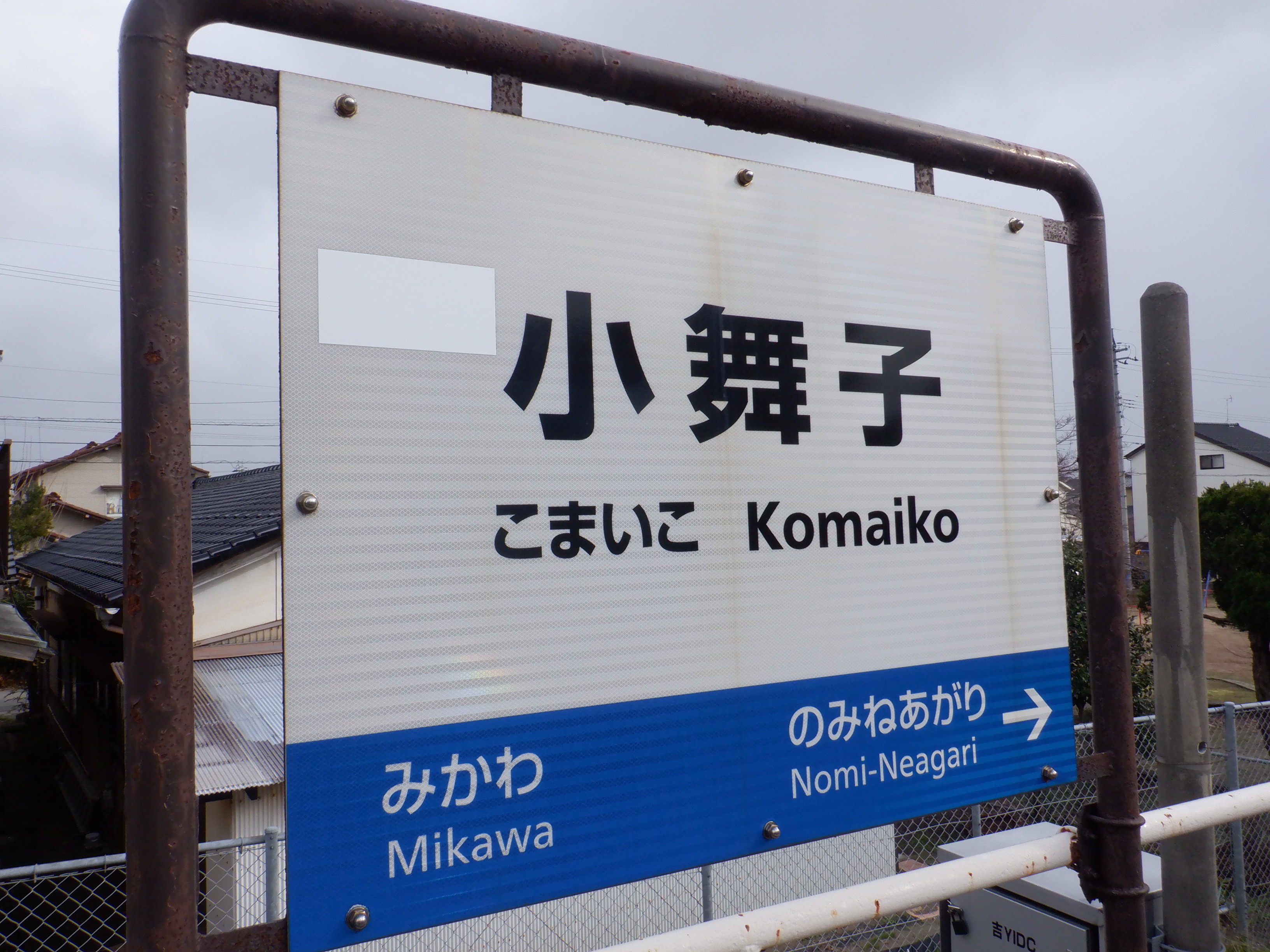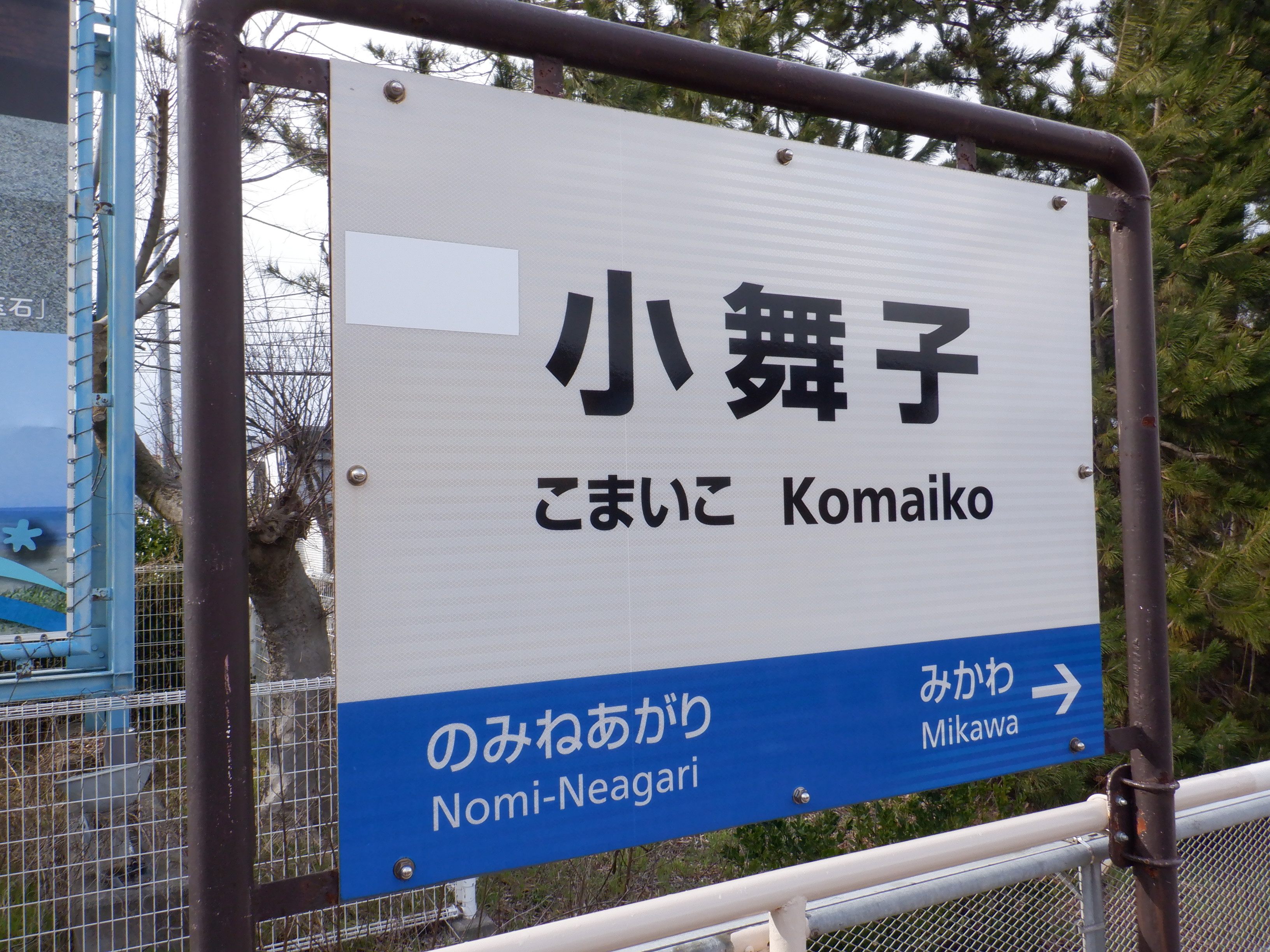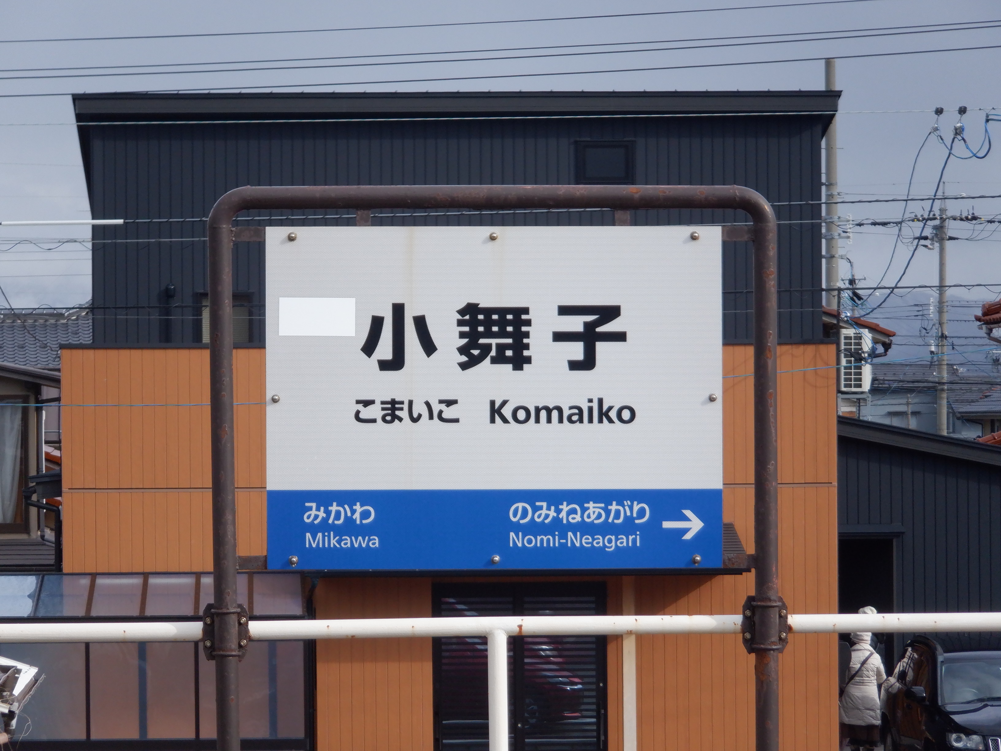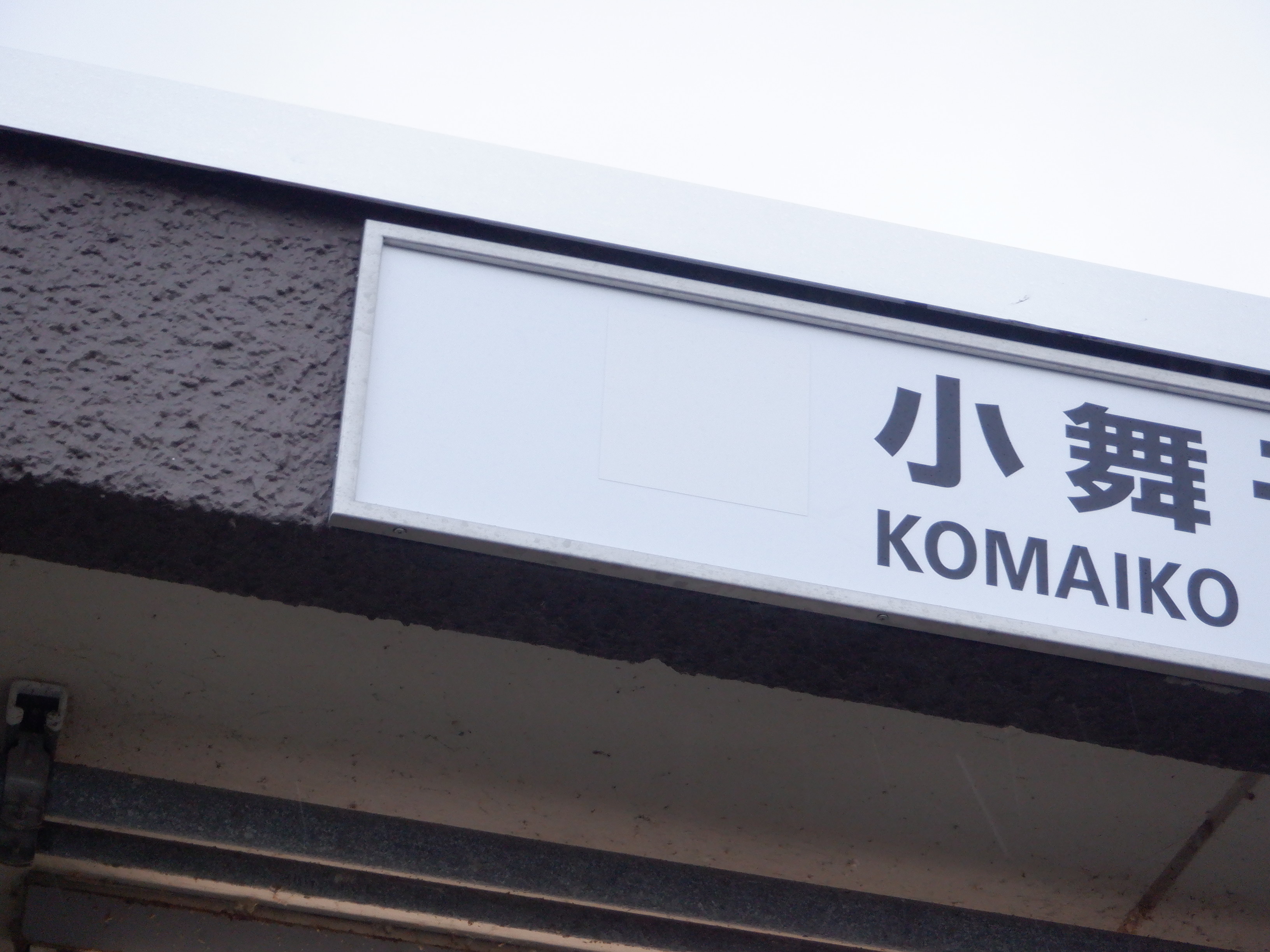 駅舎のホーム側の駅名表示。新しくなりました。IRのロゴの部分は隠されています。