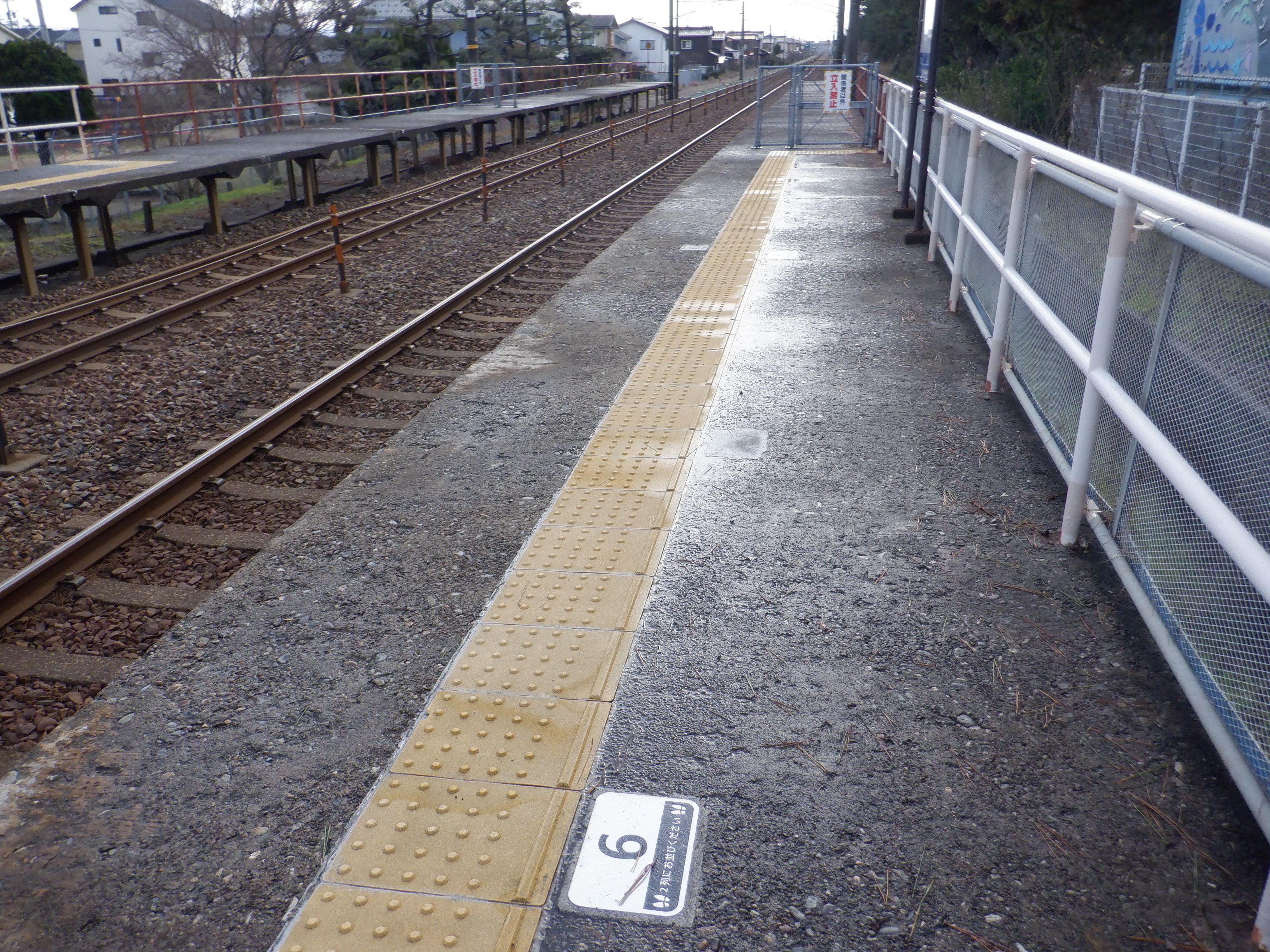 2番のりば能美根上駅側の乗車位置案内6と6両編成最後尾。