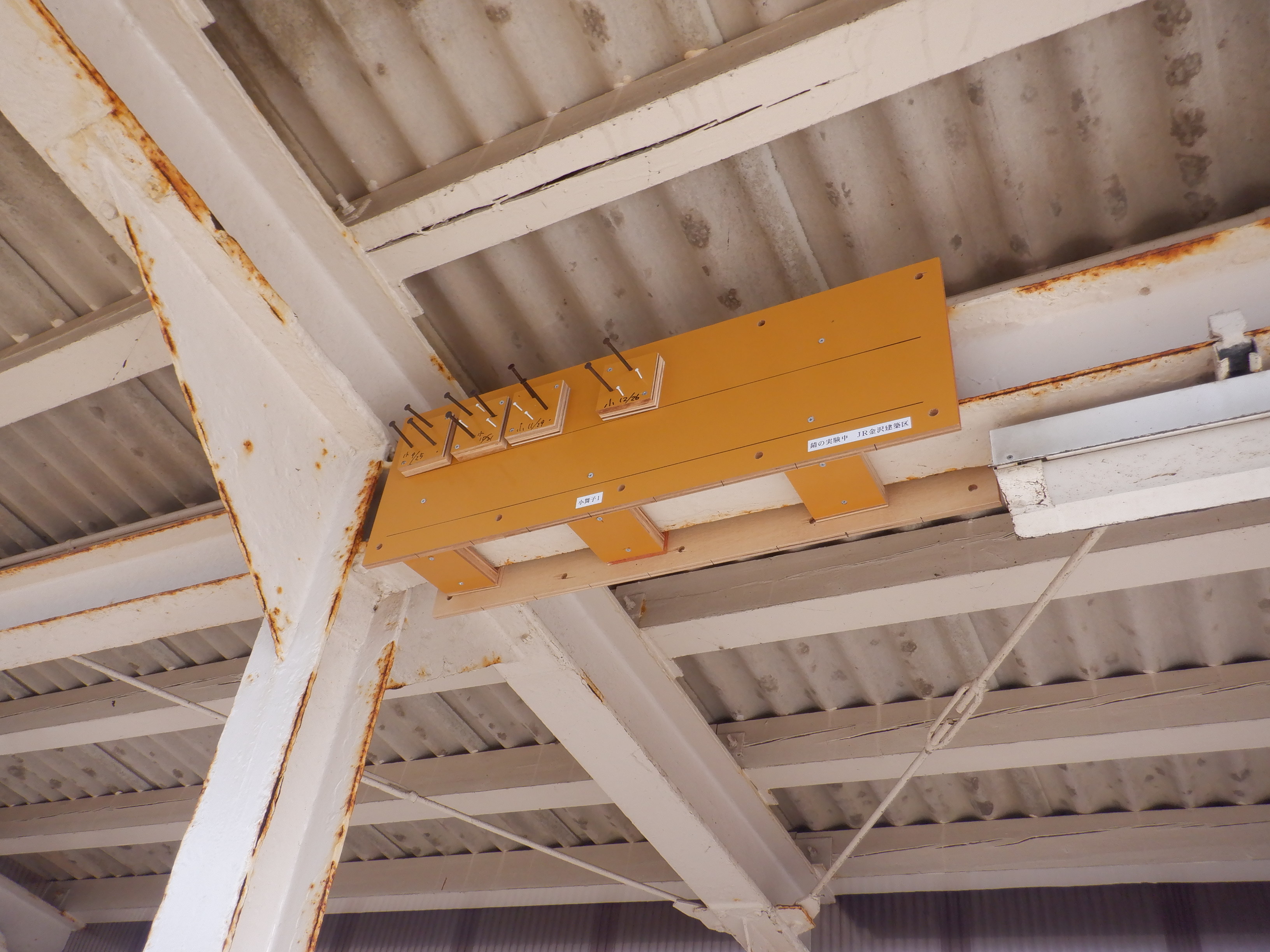 1番のりばの待合所の錆実験。