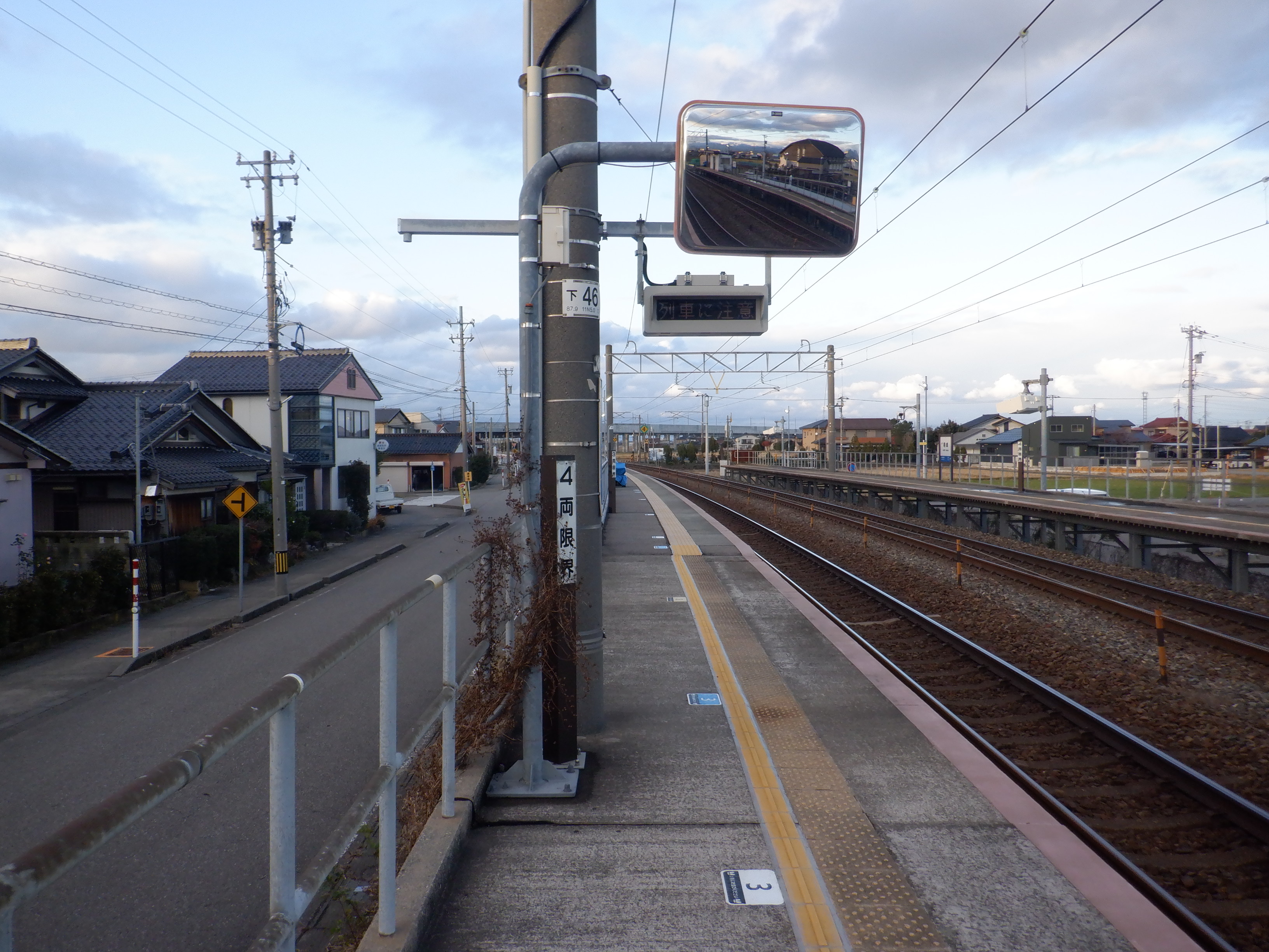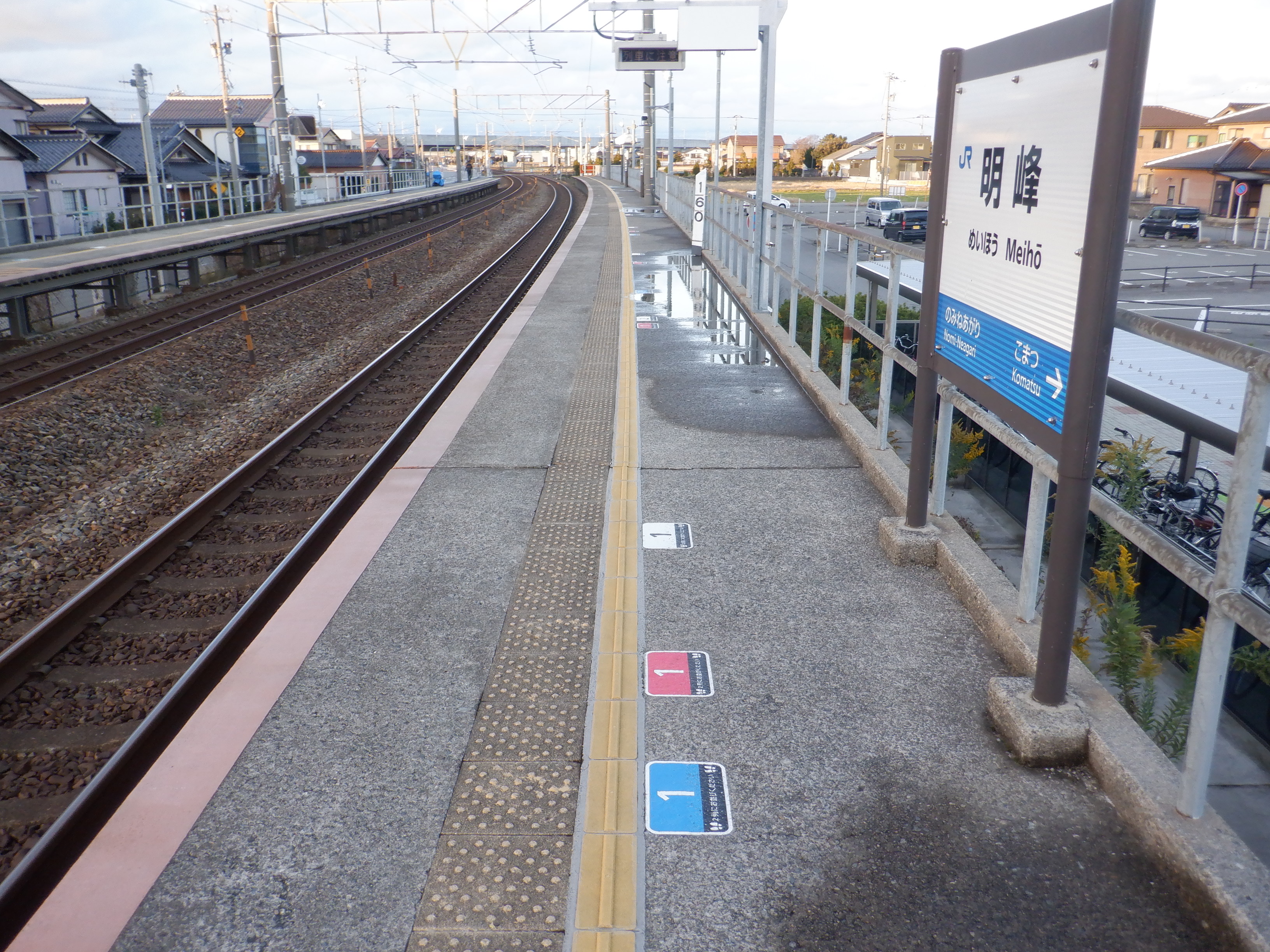 しかしながら、4両より前には白・青とも残っており、さらに2両の赤も付け加わり、おそらく西金沢駅以西で青色の乗車位置案内が残る唯一の駅となったようです。