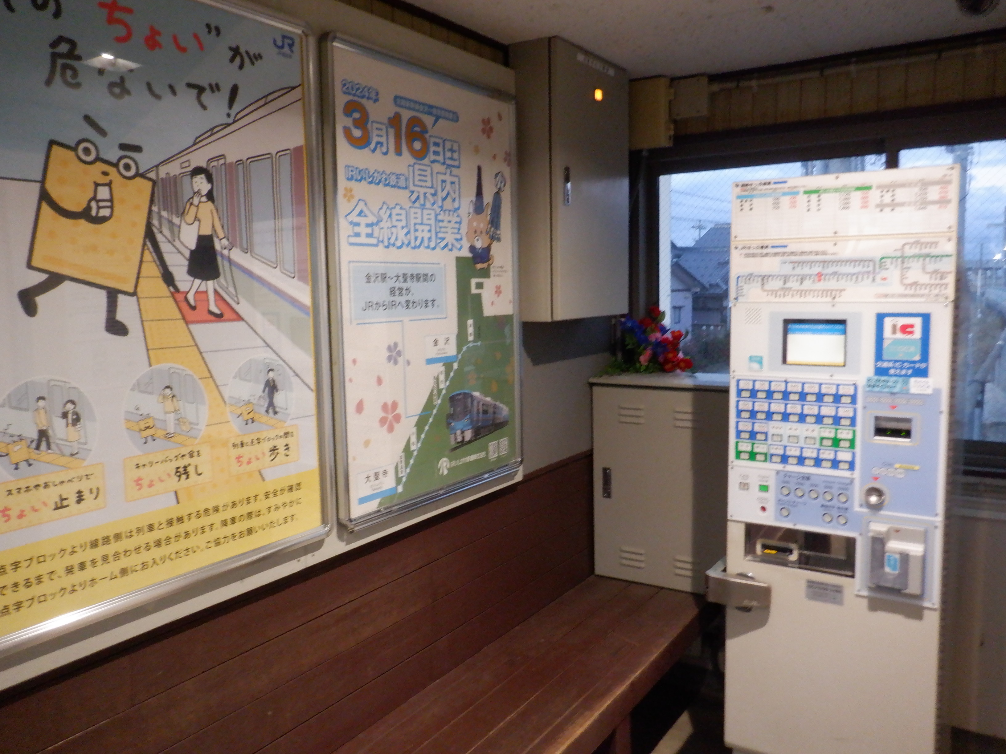 2023年12月の様子で、この駅も券売機については2台置くスペースもないためか、特段の変化はありません。