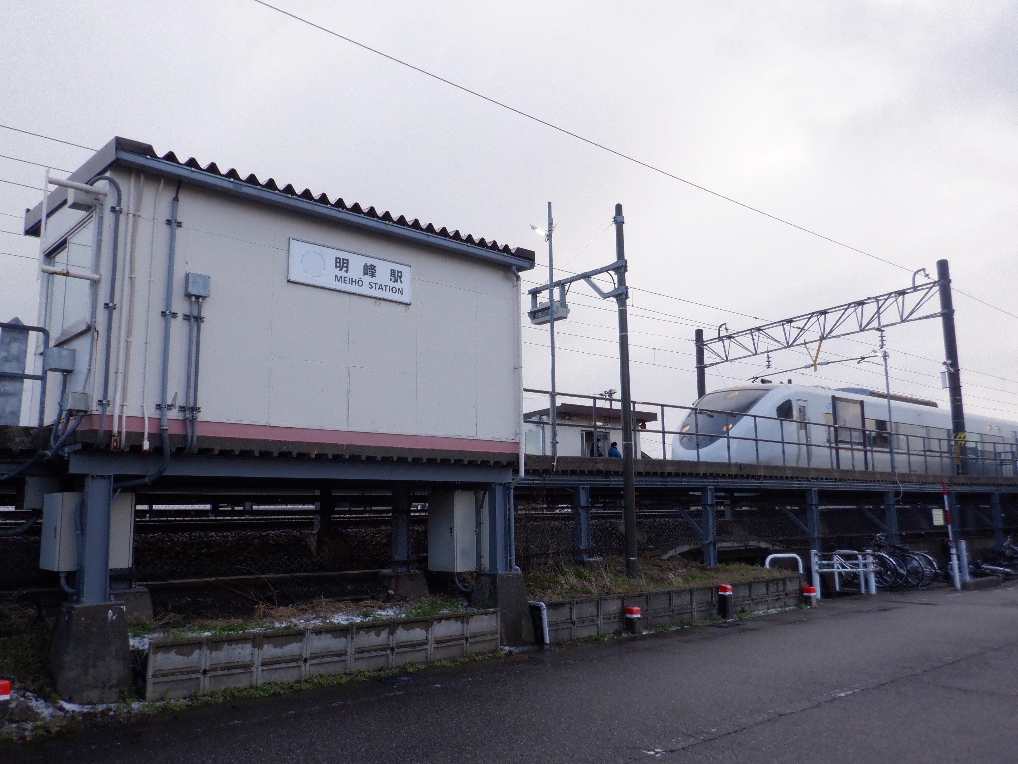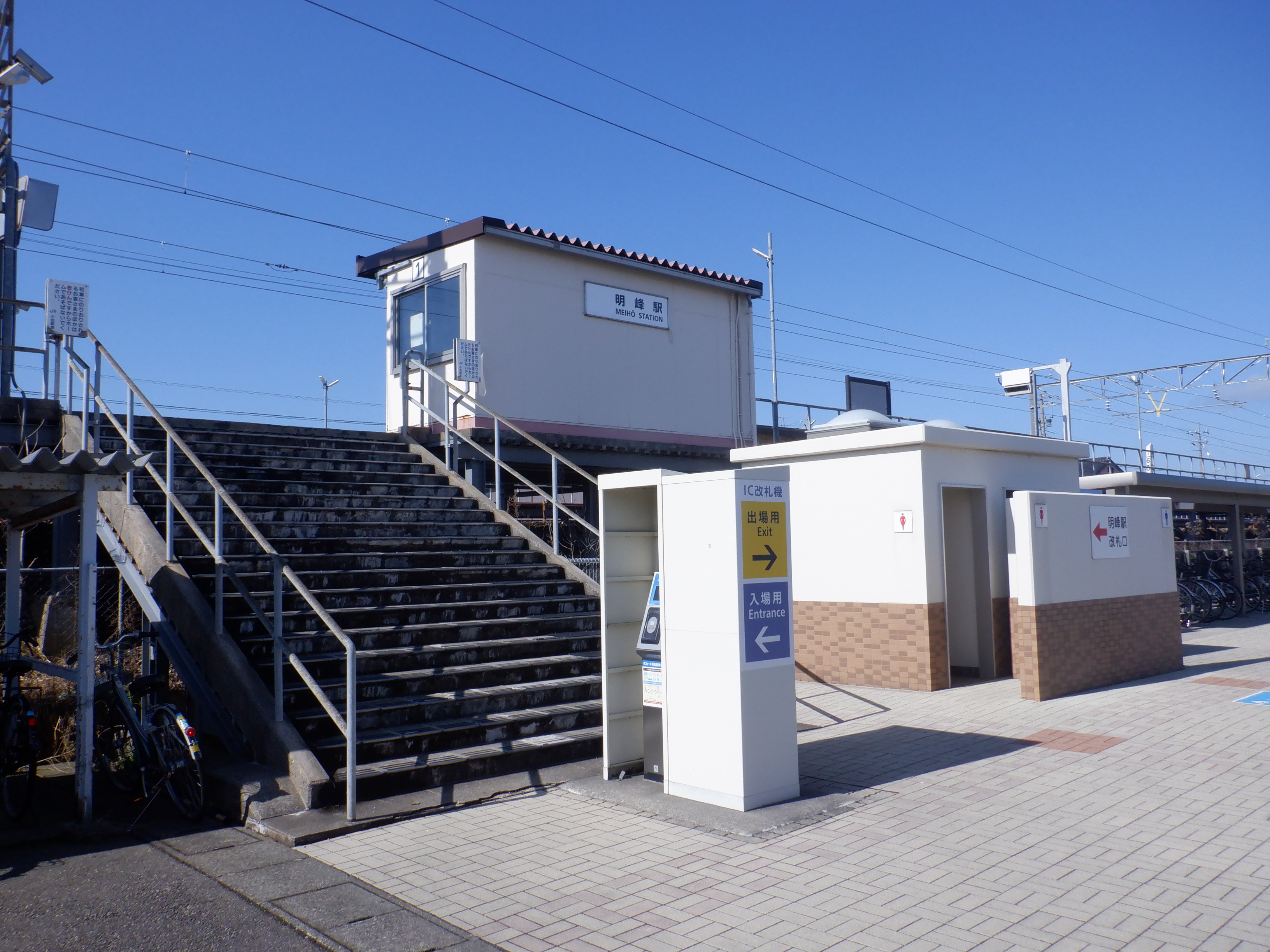 明峰駅の2024年移管前の様子です。この駅の場合は券売機の設置場所が狭いため、新旧並ばずに入替となったようです。移管前は駅名標が変化しました。
