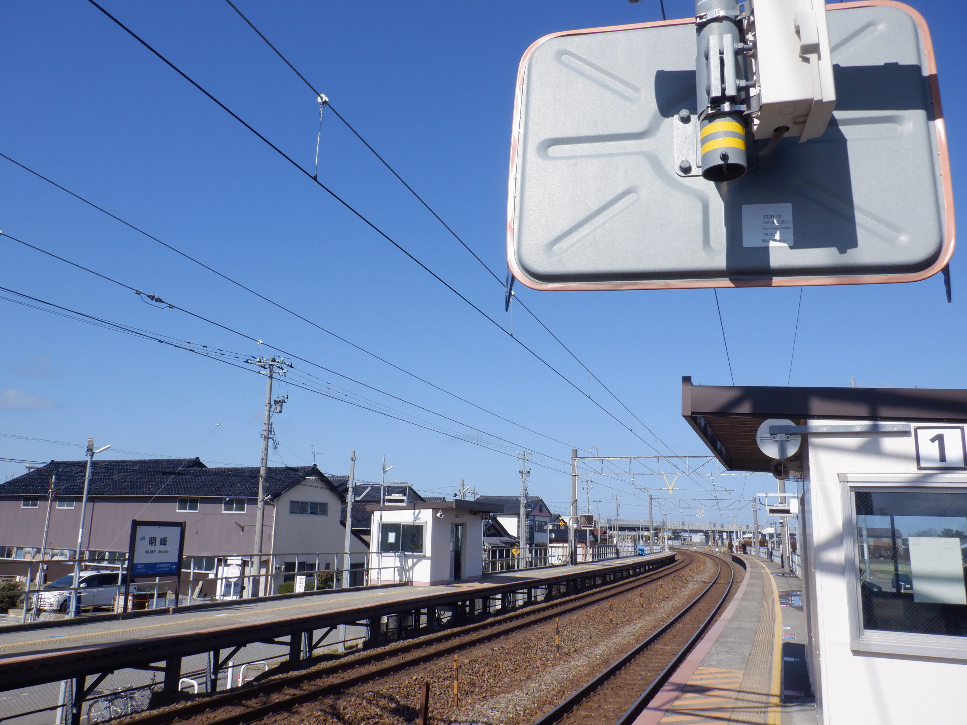 1番のりばのワンマンミラーとホームの様子。